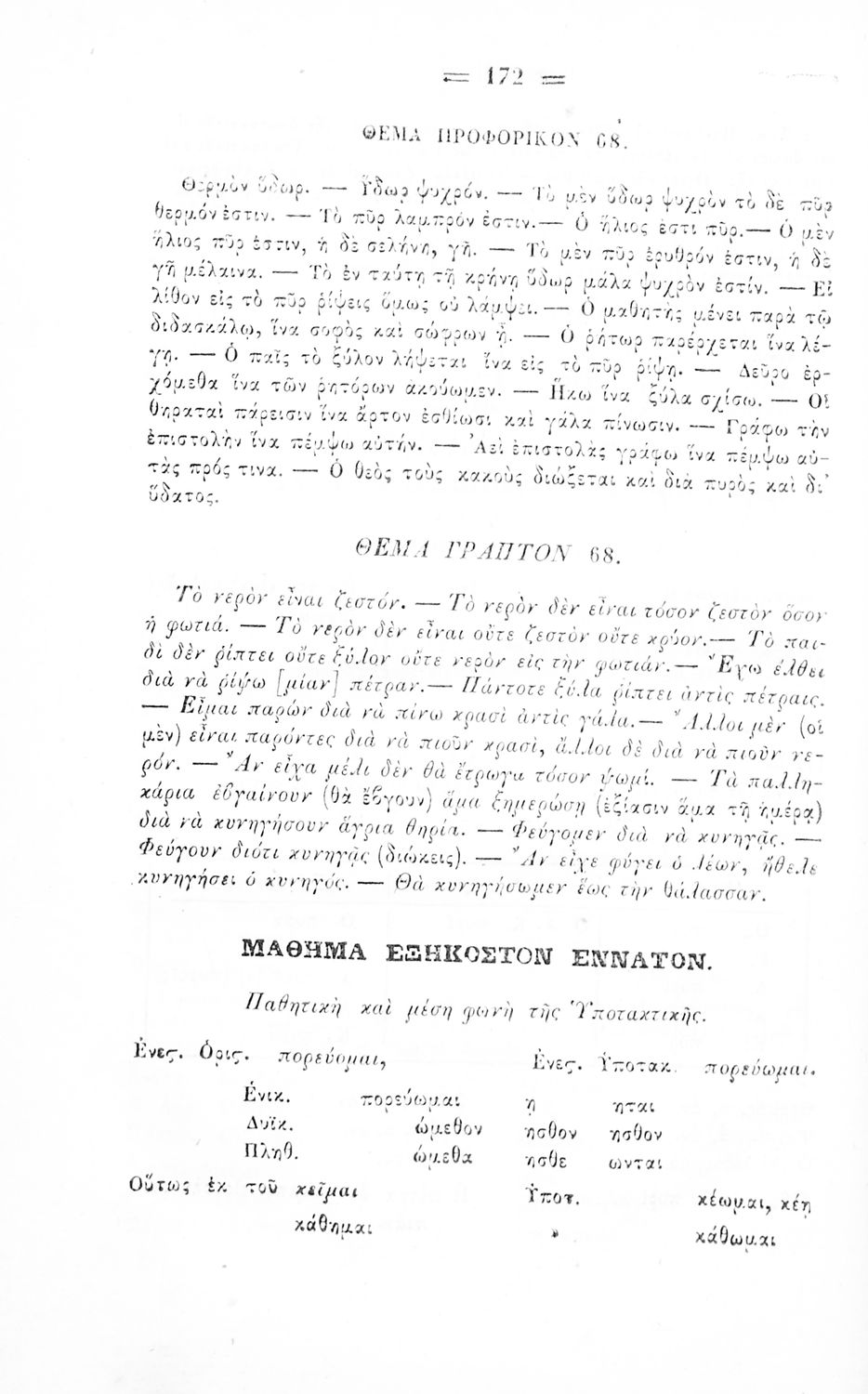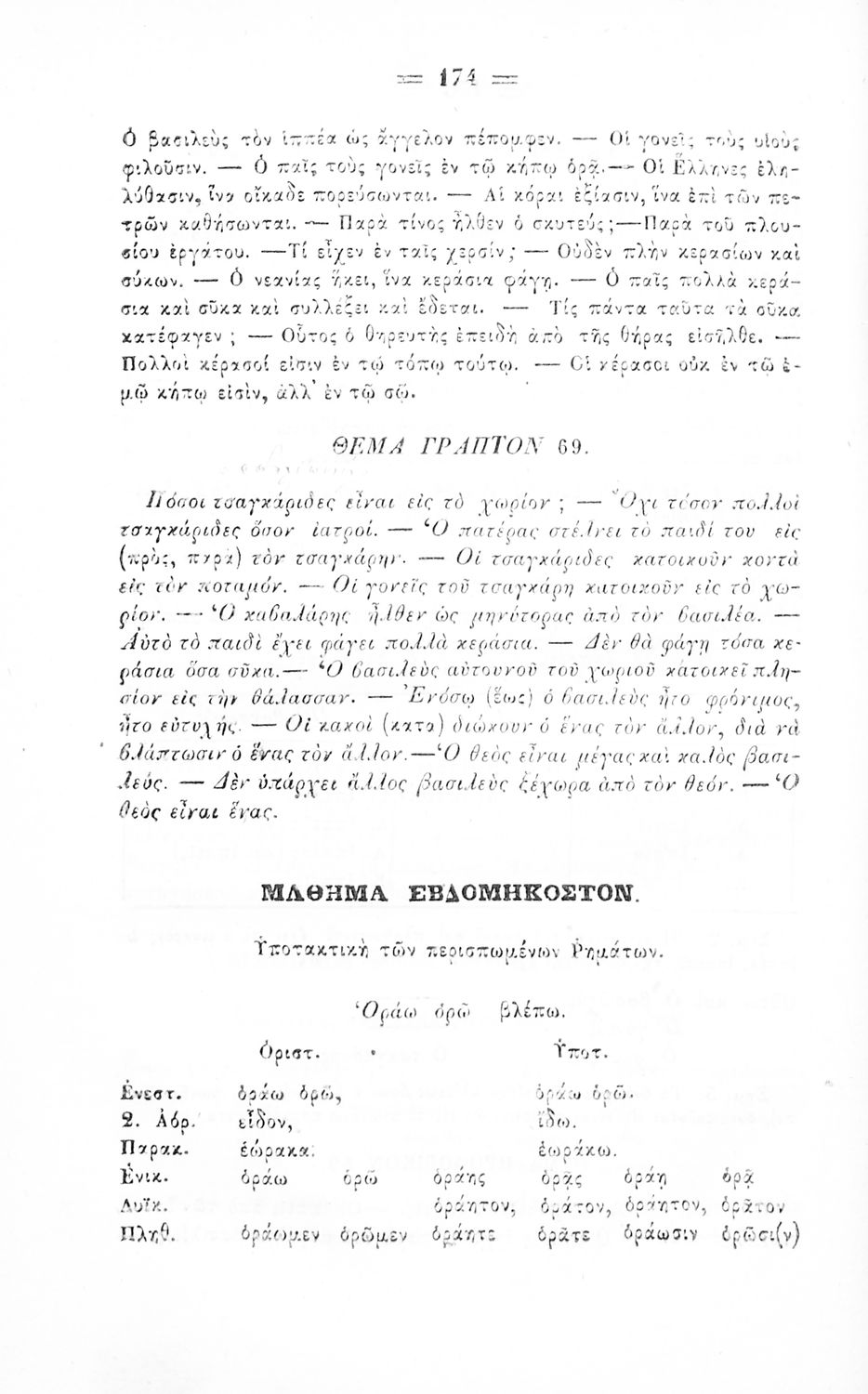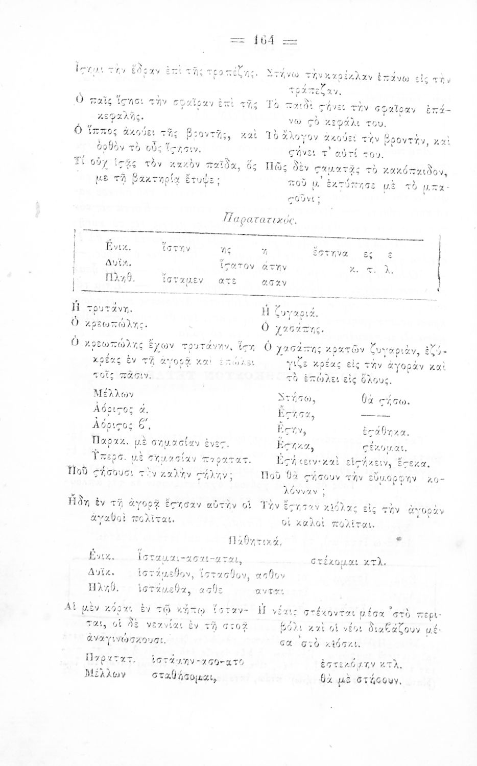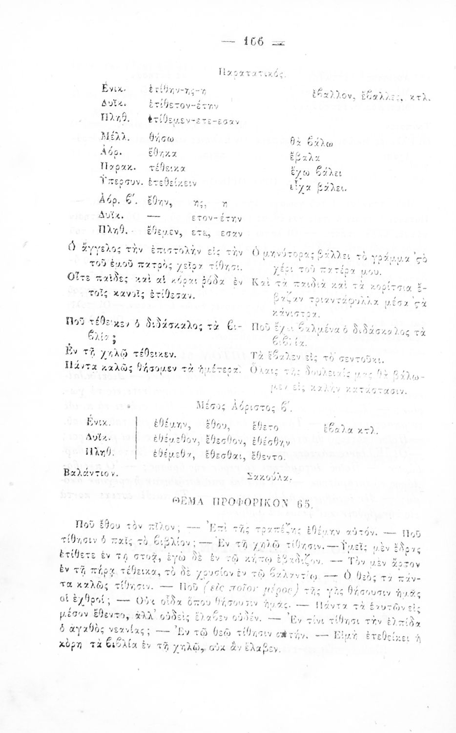 Σχολικό εγχειρίδιο Αρχαίων Ελληνικών για τα Ελληνικά Σχολεία και Παρθεναγωγεία που εστιάζει στα μέρη του λόγου και στην σύνταξή τους.