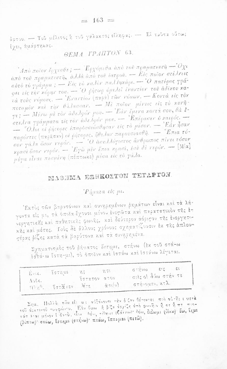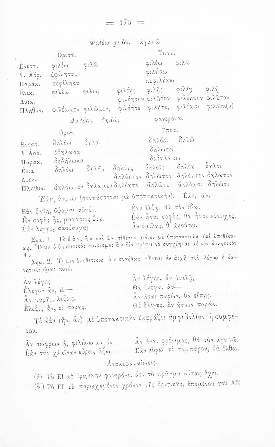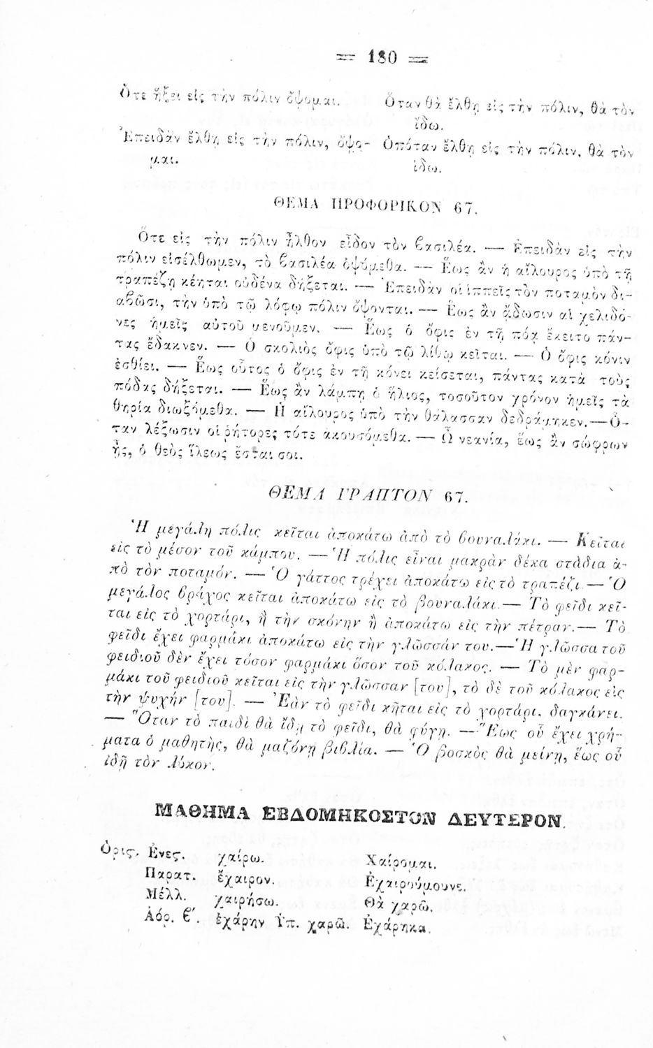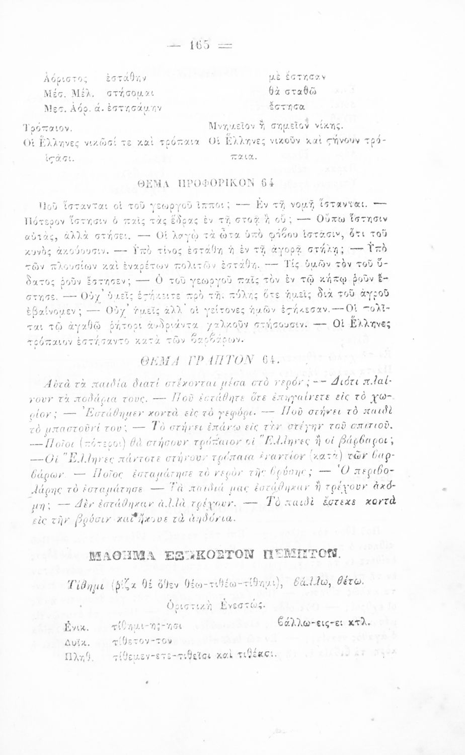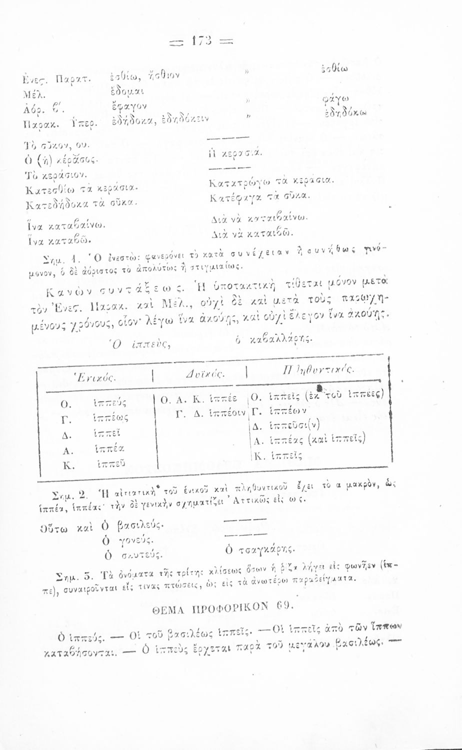 Σχολικό εγχειρίδιο Αρχαίων Ελληνικών για τα Ελληνικά Σχολεία και Παρθεναγωγεία που εστιάζει στα μέρη του λόγου και στην σύνταξή τους.