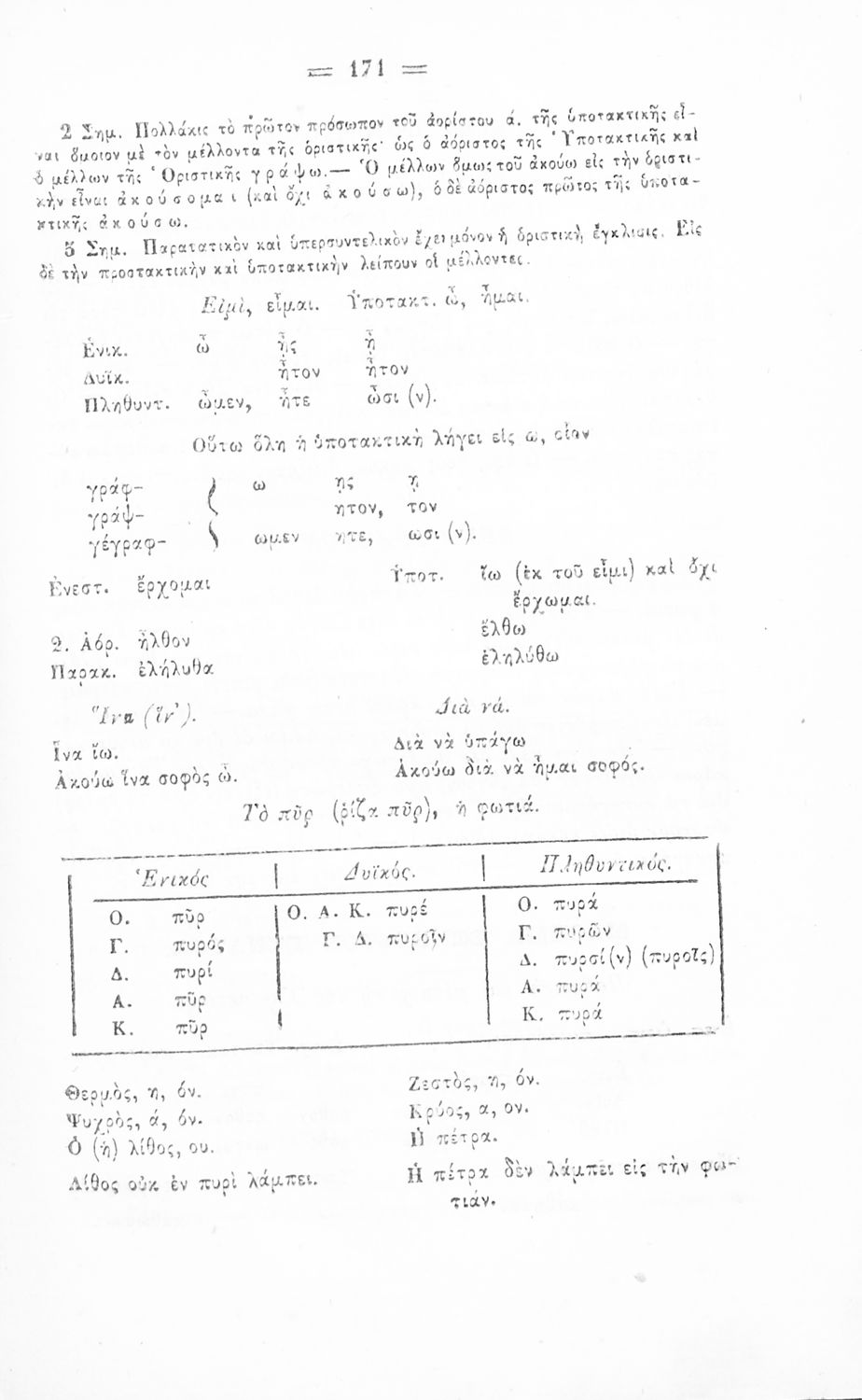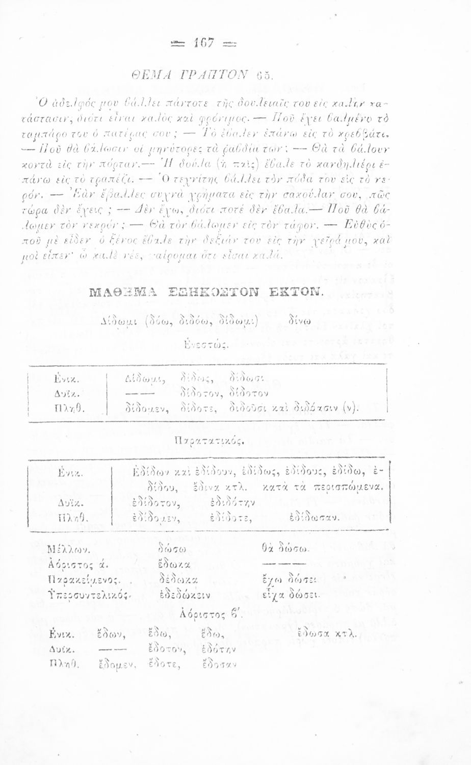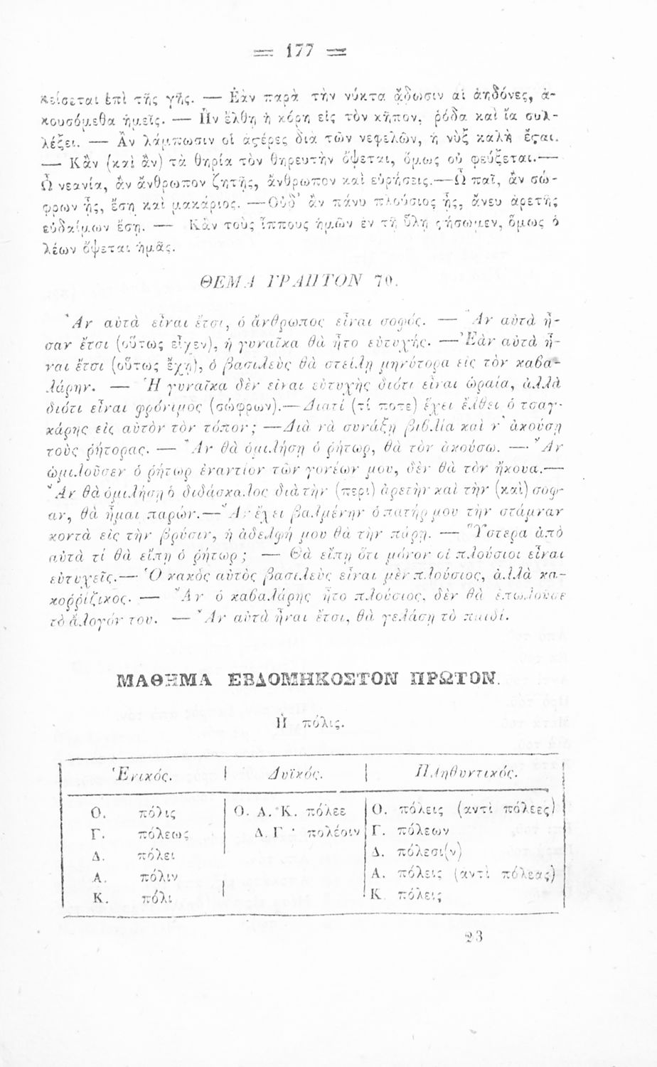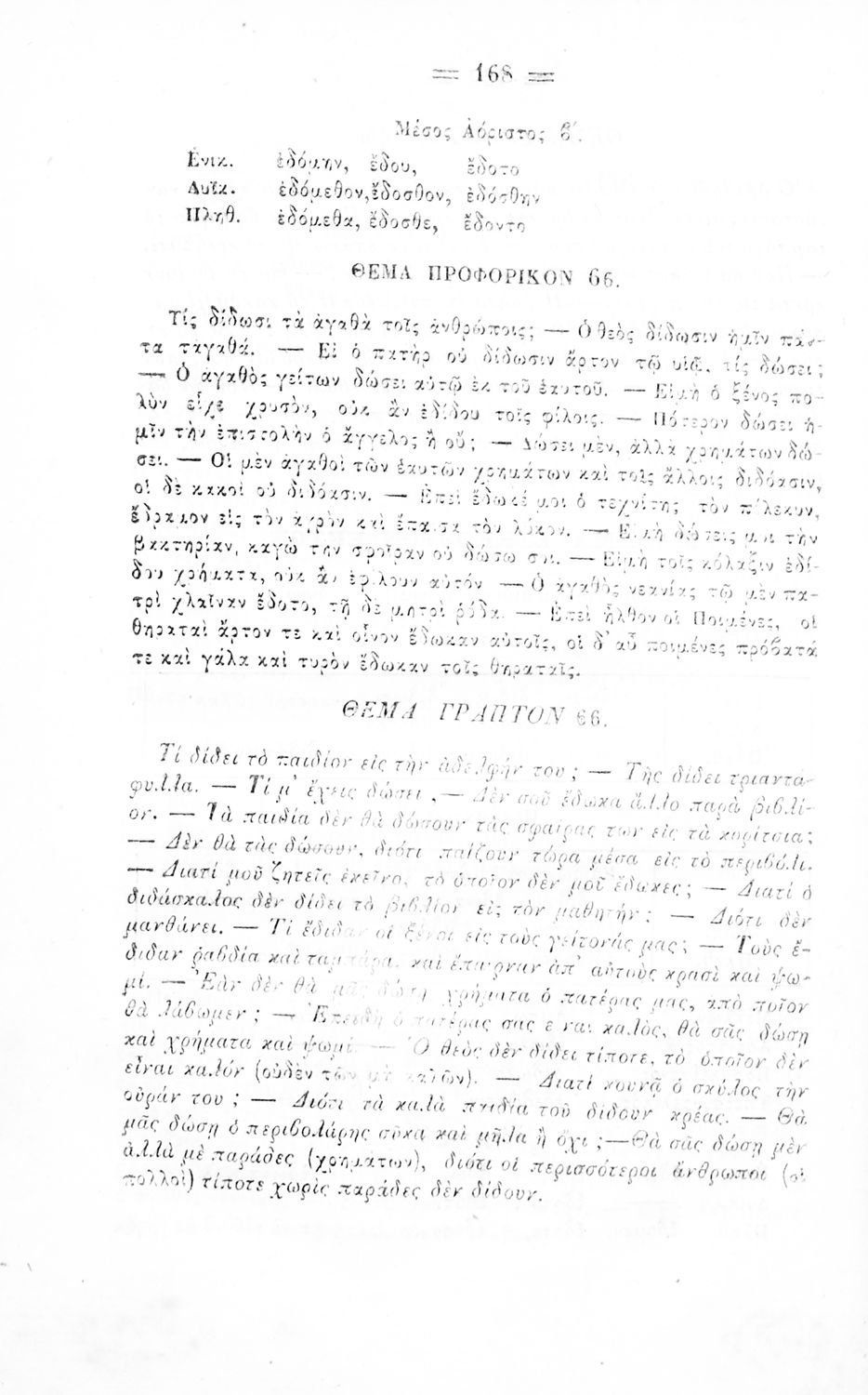 Σχολικό εγχειρίδιο Αρχαίων Ελληνικών για τα Ελληνικά Σχολεία και Παρθεναγωγεία που εστιάζει στα μέρη του λόγου και στην σύνταξή τους.