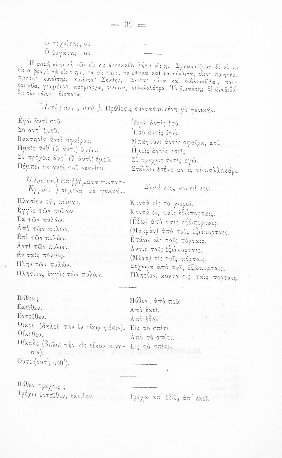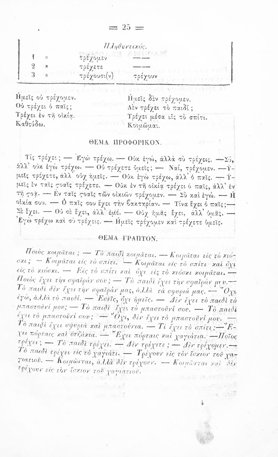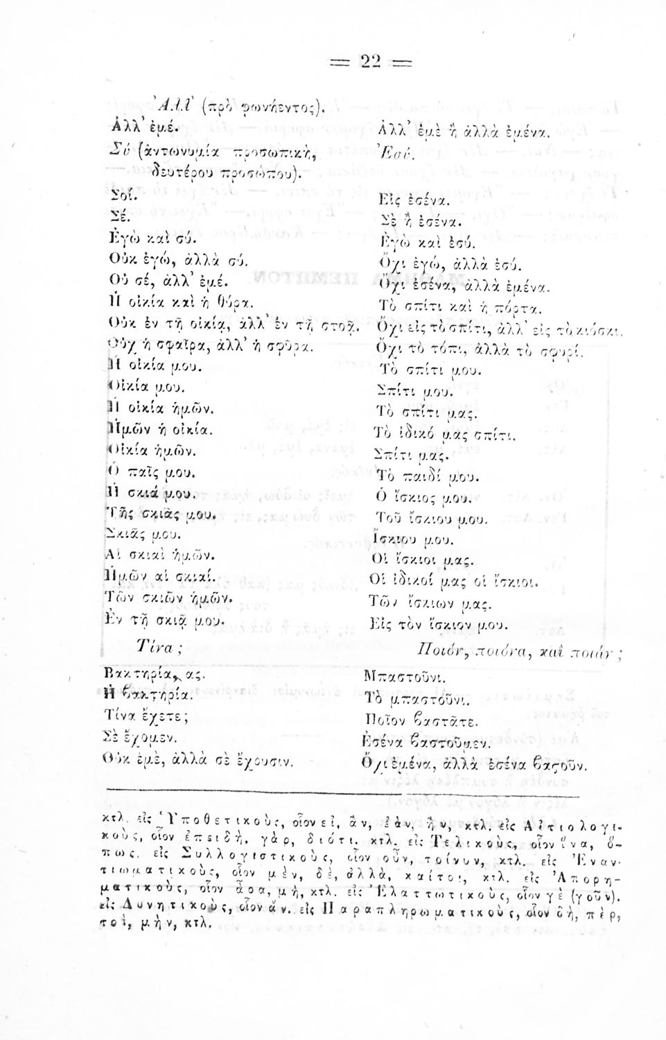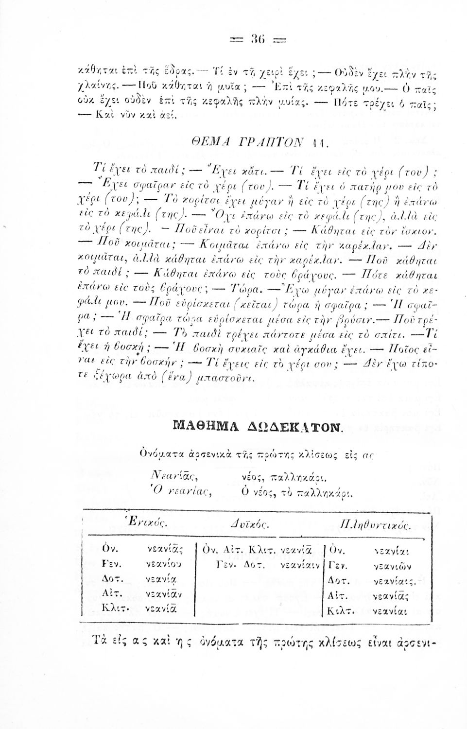Σχολικό εγχειρίδιο Αρχαίων Ελληνικών για τα Ελληνικά Σχολεία και Παρθεναγωγεία που εστιάζει στα μέρη του λόγου και στην σύνταξή τους.