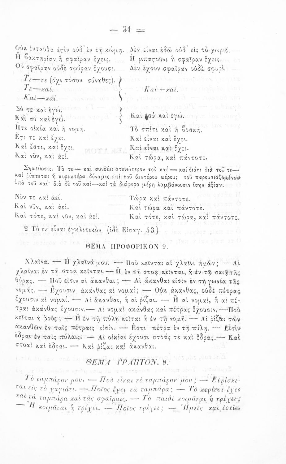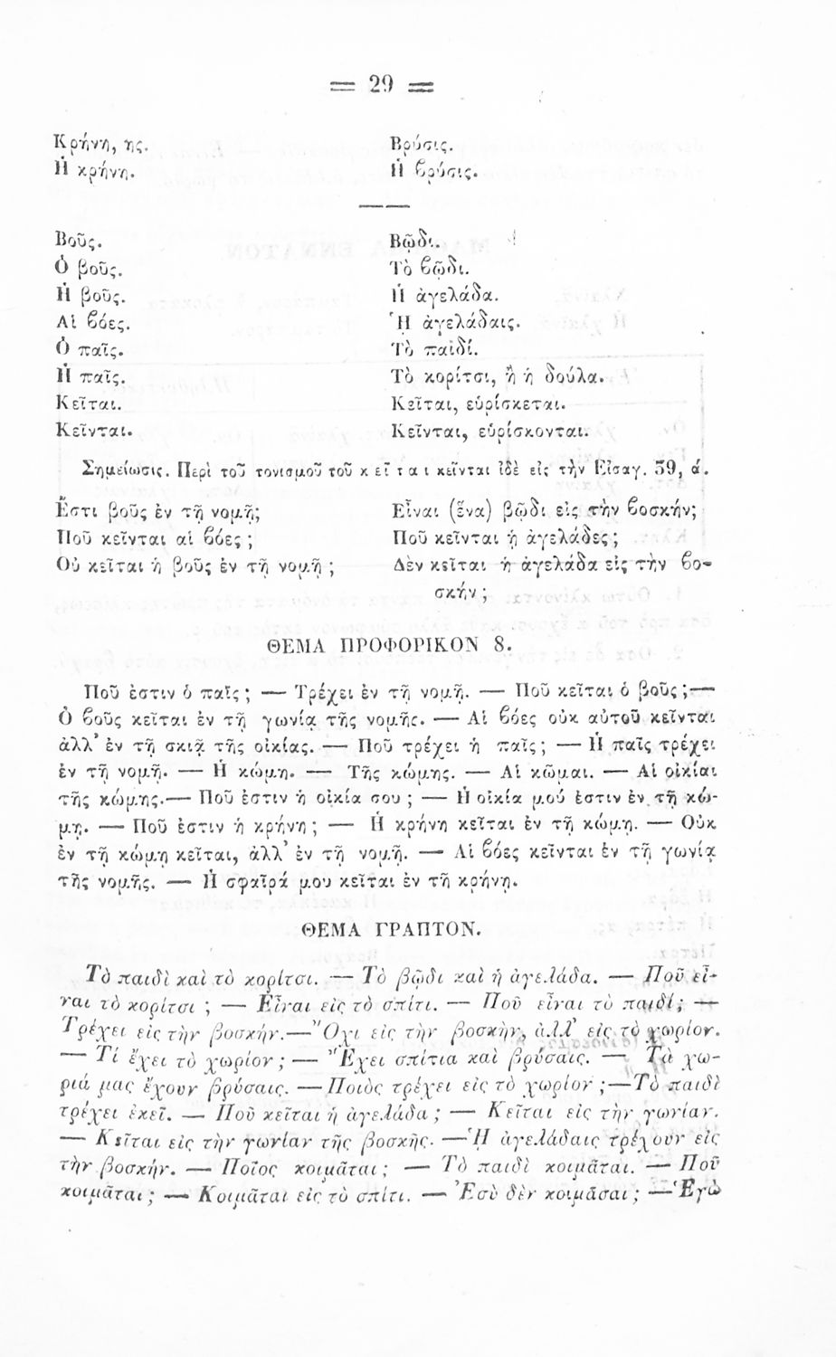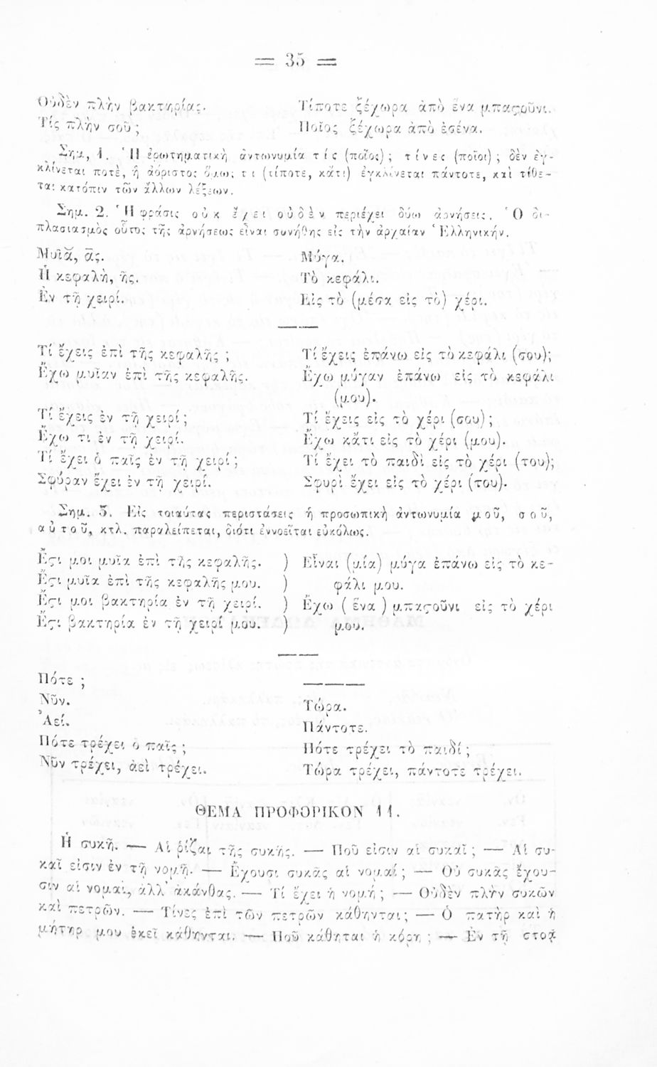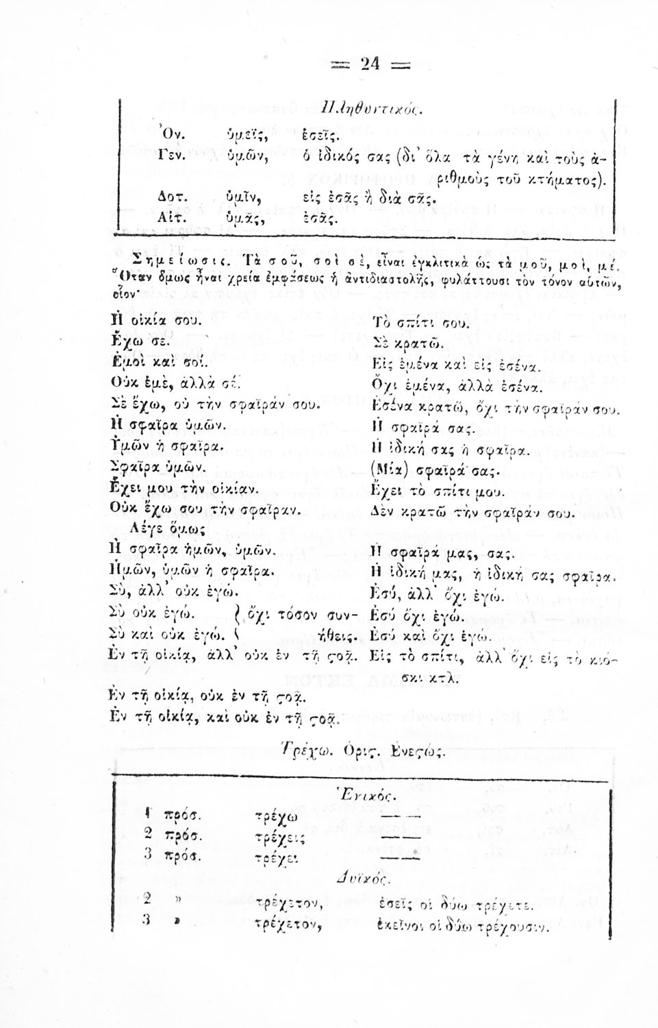 Σχολικό εγχειρίδιο Αρχαίων Ελληνικών για τα Ελληνικά Σχολεία και Παρθεναγωγεία που εστιάζει στα μέρη του λόγου και στην σύνταξή τους.