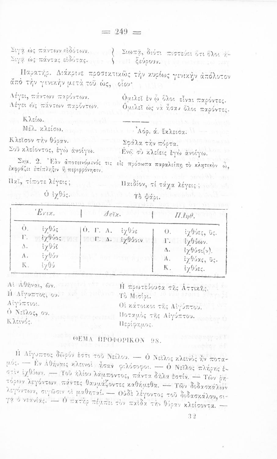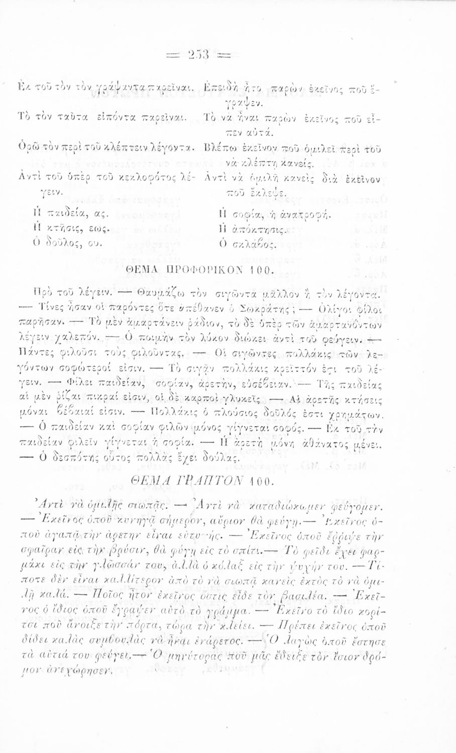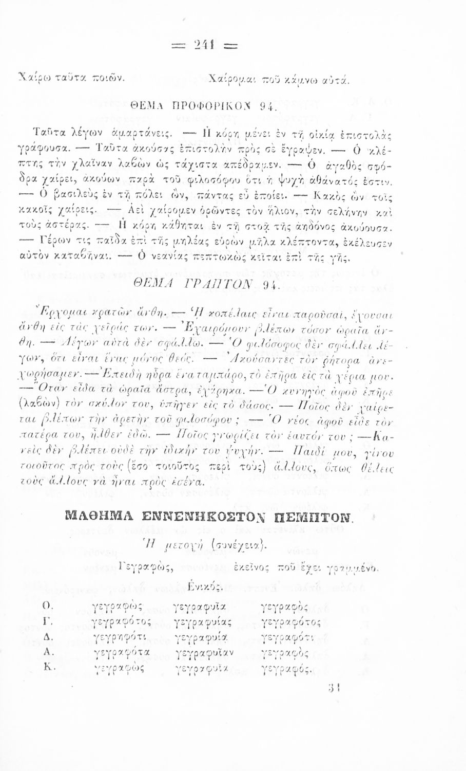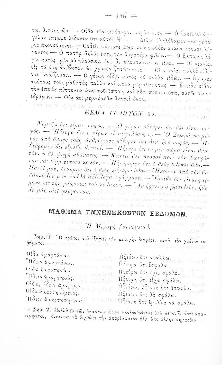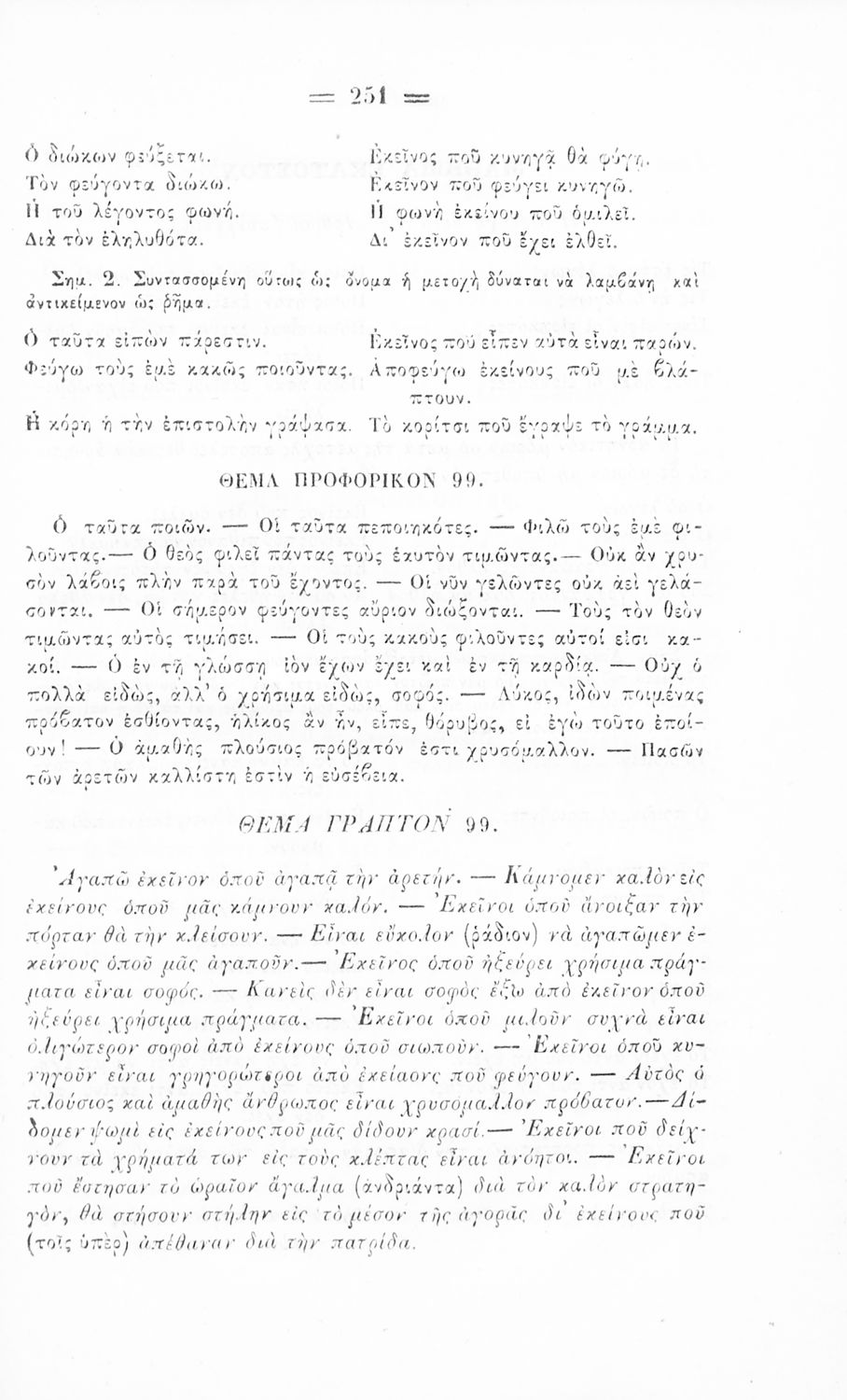 Σχολικό εγχειρίδιο Αρχαίων Ελληνικών για τα Ελληνικά Σχολεία και Παρθεναγωγεία που περιέχει τους κανόνες γραμματικής και είναι χωρισμένο σε φθογγολογικό, τυπολογικό και ετυμολογικό μέρος.