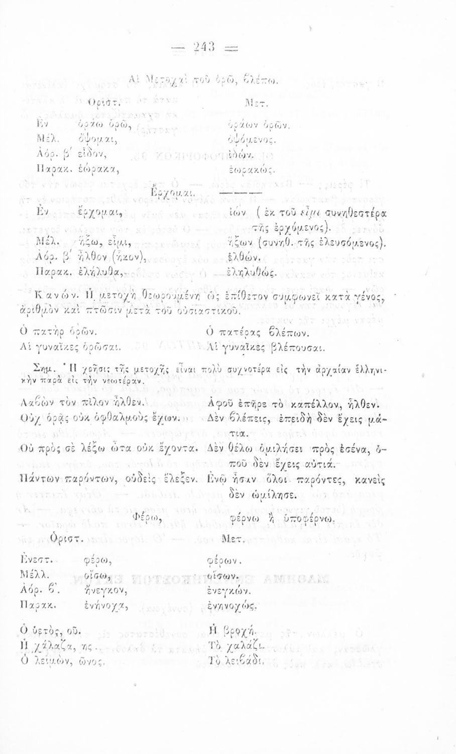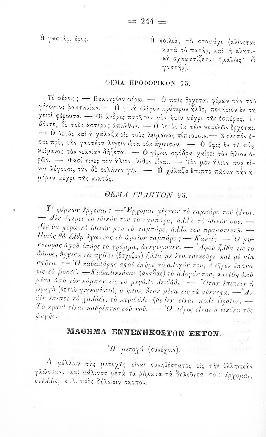 Σχολικό εγχειρίδιο Αρχαίων Ελληνικών για τα Ελληνικά Σχολεία, Παρθεναγωγεία και Γυμνάσια που περιέχει τους κανόνες γραμματικής και είναι χωρισμένο σε φθογγολογικό, τυπολογικό και ετυμολογικό μέρος.