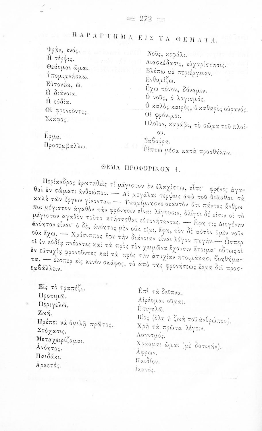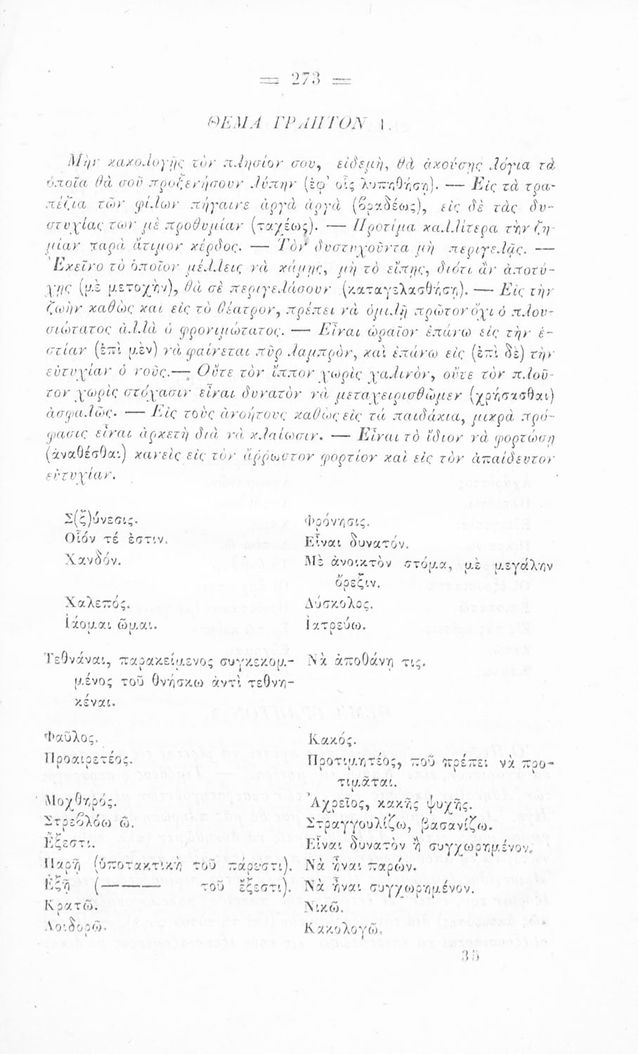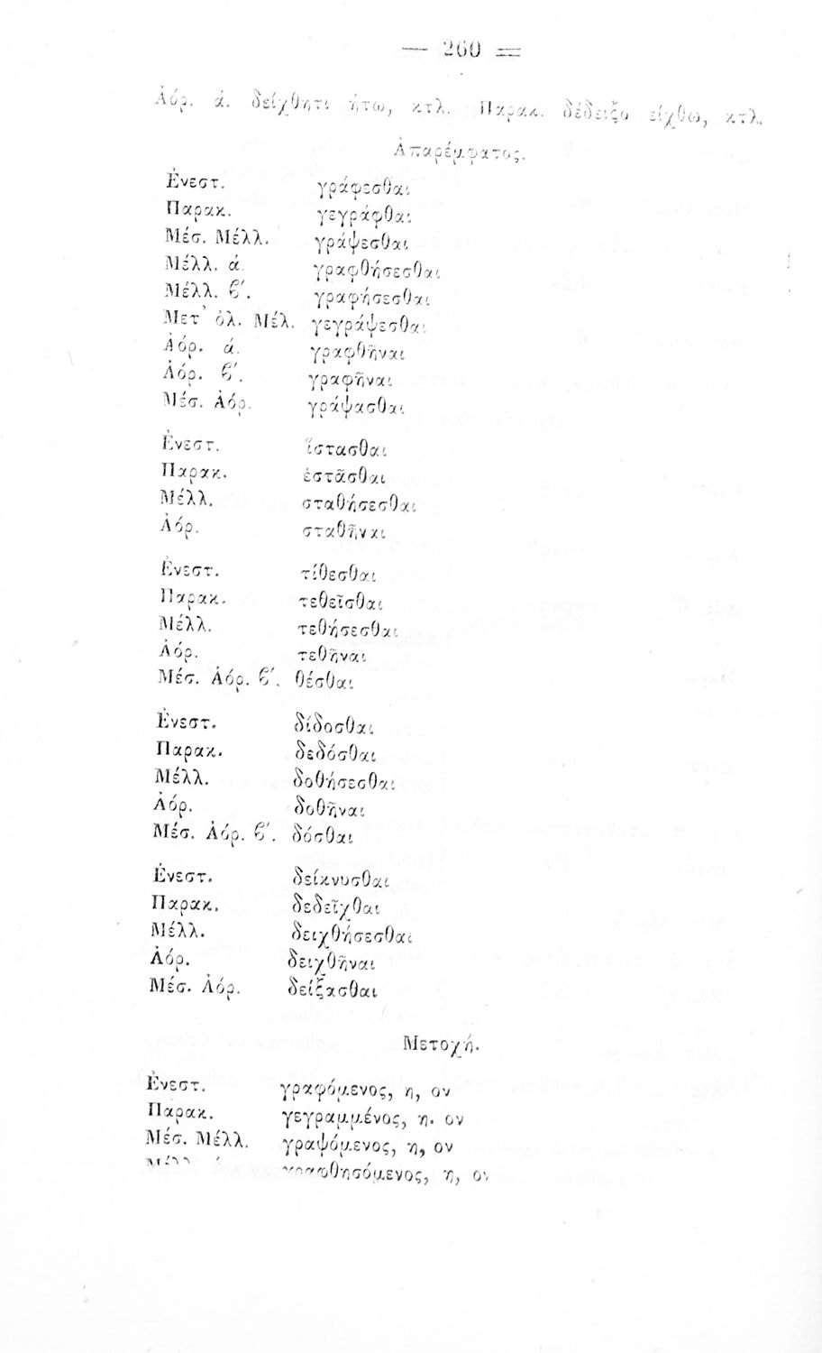 Σχολικό εγχειρίδιο Αρχαίων Ελληνικών για τα Ελληνικά Σχολεία και Παρθεναγωγεία που περιέχει τους κανόνες γραμματικής και είναι χωρισμένο σε φθογγολογικό, τυπολογικό και ετυμολογικό μέρος.