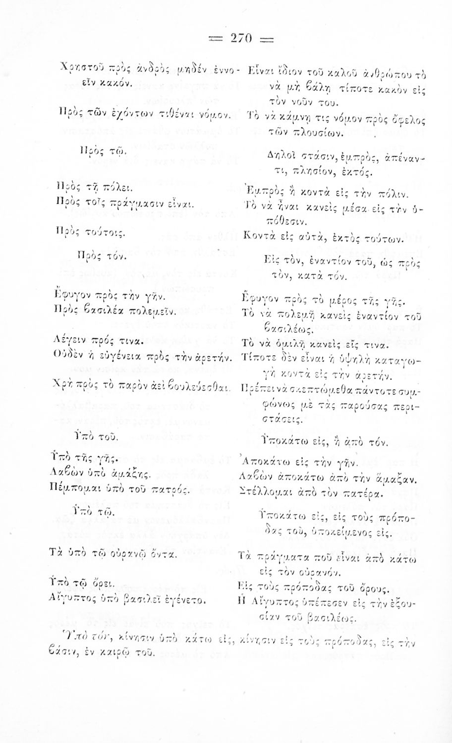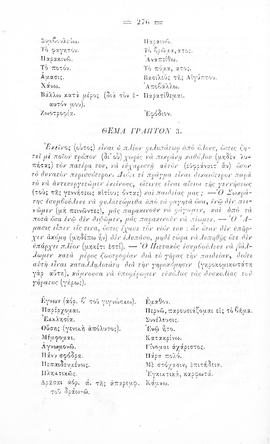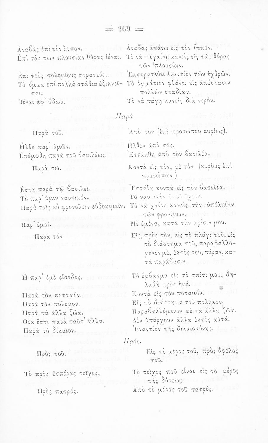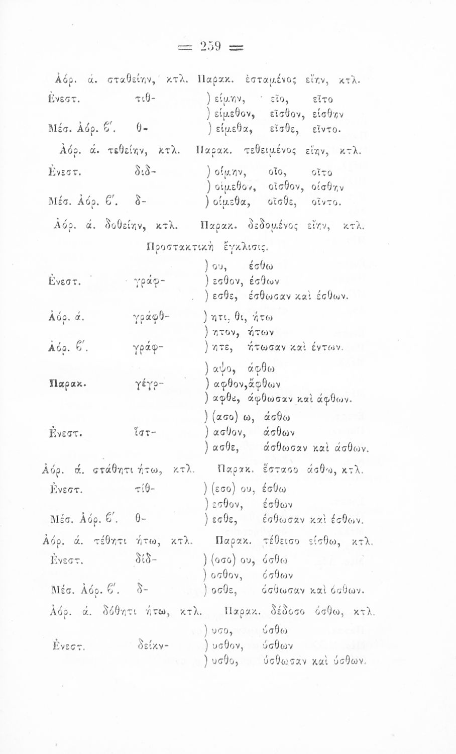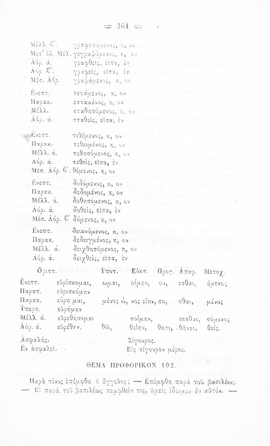 Μαθητικό βοήθημα Αρχαίων Ελληνικών για τα Ελληνικά Σχολεία, Παρθεναγωγεία και Γυμνάσια που περιλαμβάνει γραμματική της αρχαίας ελληνικής και κατάλογο ανωμάλων ρημάτων.