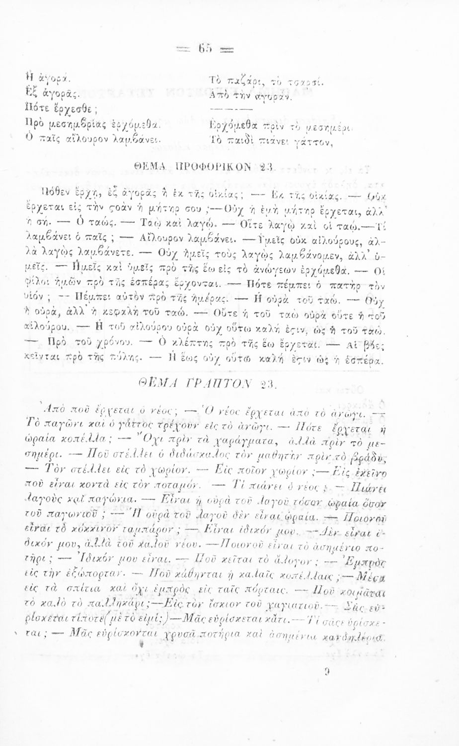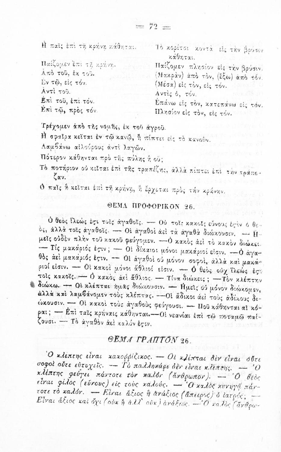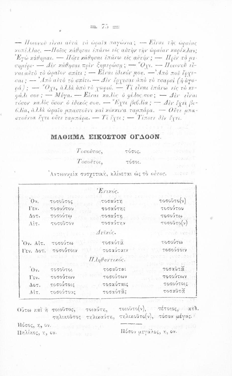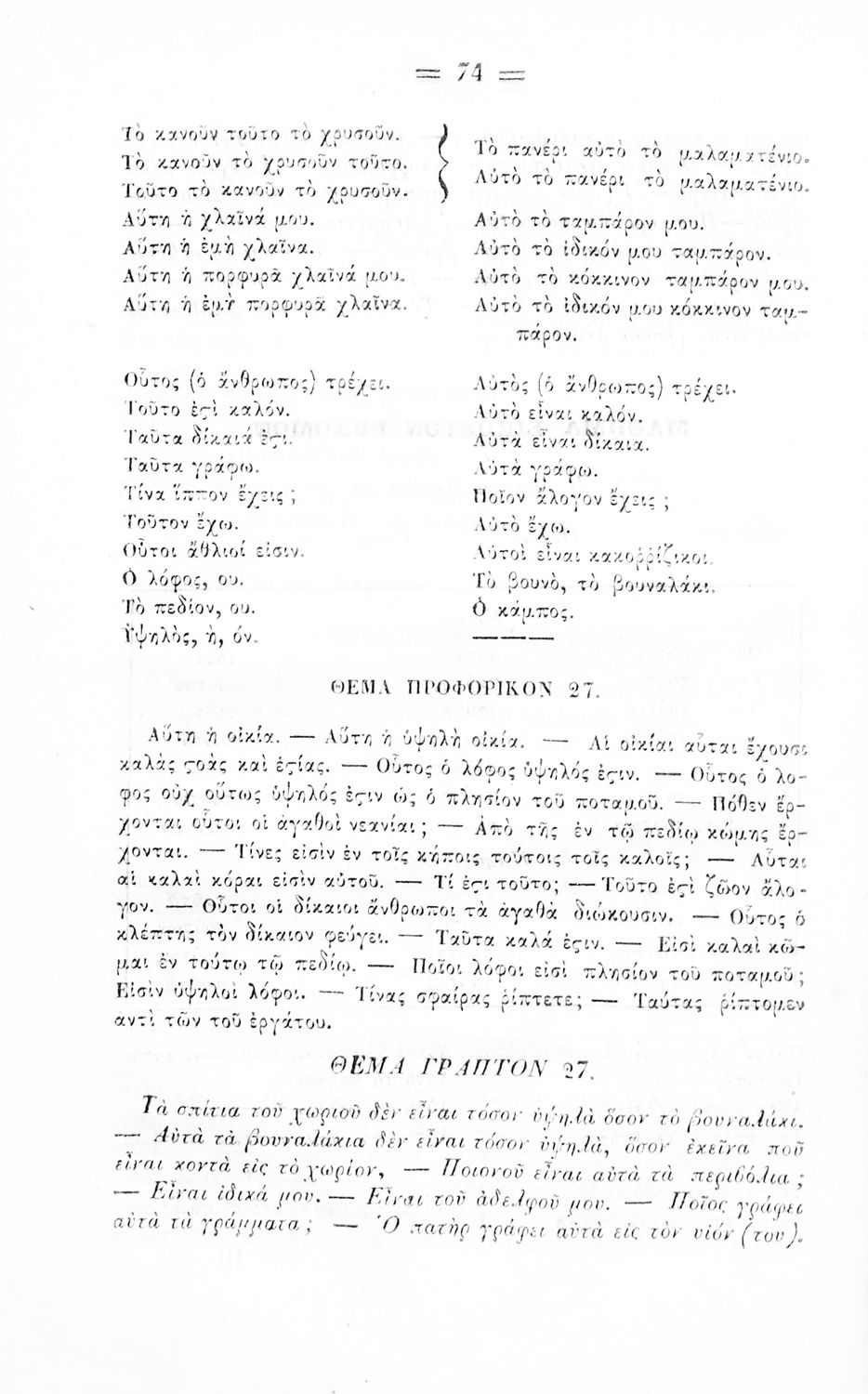 Σχολικό εγχειρίδιο Αρχαίων Ελληνικών για τα Ελληνικά Σχολεία και Παρθεναγωγεία που εστιάζει στα μέρη του λόγου και στην σύνταξή τους.