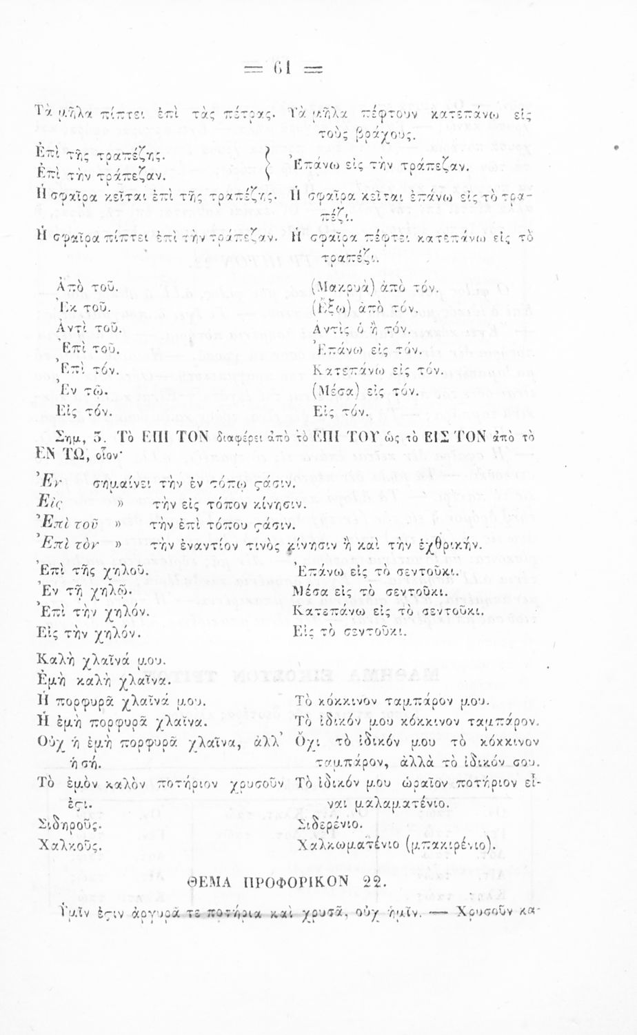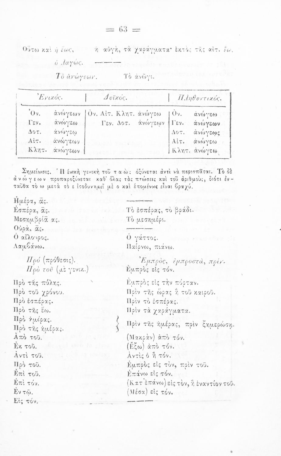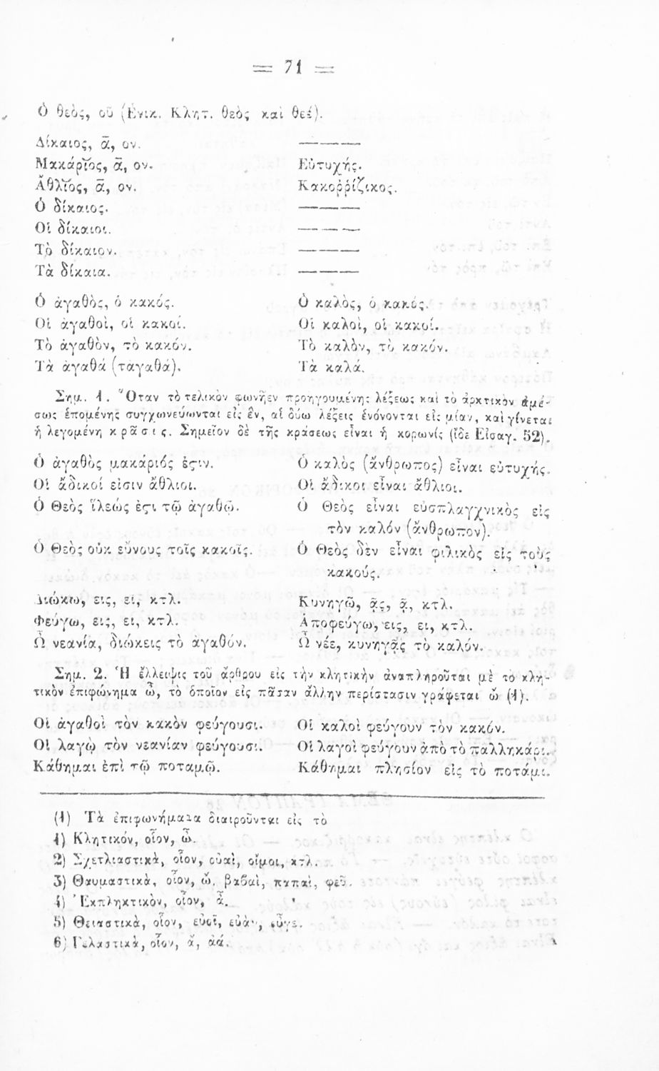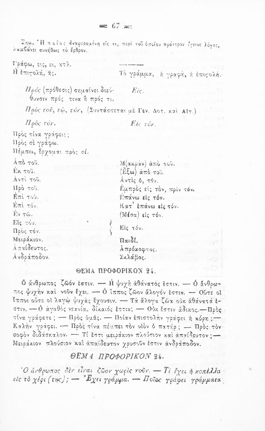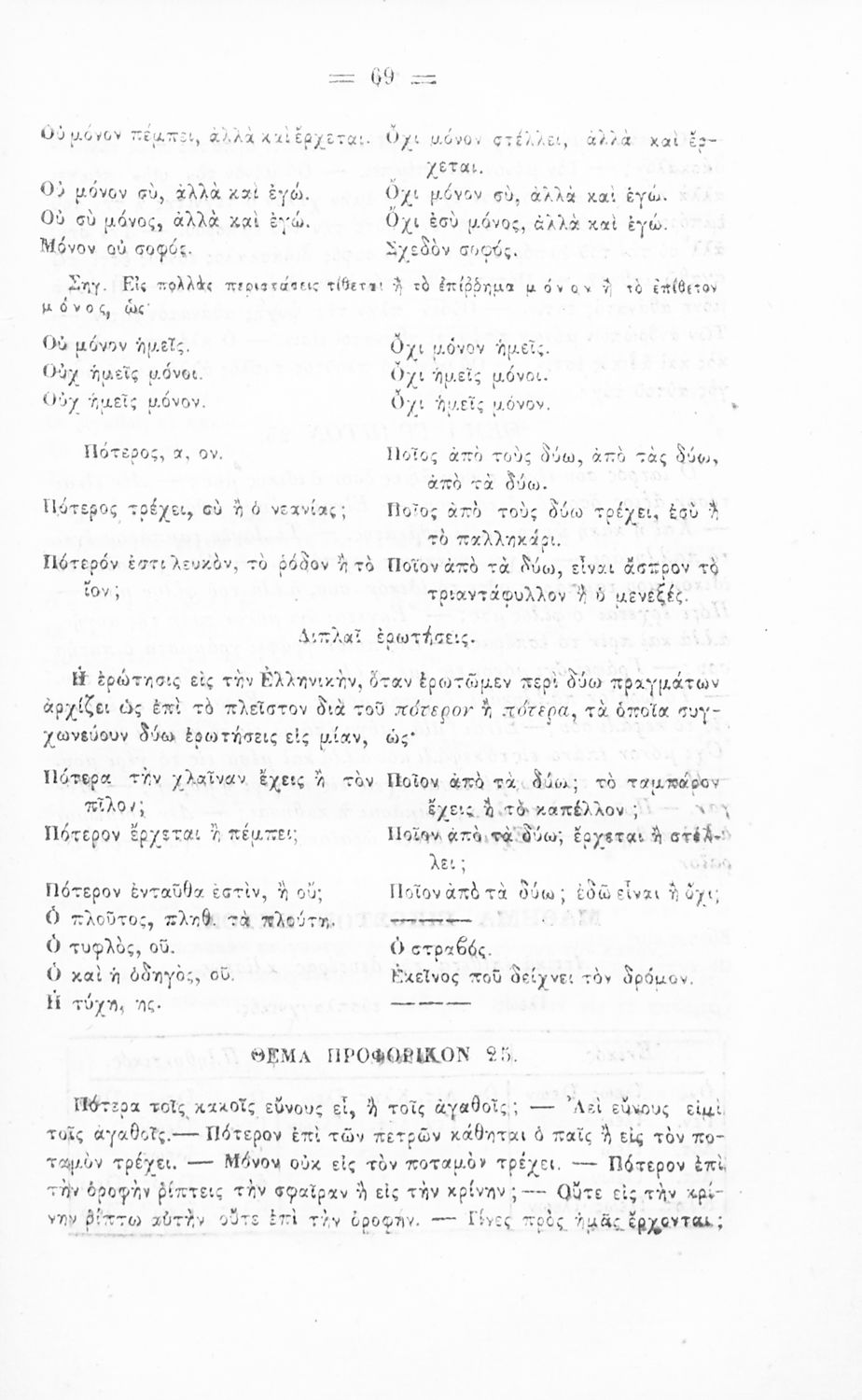 Σχολικό εγχειρίδιο Αρχαίων Ελληνικών για τα Ελληνικά Σχολεία και Παρθεναγωγεία που εστιάζει στα μέρη του λόγου και στην σύνταξή τους.