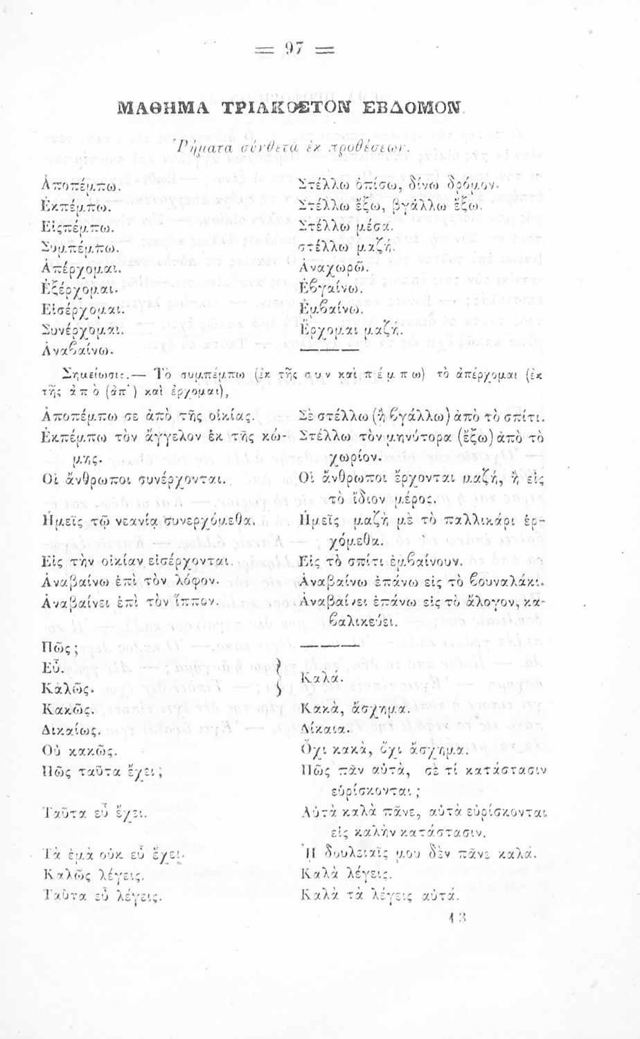 Μαθητικό βοήθημα Αρχαίων Ελληνικών για τα Ελληνικά Σχολεία, Παρθεναγωγεία και Γυμνάσια που περιλαμβάνει γραμματική της αρχαίας ελληνικής και κατάλογο ανωμάλων ρημάτων.