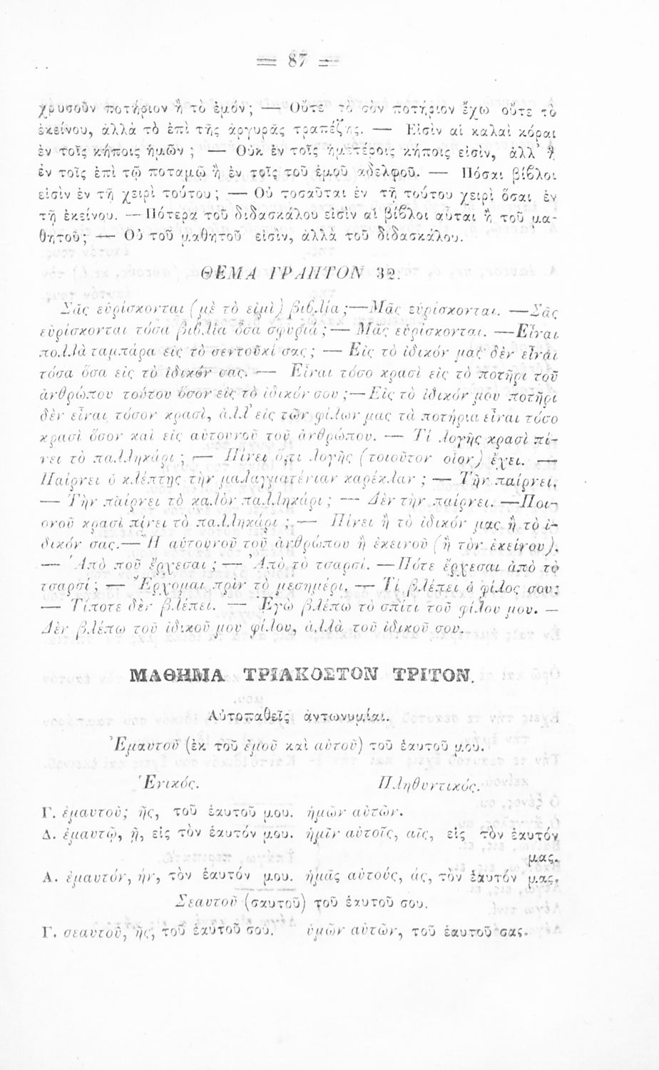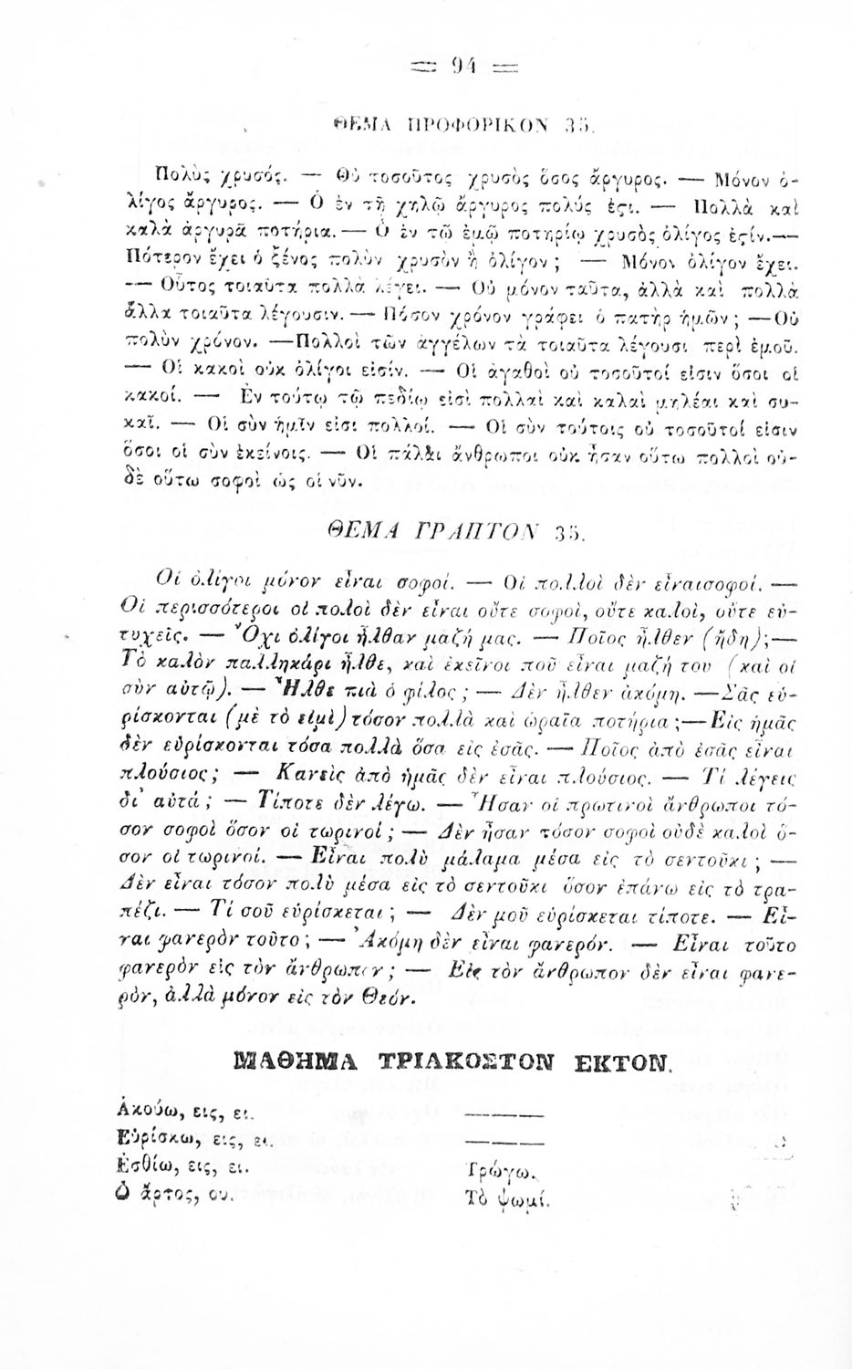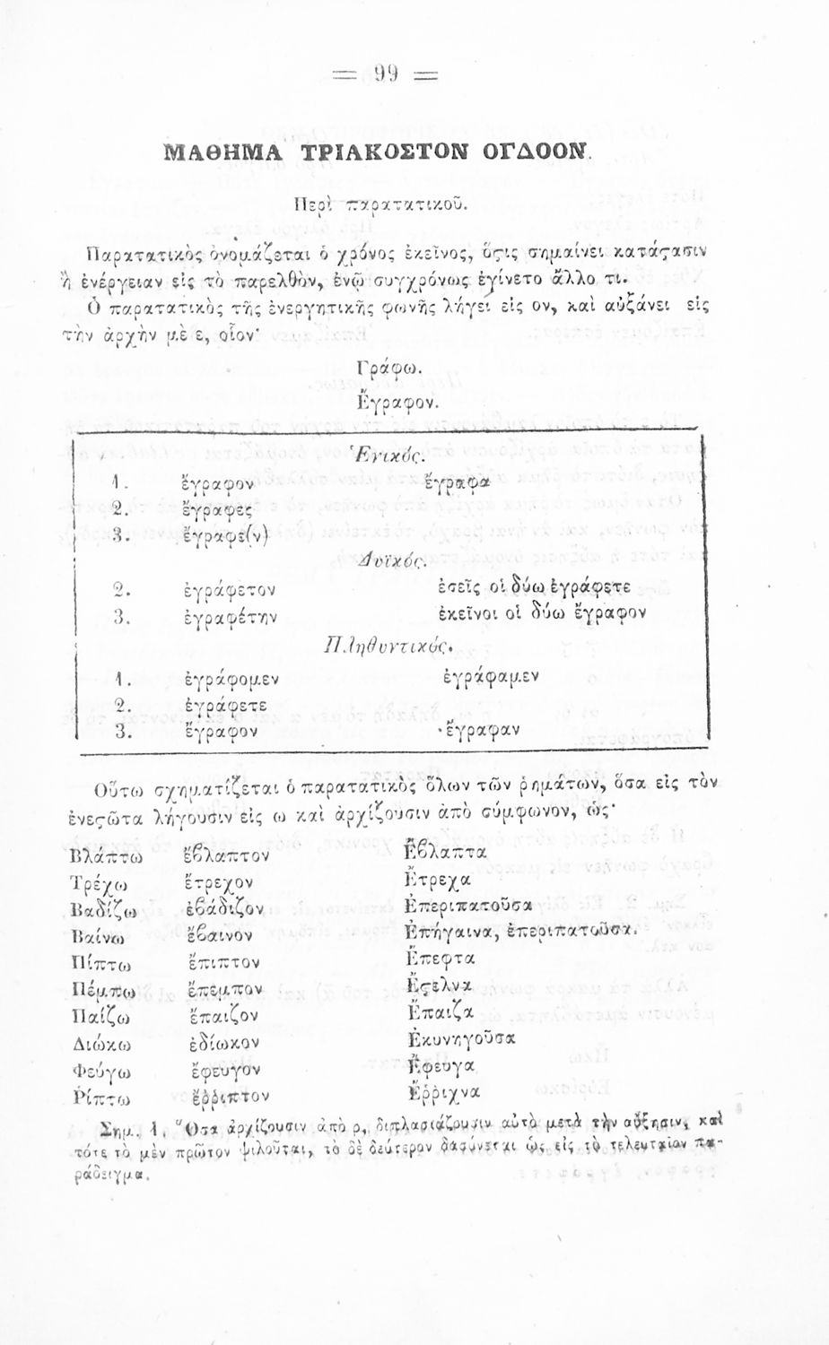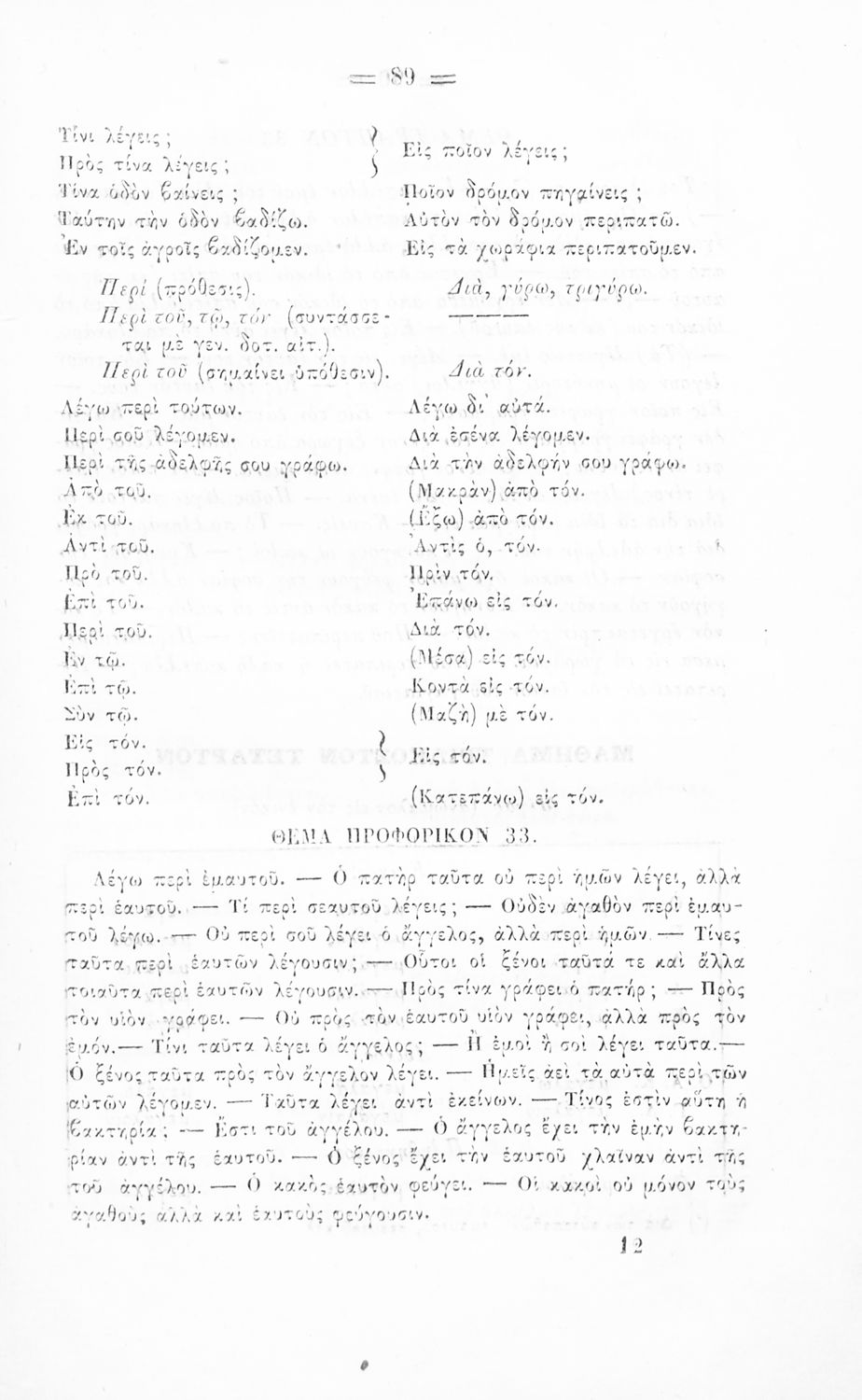 Σχολικό εγχειρίδιο Αρχαίων Ελληνικών για τα Ελληνικά Σχολεία και Παρθεναγωγεία που περιέχει τους κανόνες γραμματικής και είναι χωρισμένο σε φθογγολογικό, τυπολογικό και ετυμολογικό μέρος.