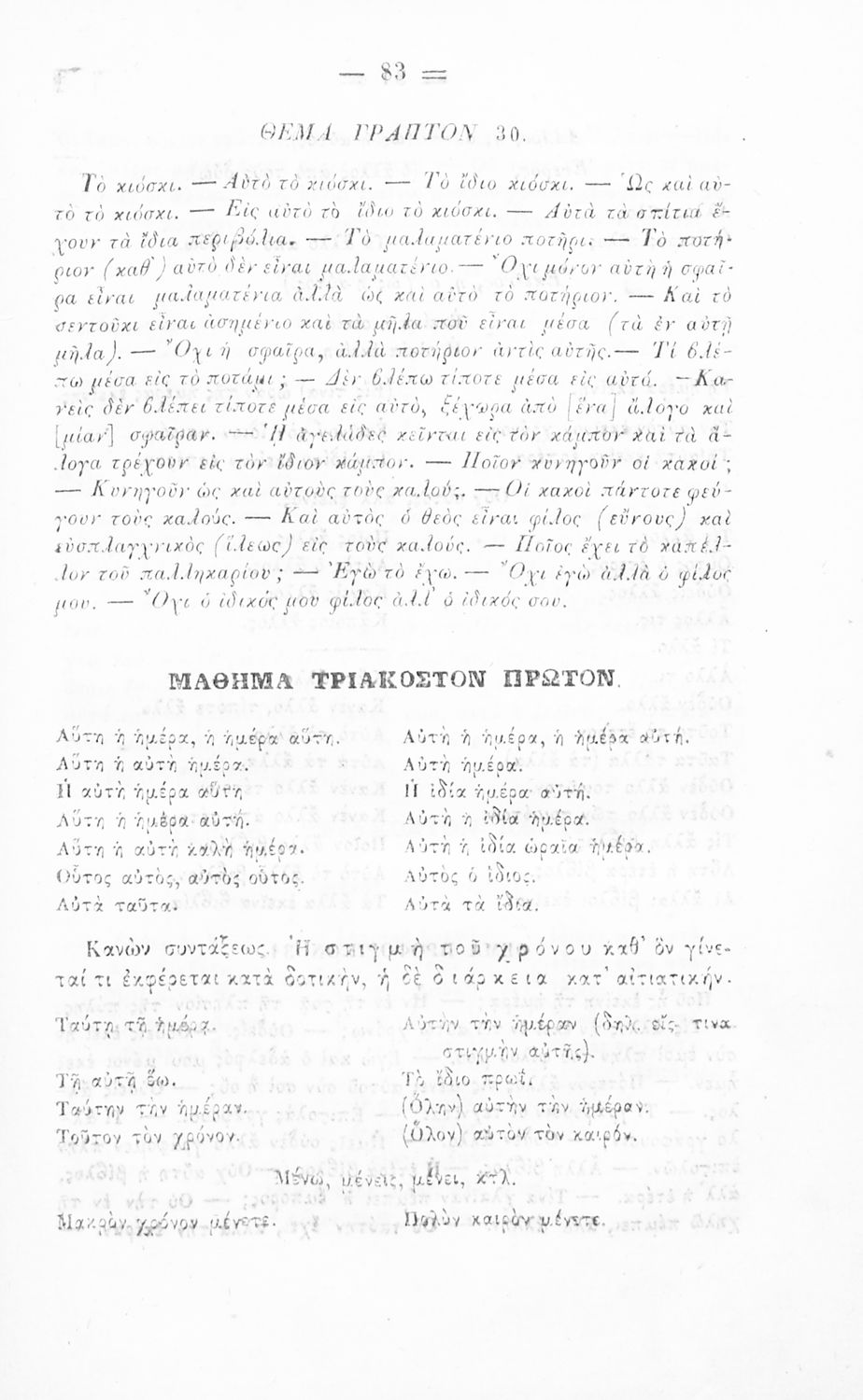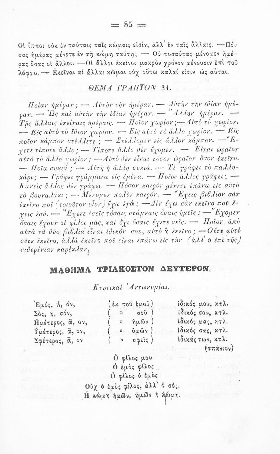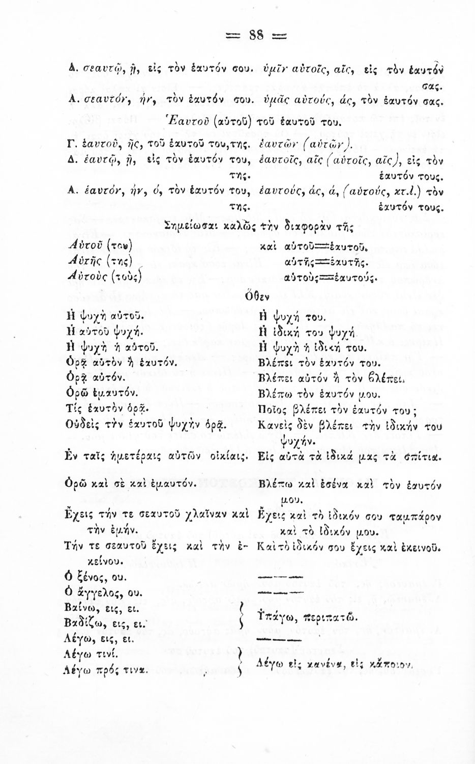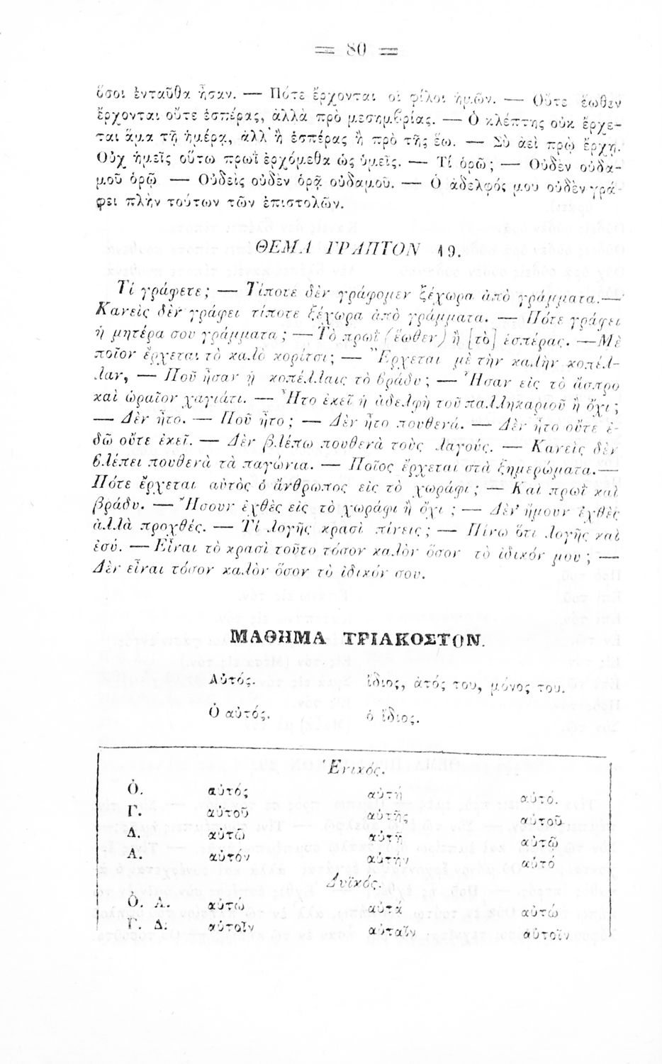 Σχολικό εγχειρίδιο Αρχαίων Ελληνικών για τα Ελληνικά Σχολεία και Παρθεναγωγεία που περιέχει τους κανόνες γραμματικής και είναι χωρισμένο σε φθογγολογικό, τυπολογικό και ετυμολογικό μέρος.