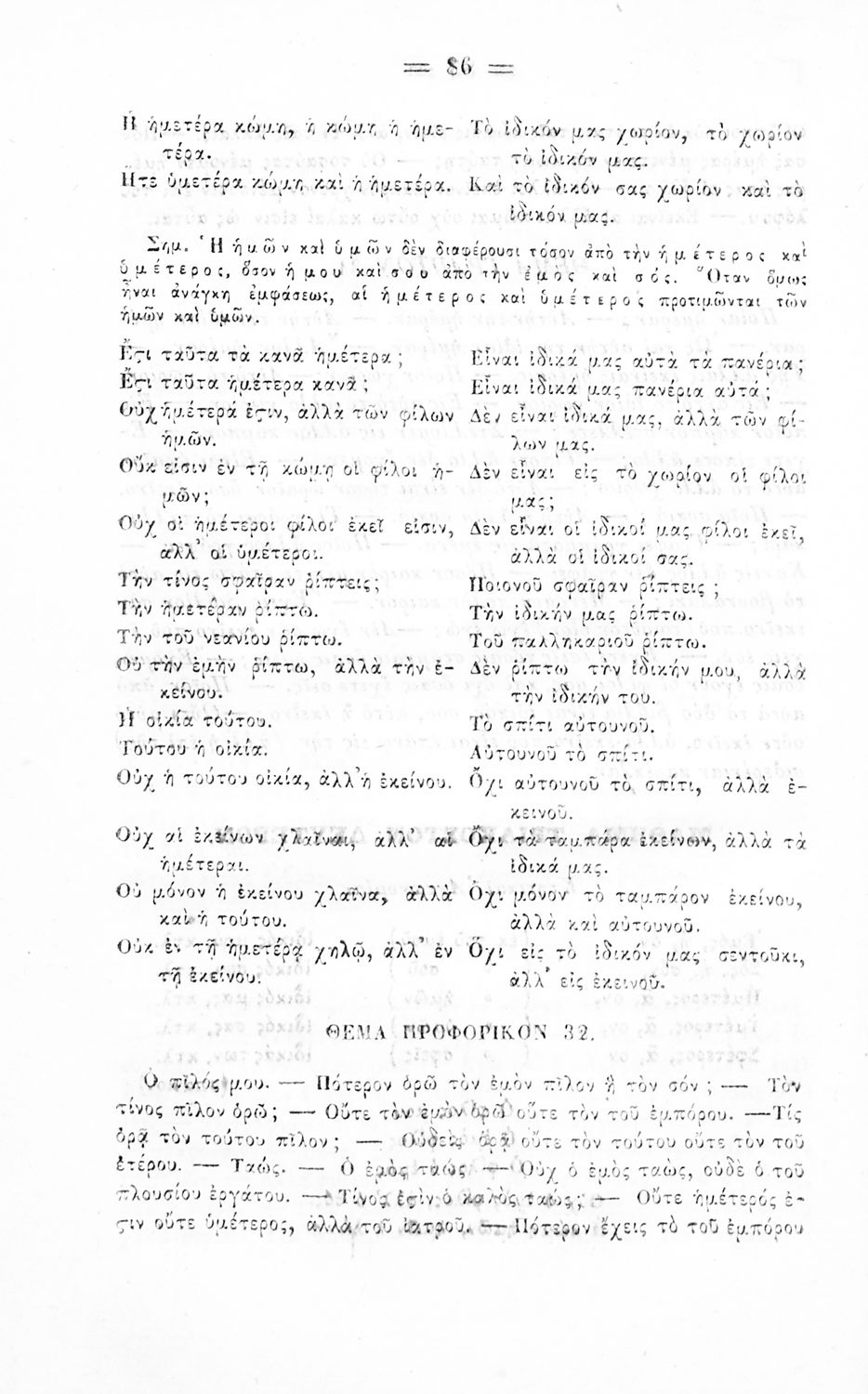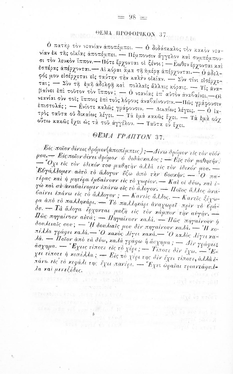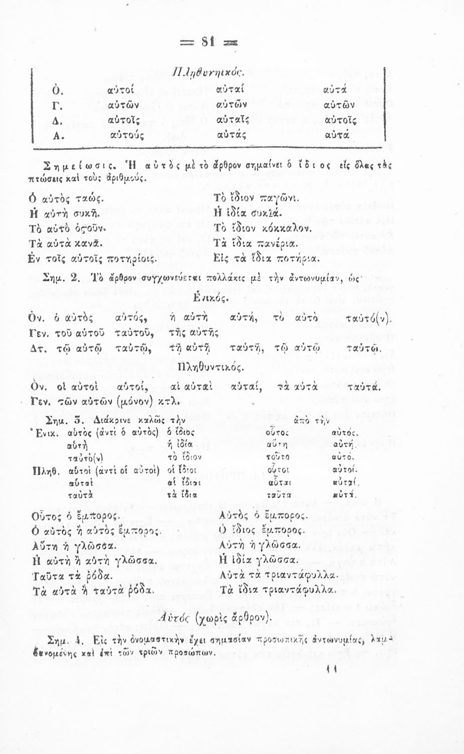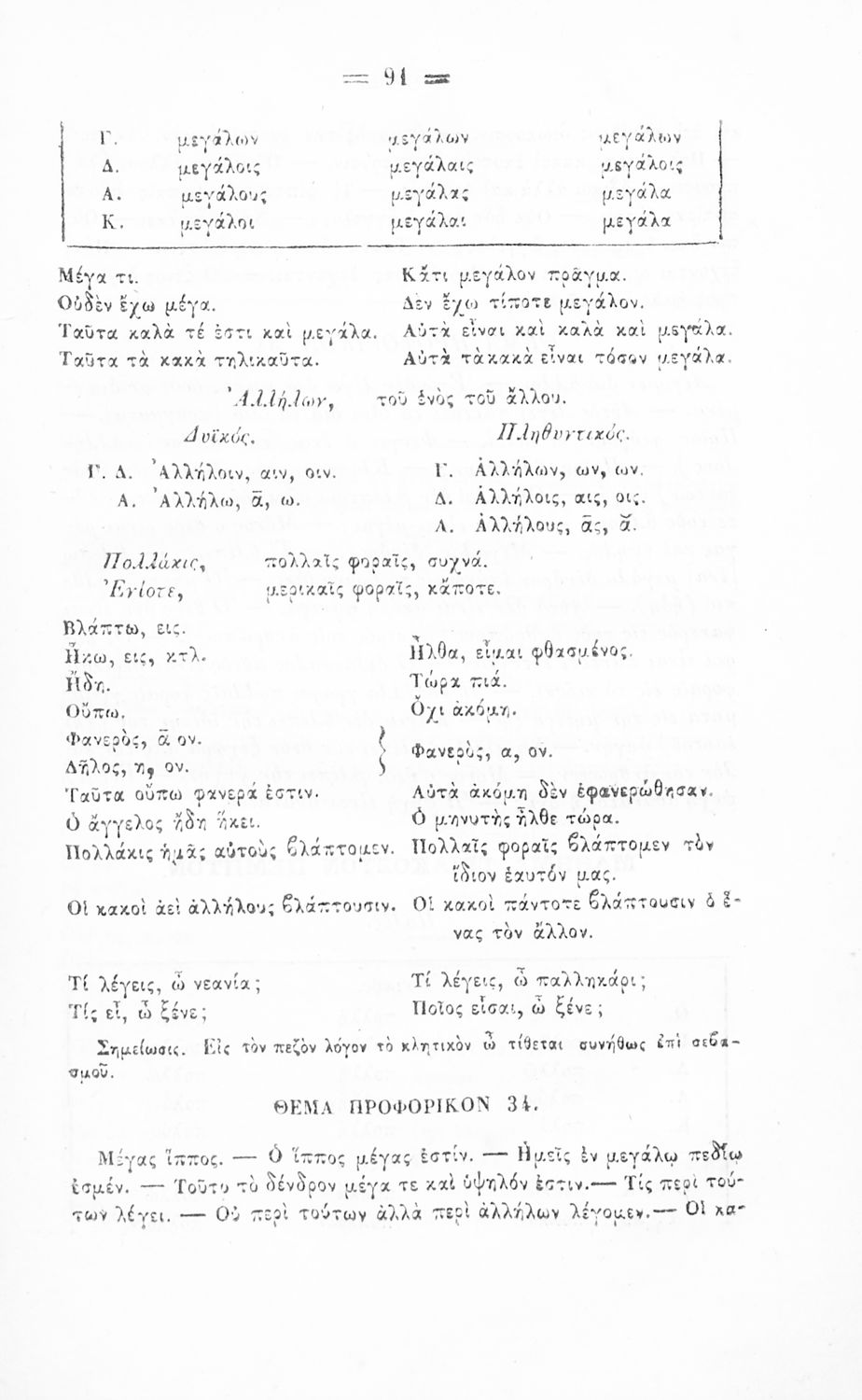 Σχολικό εγχειρίδιο Αρχαίων Ελληνικών για τα Ελληνικά Σχολεία και Παρθεναγωγεία που περιέχει τους κανόνες γραμματικής και είναι χωρισμένο σε φθογγολογικό, τυπολογικό και ετυμολογικό μέρος.