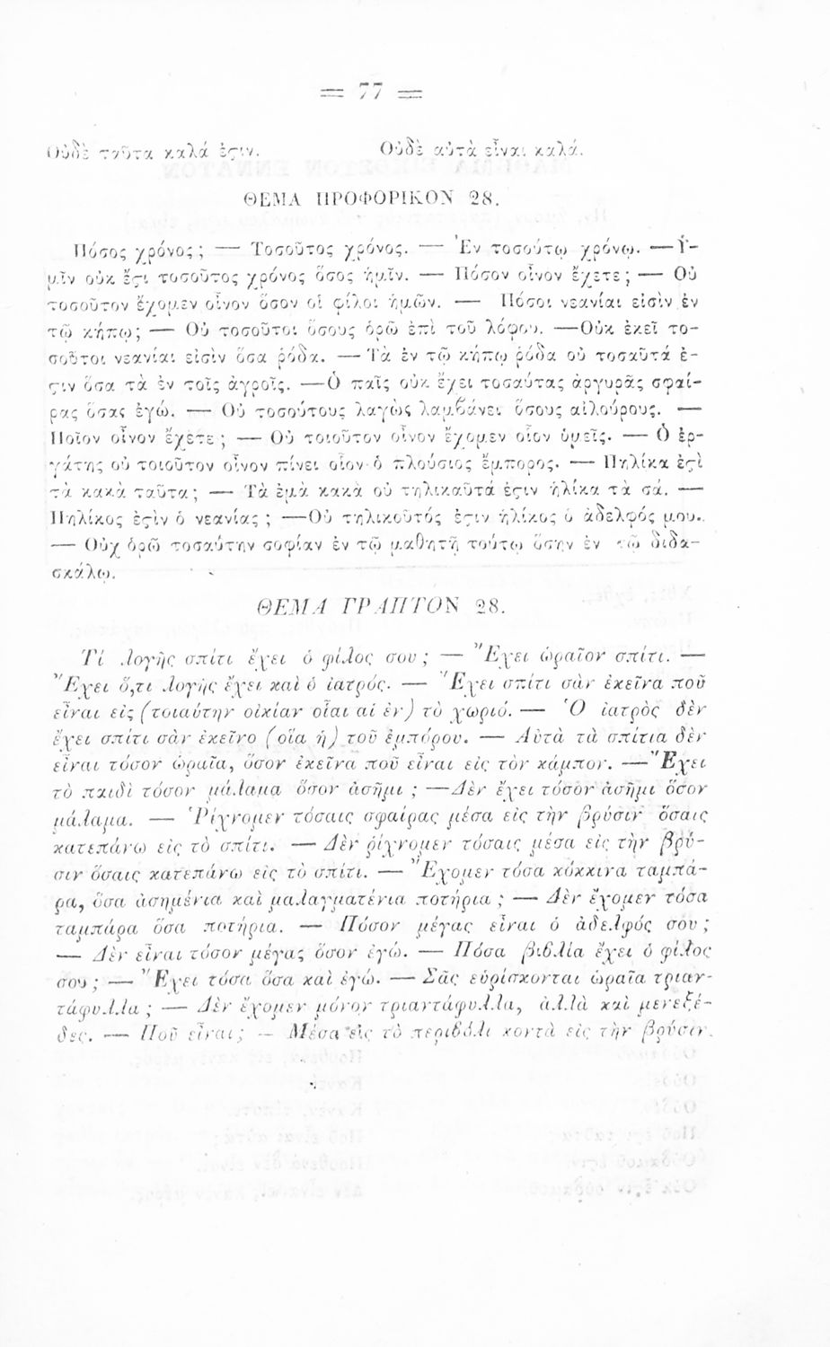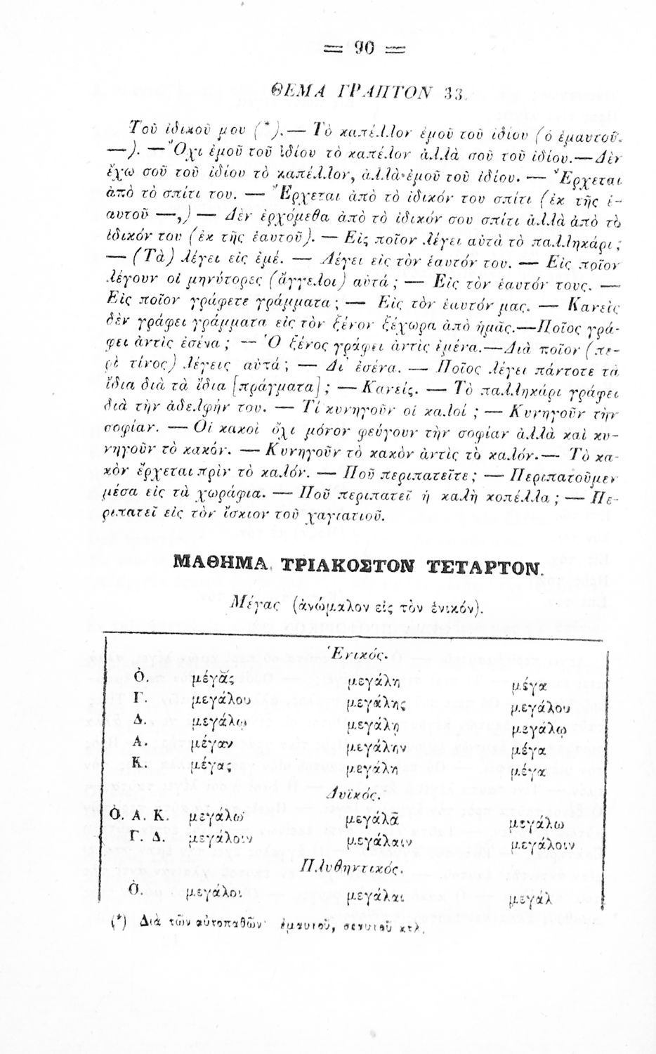 Σχολικό εγχειρίδιο Αρχαίων Ελληνικών για τα Ελληνικά Σχολεία, Παρθεναγωγεία και Γυμνάσια που περιέχει τους κανόνες γραμματικής και είναι χωρισμένο σε φθογγολογικό, τυπολογικό και ετυμολογικό μέρος.