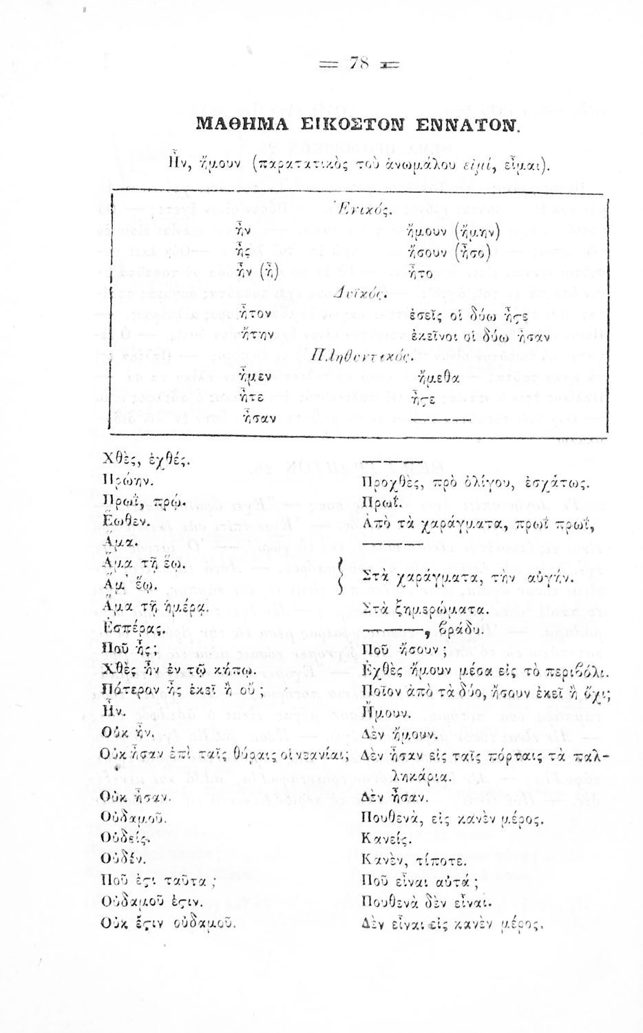 Σχολικό εγχειρίδιο Αρχαίων Ελληνικών για τα Ελληνικά Σχολεία και τα Ανώτερα Παρθεναγωγεία που εξετάζει τα μέρη του λόγου και την σύνταξή τους.