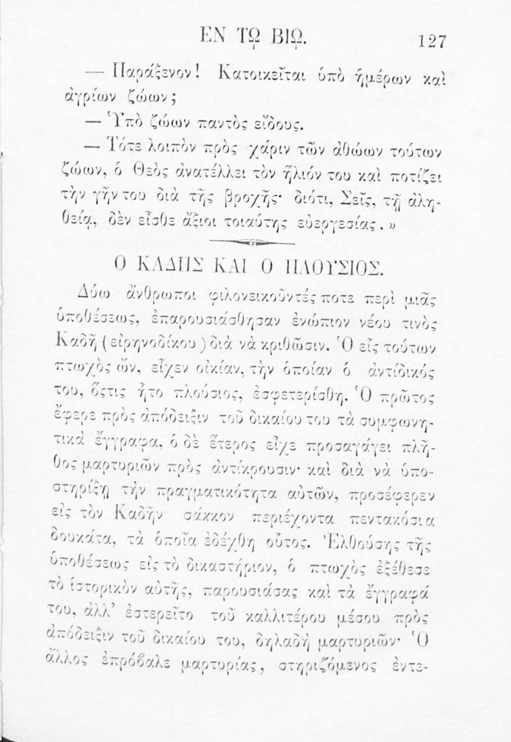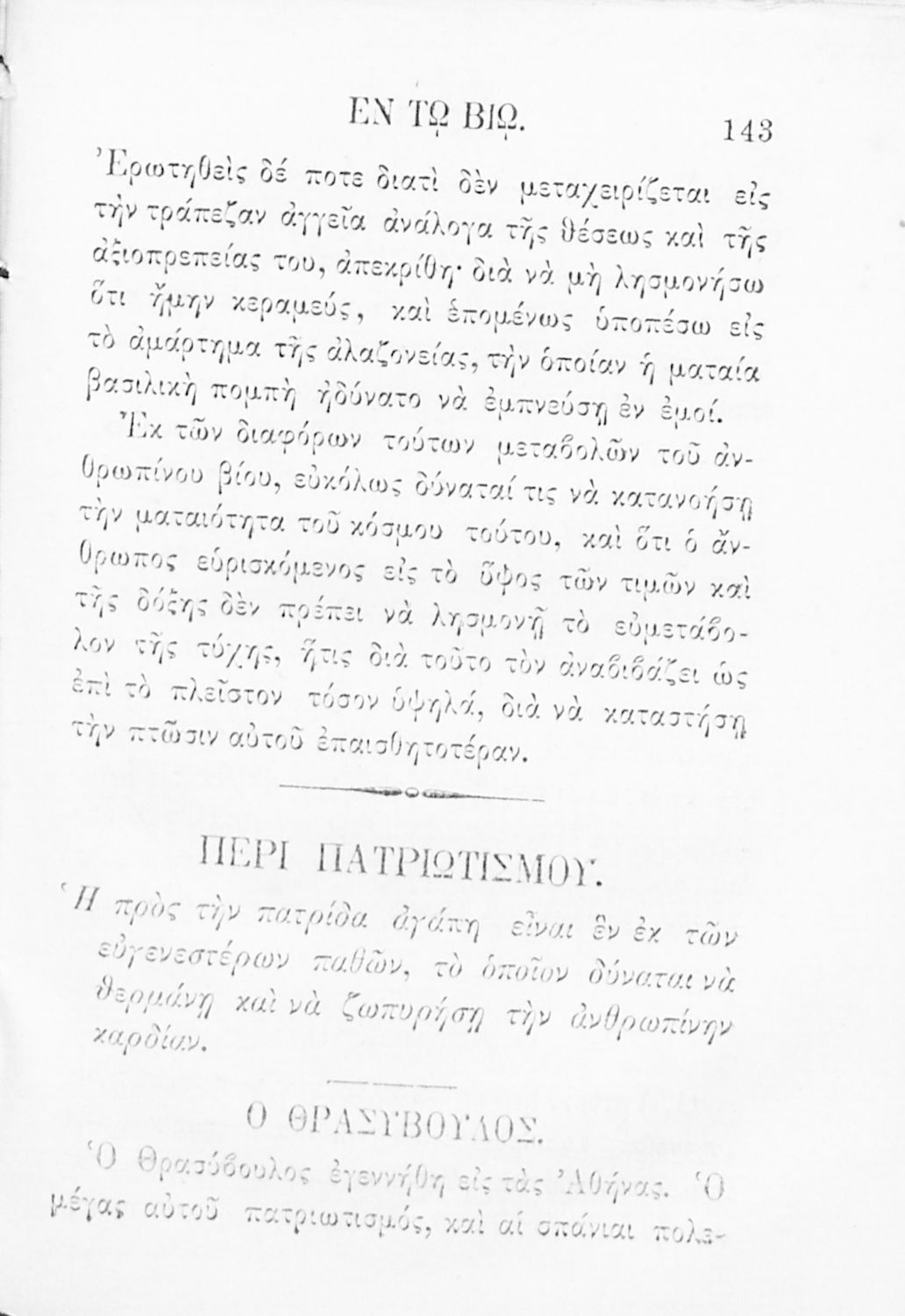 Ηθική εν τω βίω ενεργουμένη : ήτοι ηθικά τεμάχια διαφόρων συγγραφέων της τε παλαιάς και νεωτέρας ιστορίας, τα μεν μεταφρασθέντα, τα δε ερανισθέντα, προς ηθικήν εφαρμογήν και χρήσιν των Δημοτικών Σχολείων