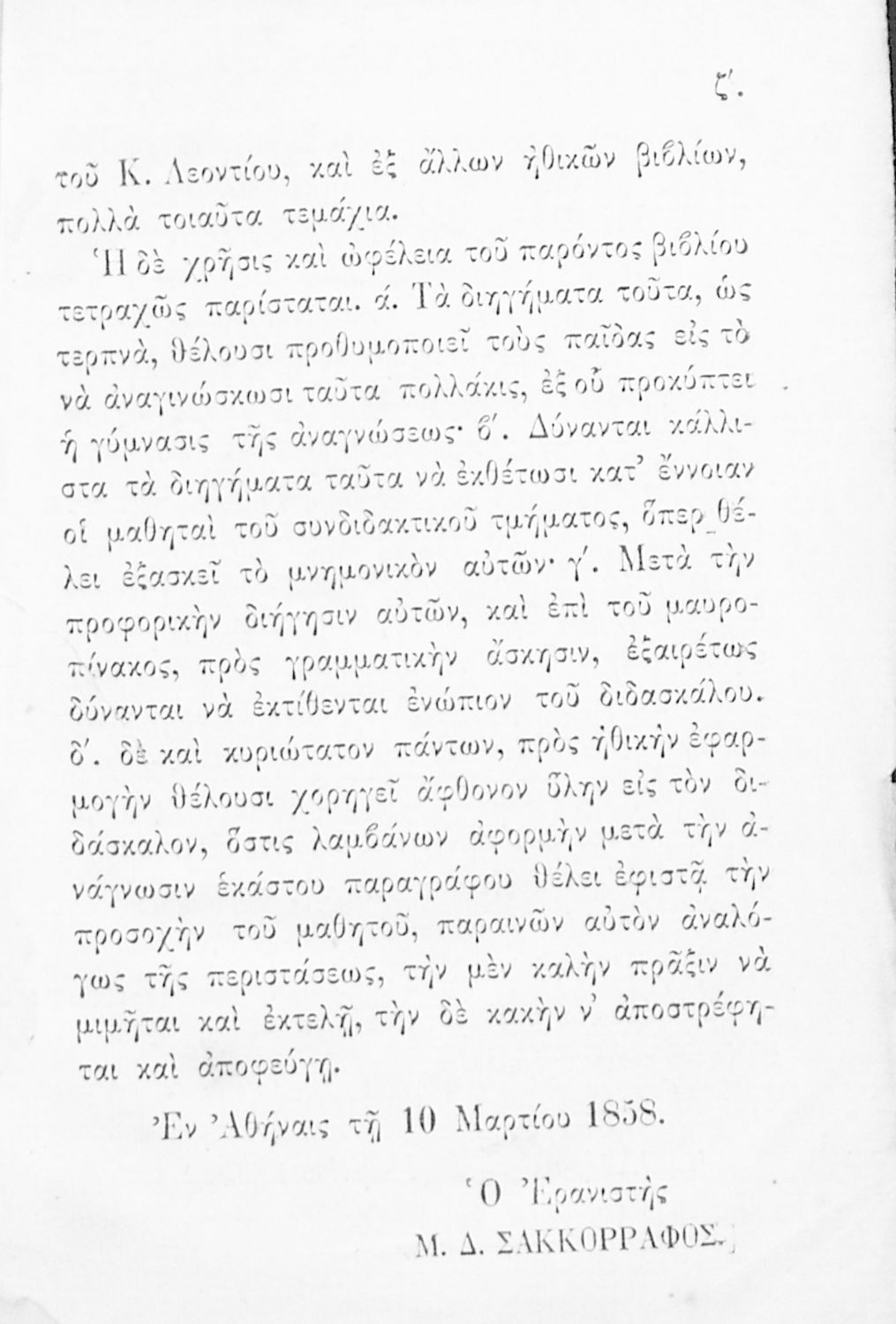 Βαθμίδα εκπαίδευσης: Πρωτοβάθμια Γλώσσα: Καθαρεύουσα Παρουσίαση περιεχομένου: Αναγνωστικό που περιλαμβάνει σύντομα διηγήματα ηθικοπλαστικού περιεχομένου εμπνευσμένα από τη θρησκευτική παράδοση, την αρχαία Ελλάδα, τη ρωμαϊκή και την σύγχρονη ευρωπαϊκή ιστορία. |