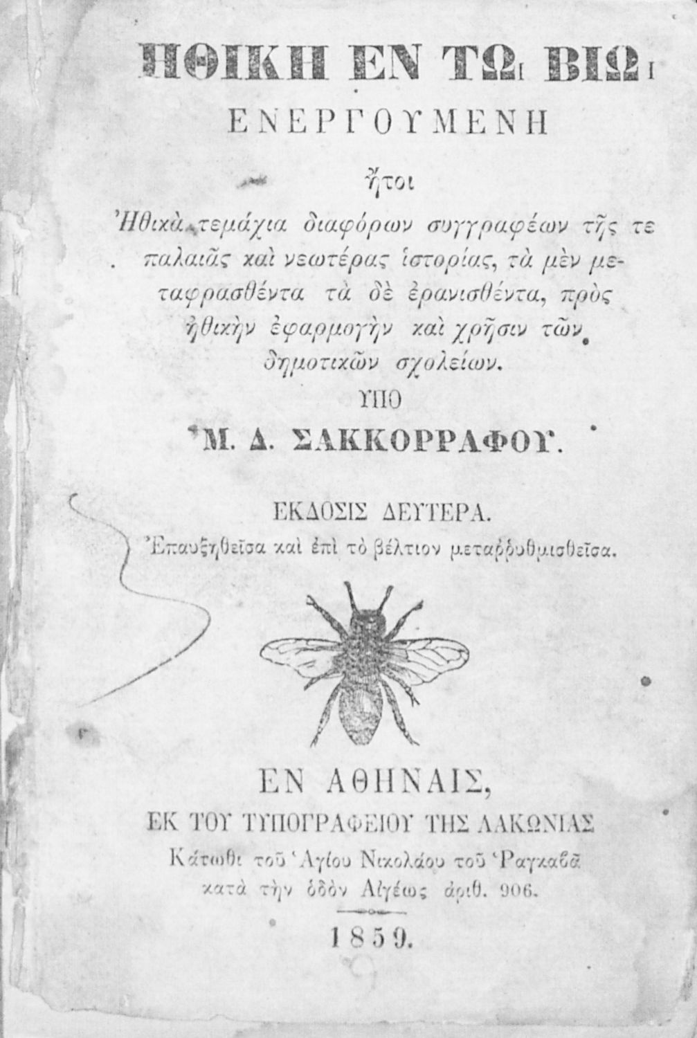 Εκδότης: Τυπογραφείο Λακωνία Έτος έκδοσης: 1859 Τόπος έκδοσης: Αθήνα Έκδοση: 2η |
