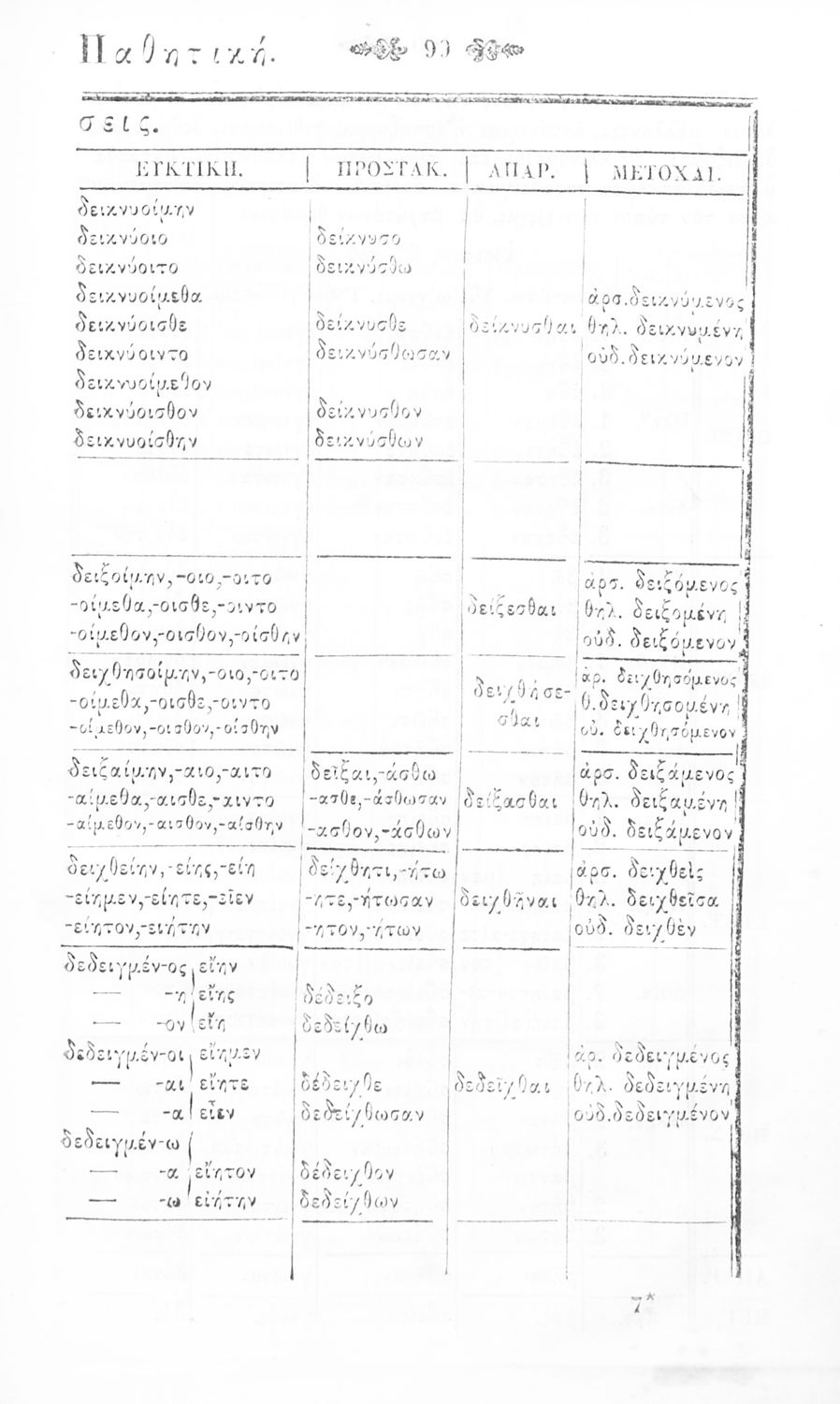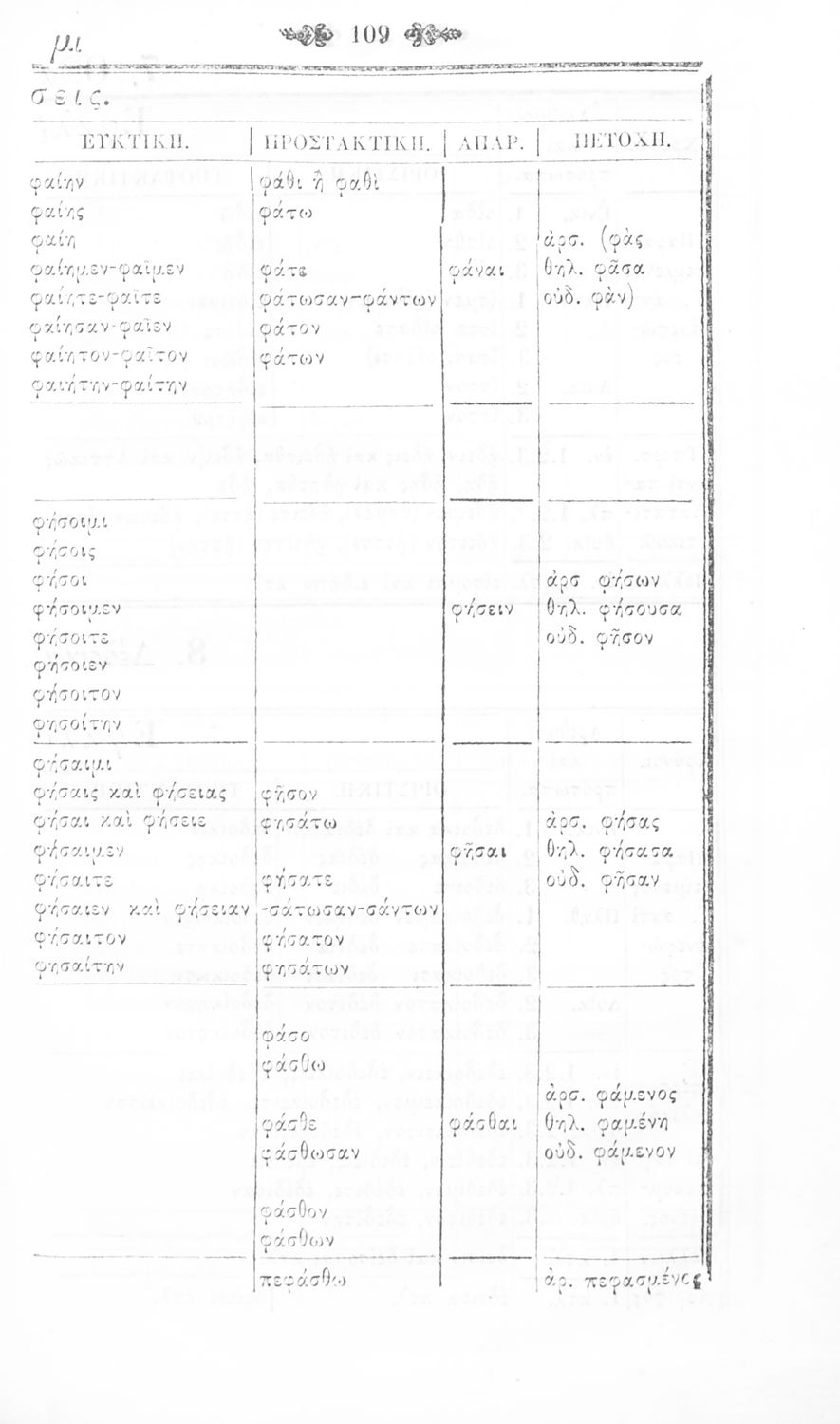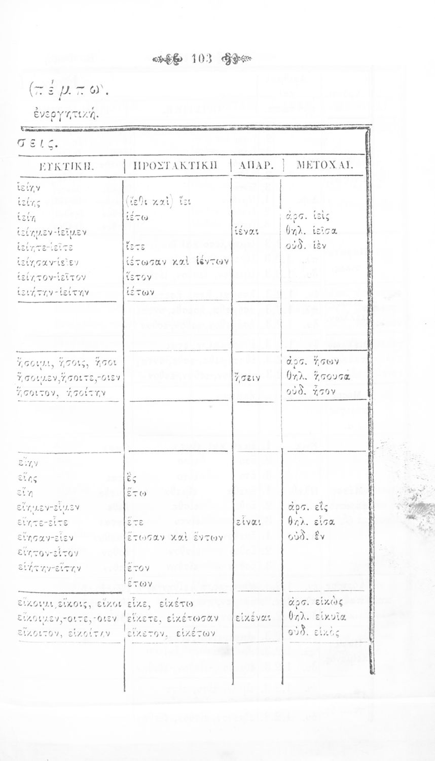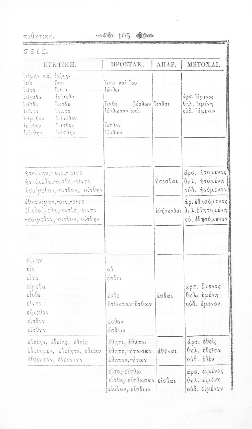 Σχολικό εγχειρίδιο Αρχαίων Ελληνικών Γυμνασίου που περιλαμβάνει τη γραμματική της αρχαίας ελληνικής και είναι χωρισμένο σε φθογγολογικό και τυπολογικό μέρος Περιέχει και κατάλογο ανωμάλων ρημάτων.