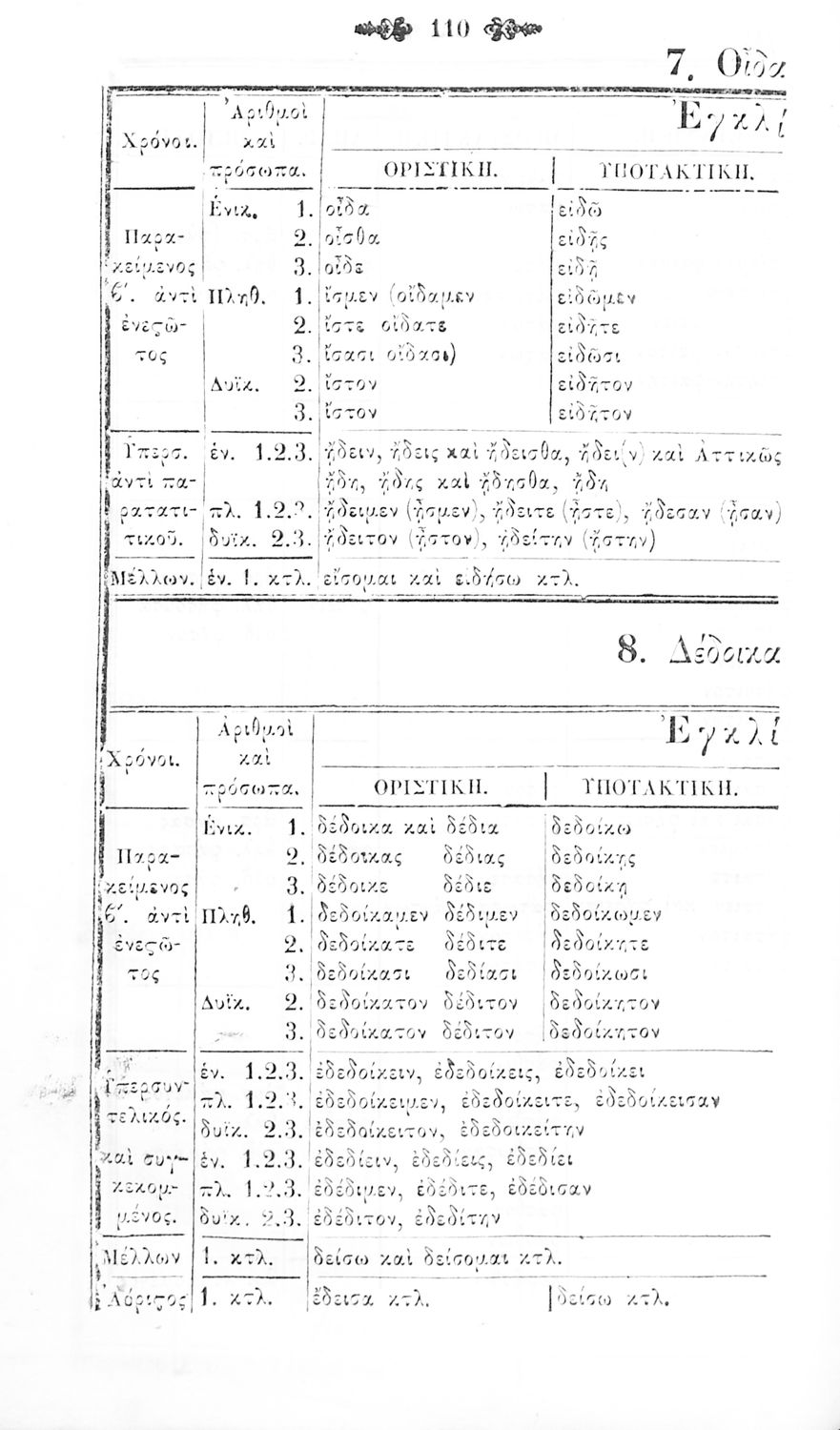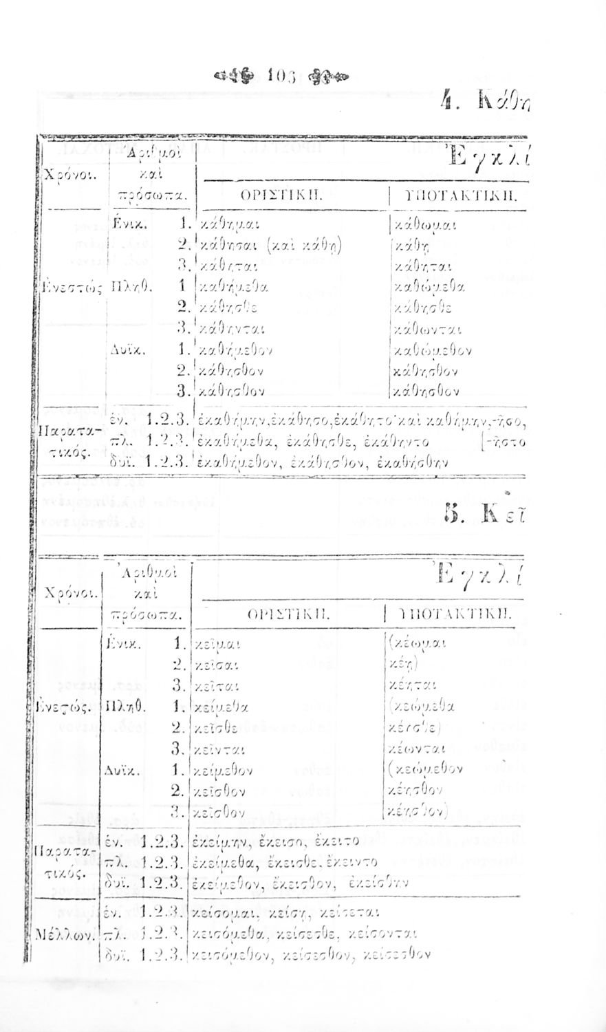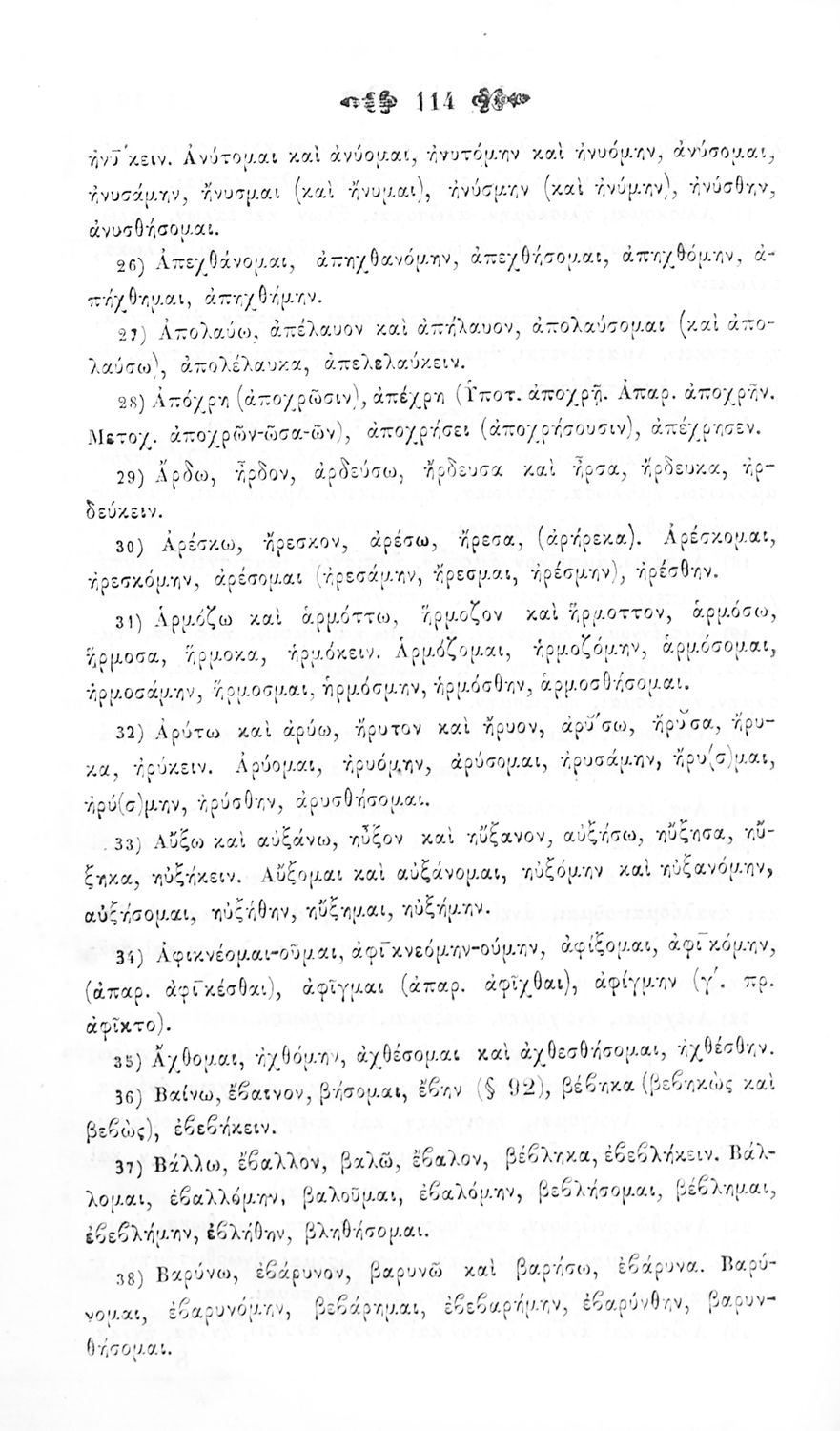 Μαθητικό βοήθημα Αρχαίων Ελληνικών για τα Ελληνικά Σχολεία, Παρθεναγωγεία και Γυμνάσια που περιλαμβάνει γραμματική της αρχαίας ελληνικής και κατάλογο ανωμάλων ρημάτων.