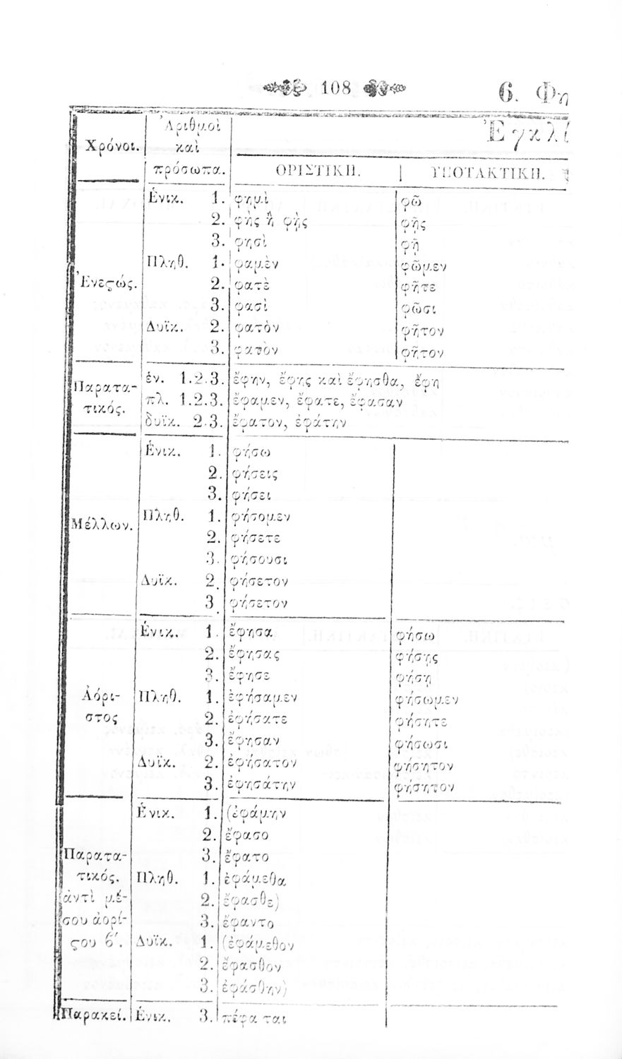Σχολικό εγχειρίδιο Αρχαίων Ελληνικών για τα Ελληνικά Σχολεία και Παρθεναγωγεία που περιέχει τους κανόνες γραμματικής και είναι χωρισμένο σε φθογγολογικό, τυπολογικό και ετυμολογικό μέρος.