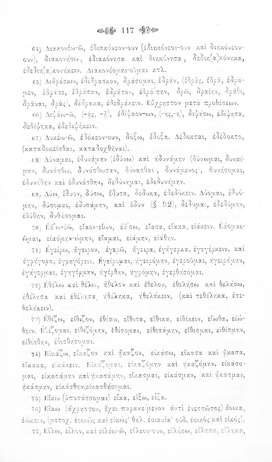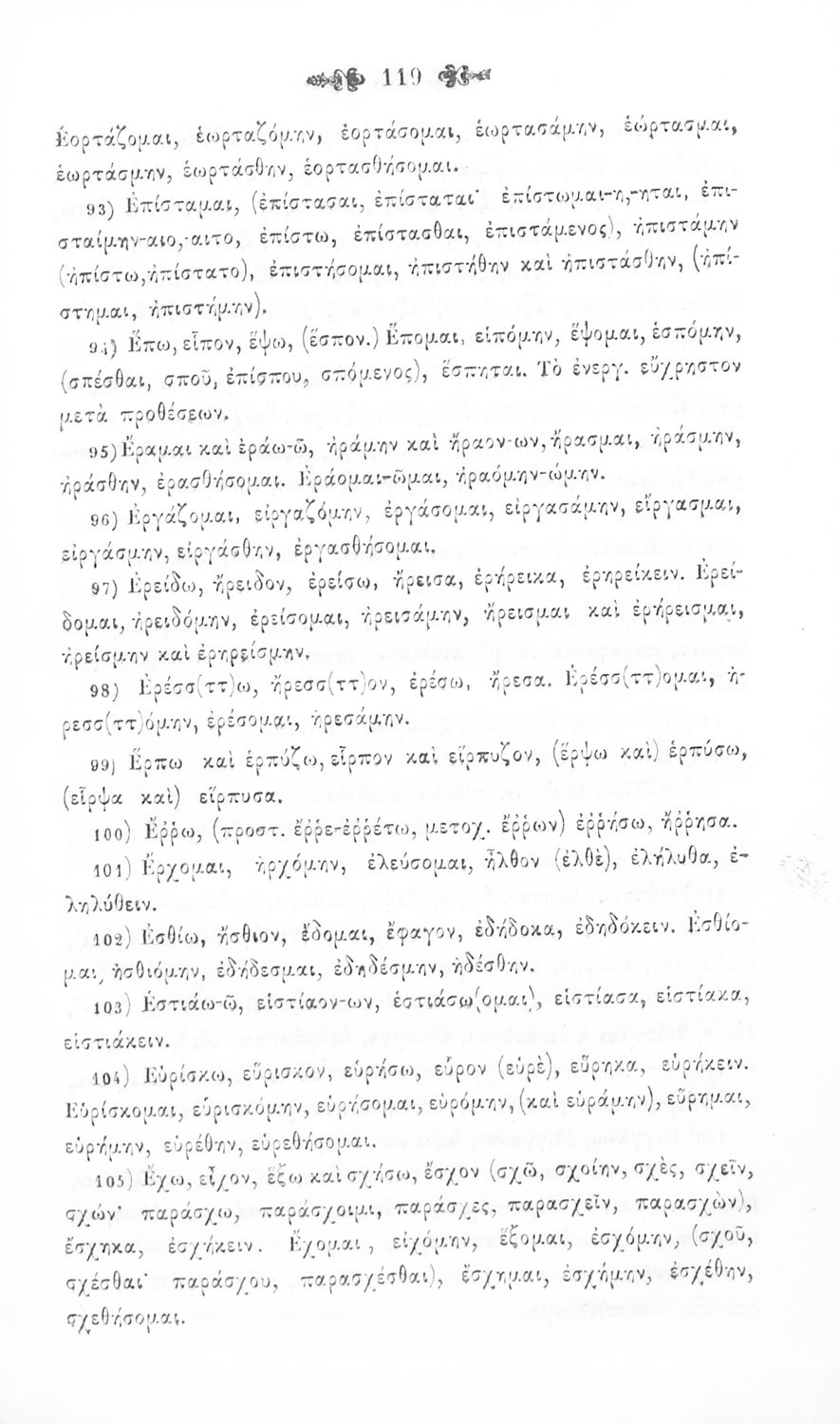 Μαθητικό βοήθημα Αρχαίων Ελληνικών για τα Ελληνικά Σχολεία, Παρθεναγωγεία και Γυμνάσια που περιλαμβάνει γραμματική της αρχαίας ελληνικής και κατάλογο ανωμάλων ρημάτων.