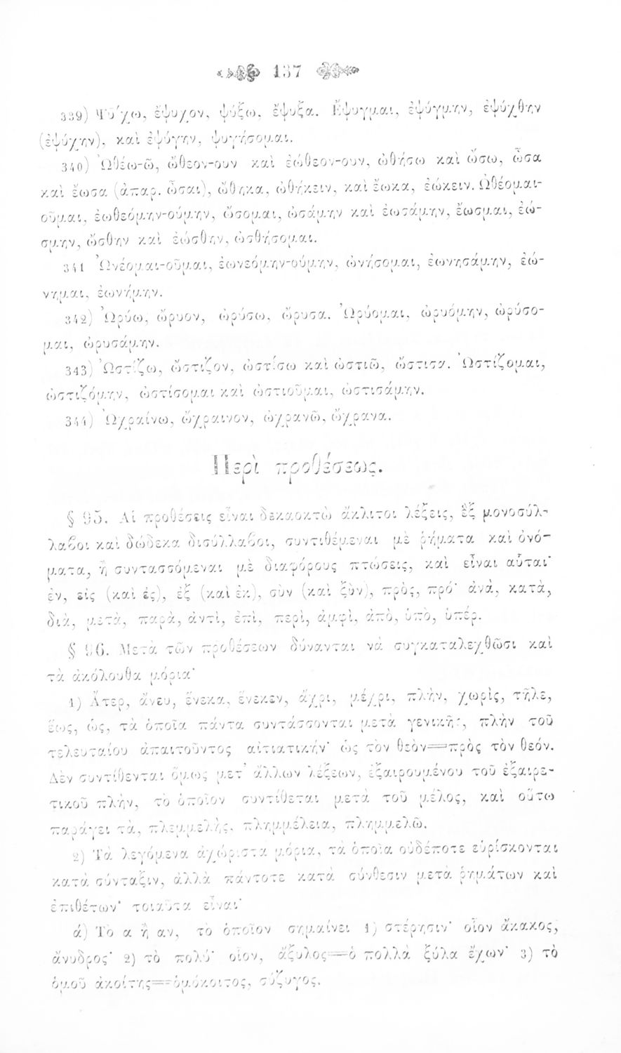 Σχολικό εγχειρίδιο Αρχαίων Ελληνικών για τα Ελληνικά Σχολεία, Παρθεναγωγεία και Γυμνάσια που περιέχει τους κανόνες γραμματικής και είναι χωρισμένο σε φθογγολογικό, τυπολογικό και ετυμολογικό μέρος.