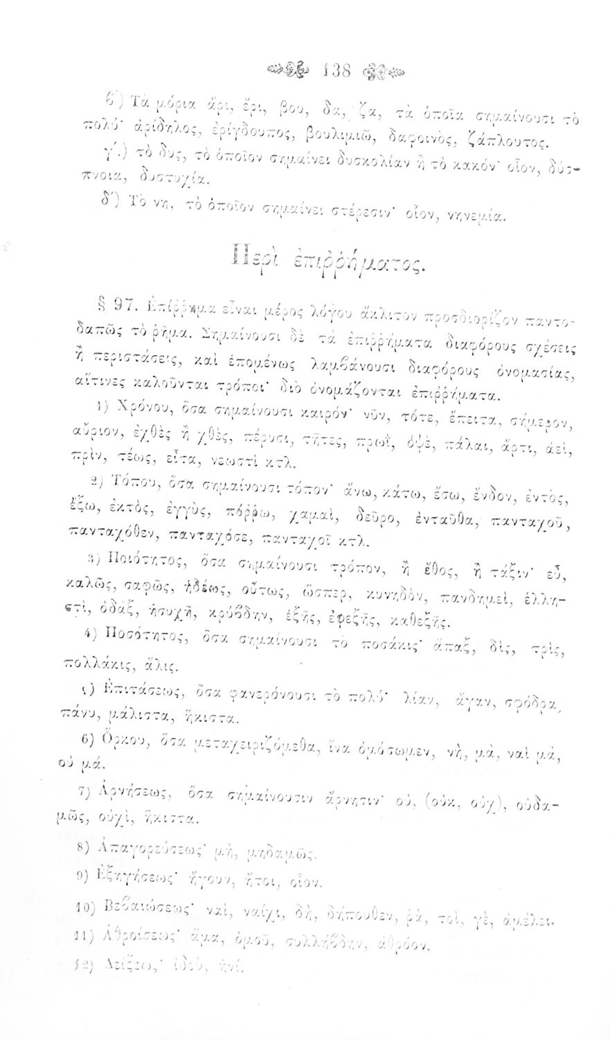 Σχολικό εγχειρίδιο Αρχαίων Ελληνικών για τα Ελληνικά Σχολεία και Παρθεναγωγεία που περιέχει τους κανόνες γραμματικής και είναι χωρισμένο σε φθογγολογικό, τυπολογικό και ετυμολογικό μέρος.