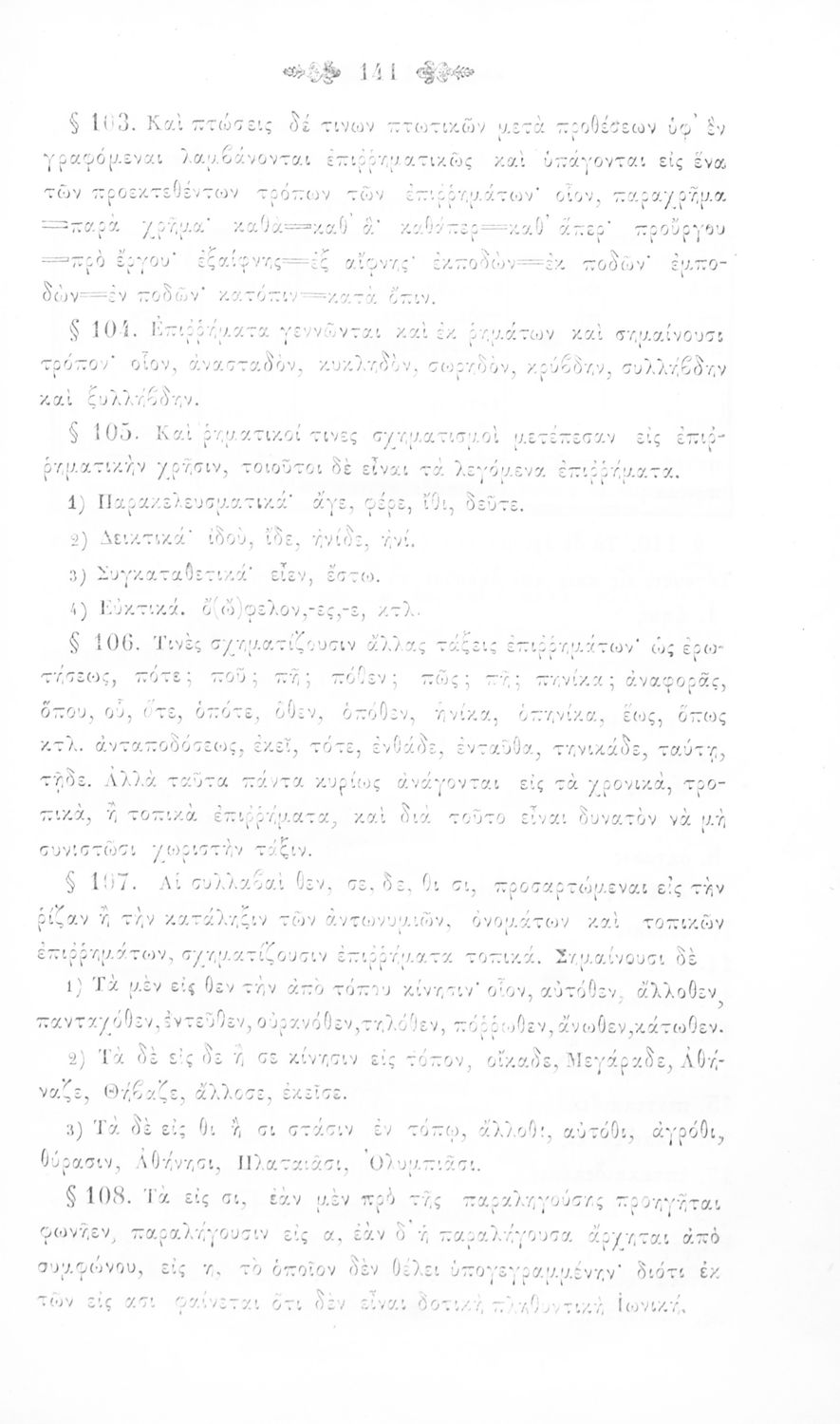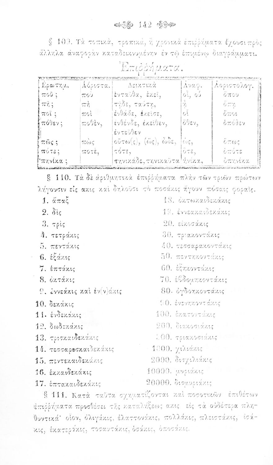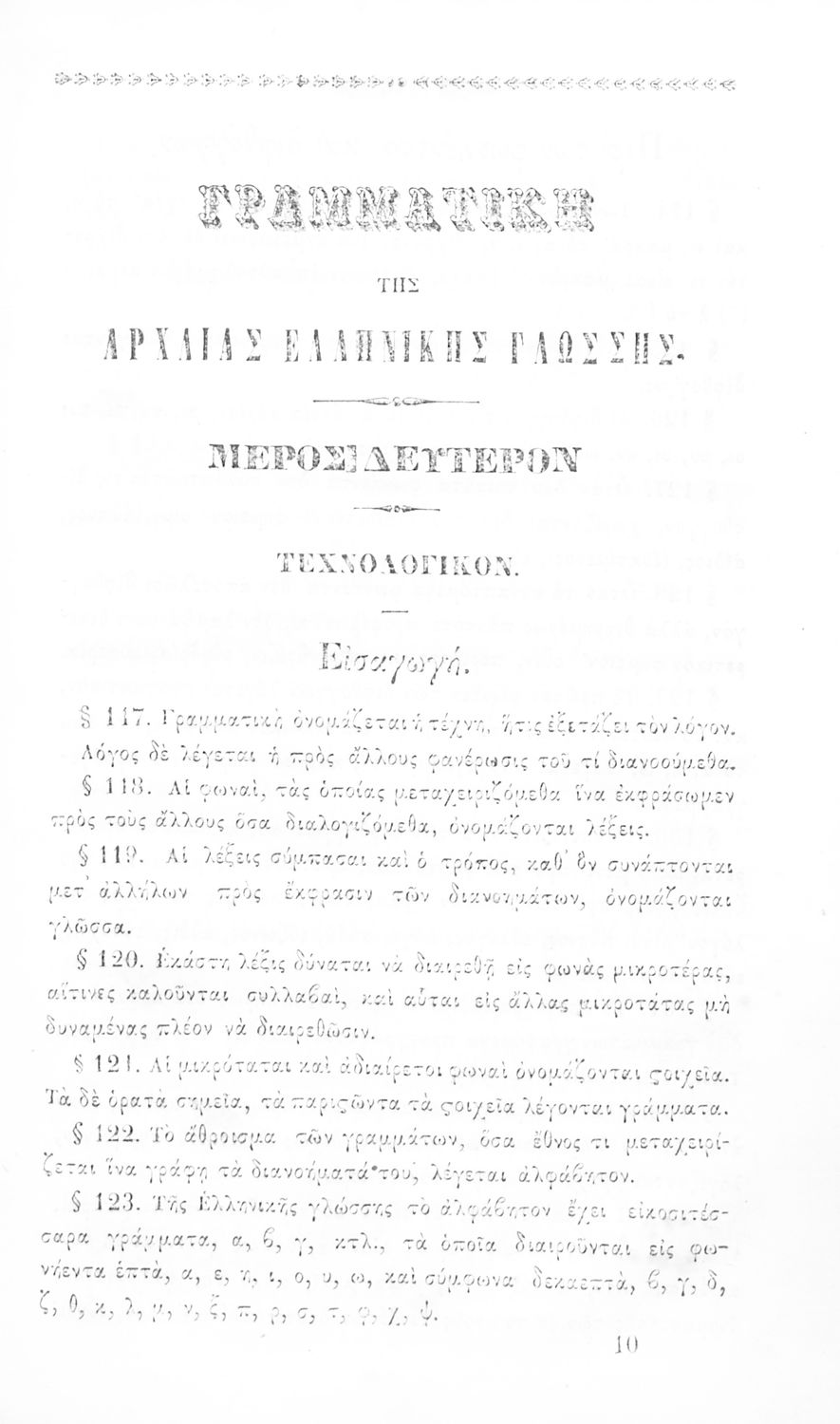 Σχολικό εγχειρίδιο Αρχαίων Ελληνικών που περιλαμβάνει τη γραμματική της αρχαίας ελληνικής και είναι χωρισμένο σε φθογγολογικό και τυπολογικό μέρος Περιέχει και κατάλογο ανωμάλων ρημάτων, ασκήσεις και σημειώσεις.