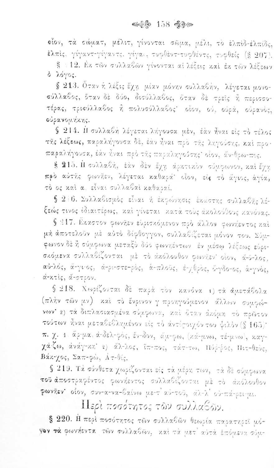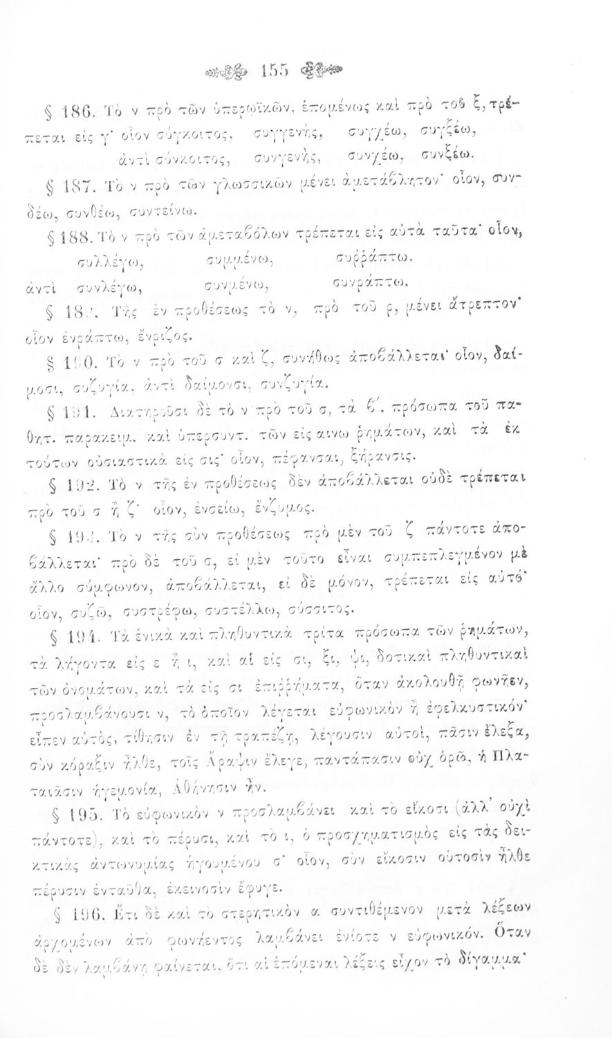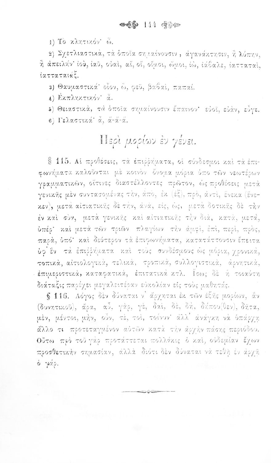 Σχολικό εγχειρίδιο Αρχαίων Ελληνικών που περιλαμβάνει τη γραμματική της αρχαίας ελληνικής και είναι χωρισμένο σε φθογγολογικό και τυπολογικό μέρος Περιέχει και κατάλογο ανωμάλων ρημάτων, ασκήσεις και σημειώσεις.