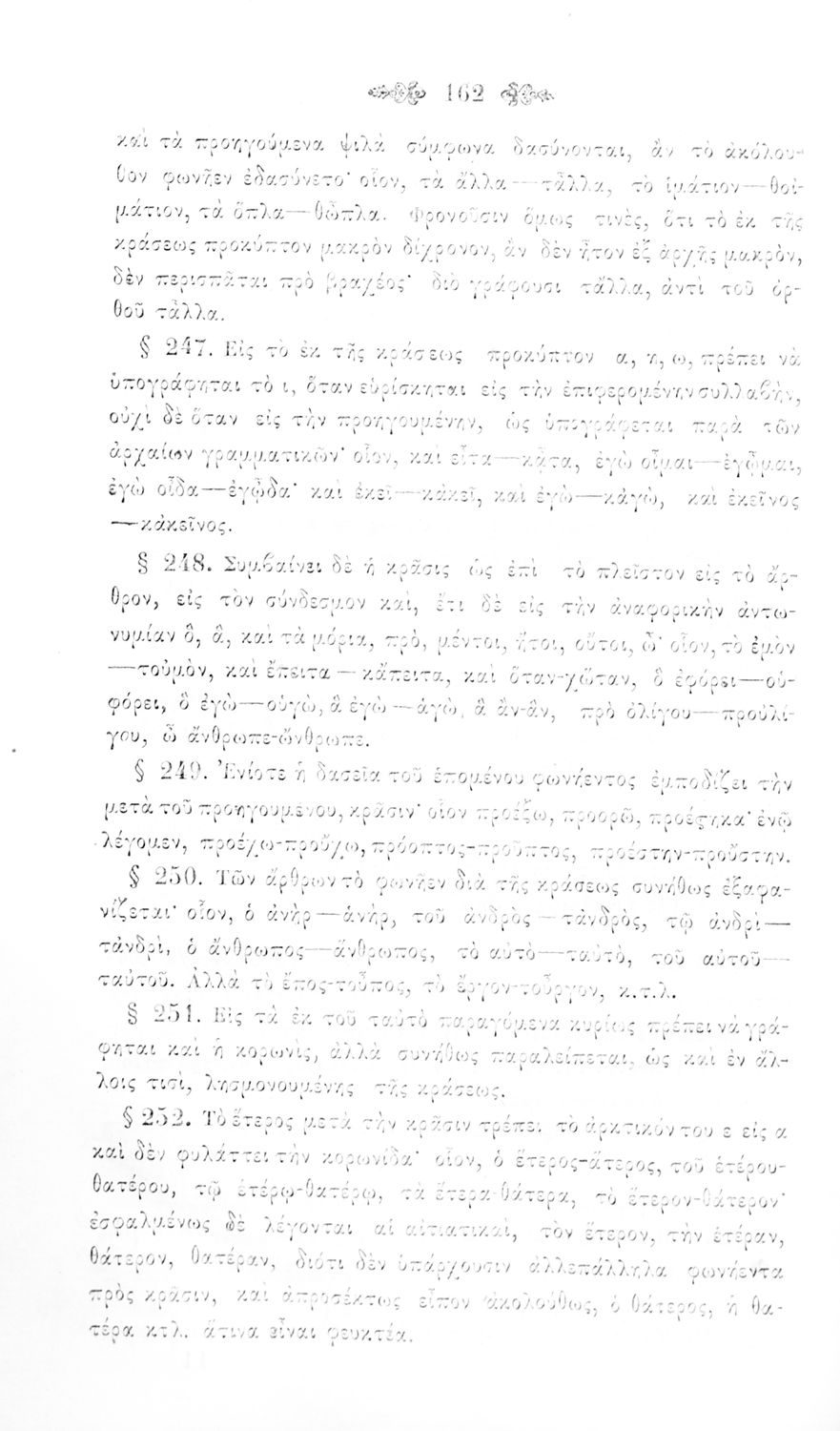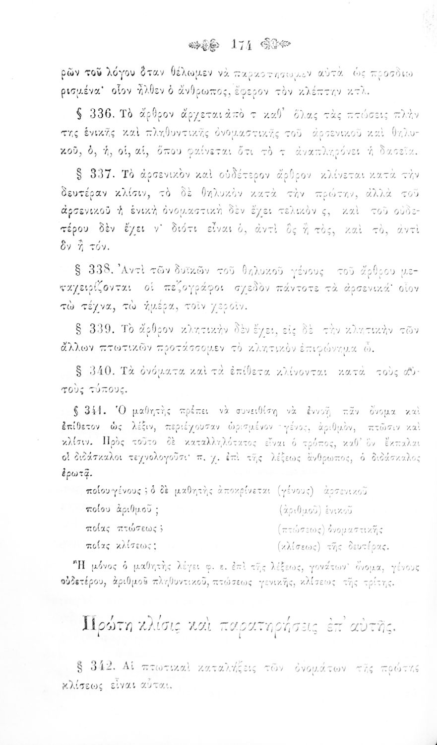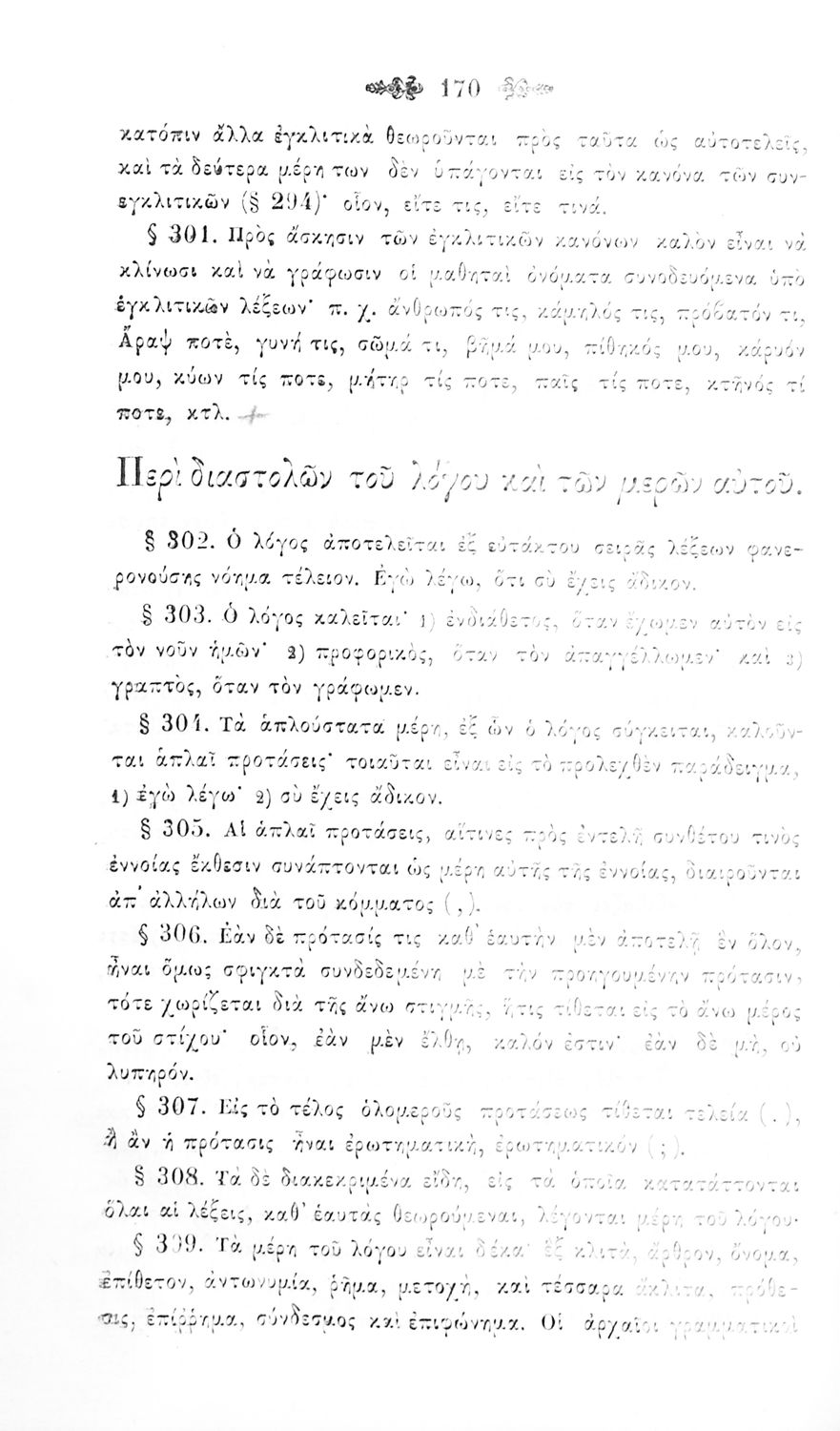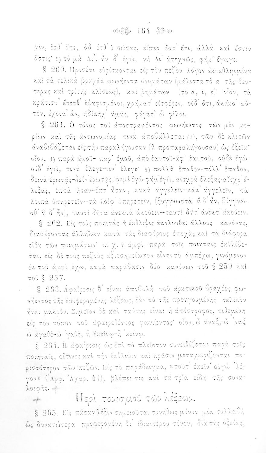 Σχολικό εγχειρίδιο Αρχαίων Ελληνικών για τα Ελληνικά Σχολεία, Παρθεναγωγεία και Γυμνάσια που περιέχει τους κανόνες γραμματικής και είναι χωρισμένο σε φθογγολογικό, τυπολογικό και ετυμολογικό μέρος.