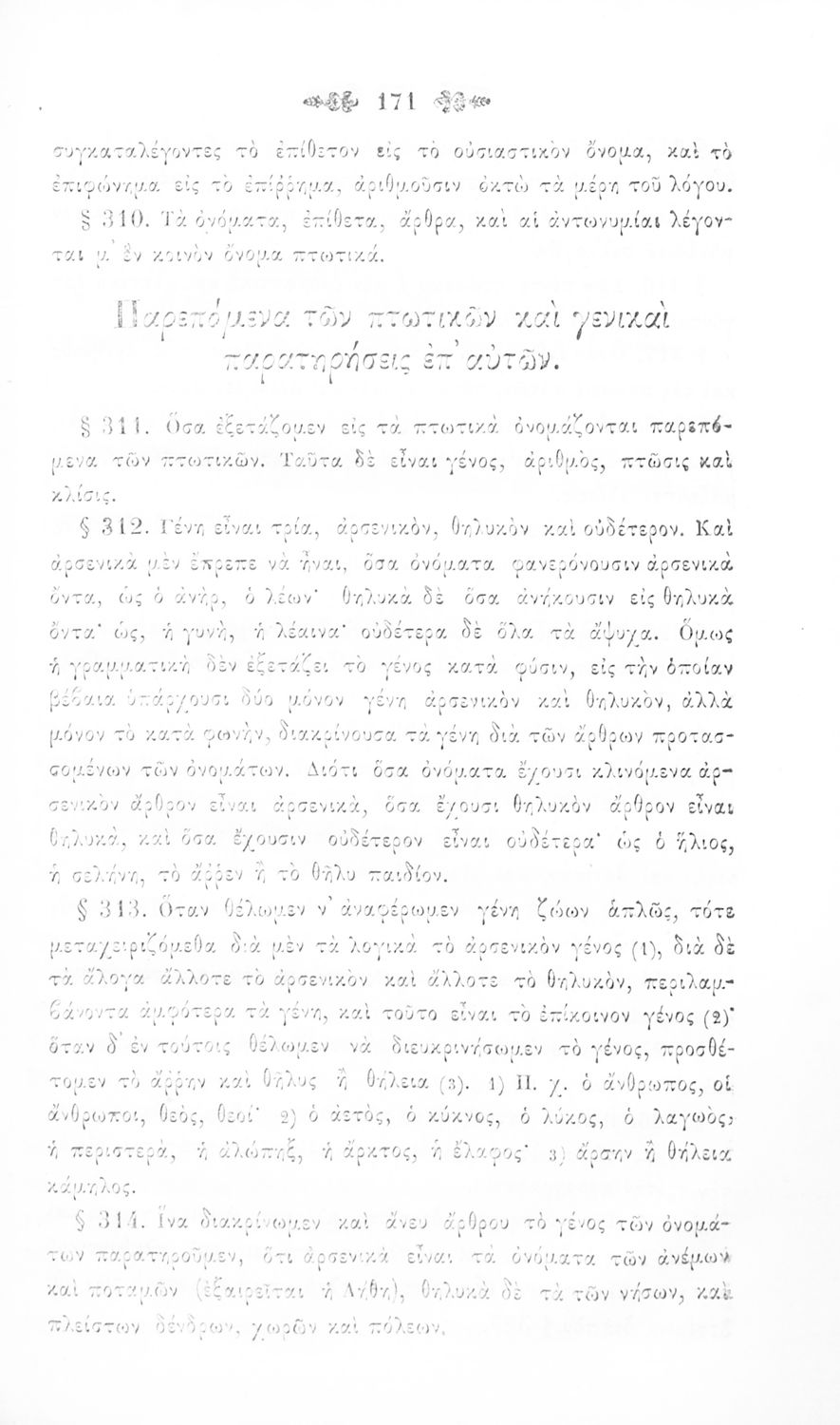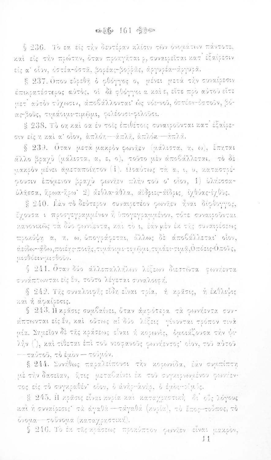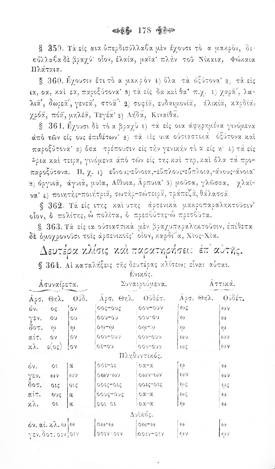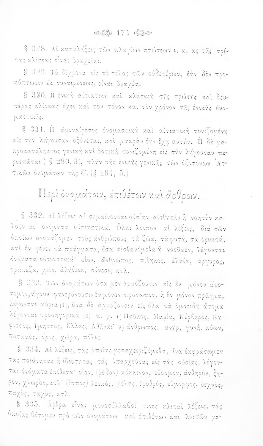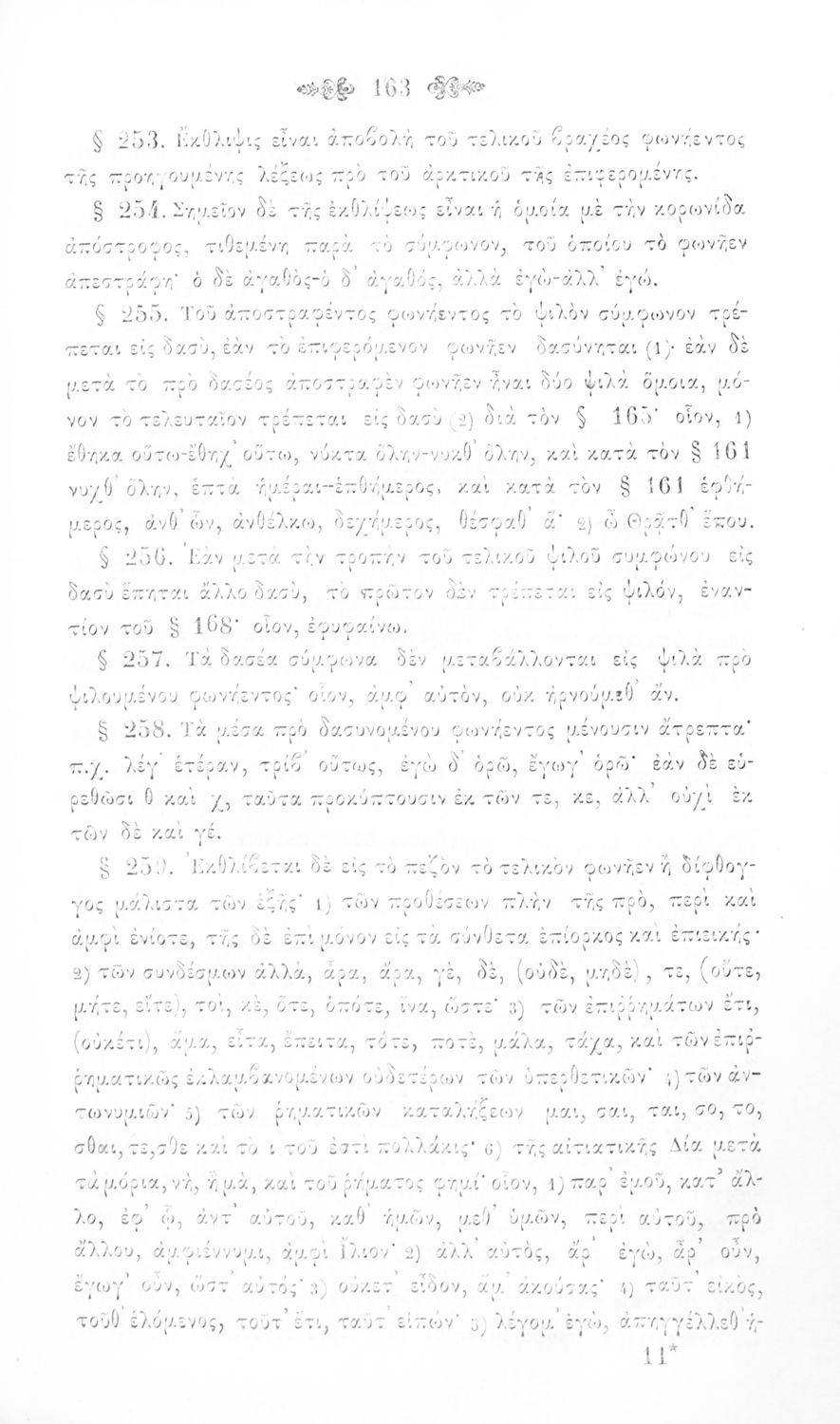 Σχολικό εγχειρίδιο Αρχαίων Ελληνικών για τα Ελληνικά Σχολεία, Παρθεναγωγεία και Γυμνάσια που περιέχει τους κανόνες γραμματικής και είναι χωρισμένο σε φθογγολογικό, τυπολογικό και ετυμολογικό μέρος.