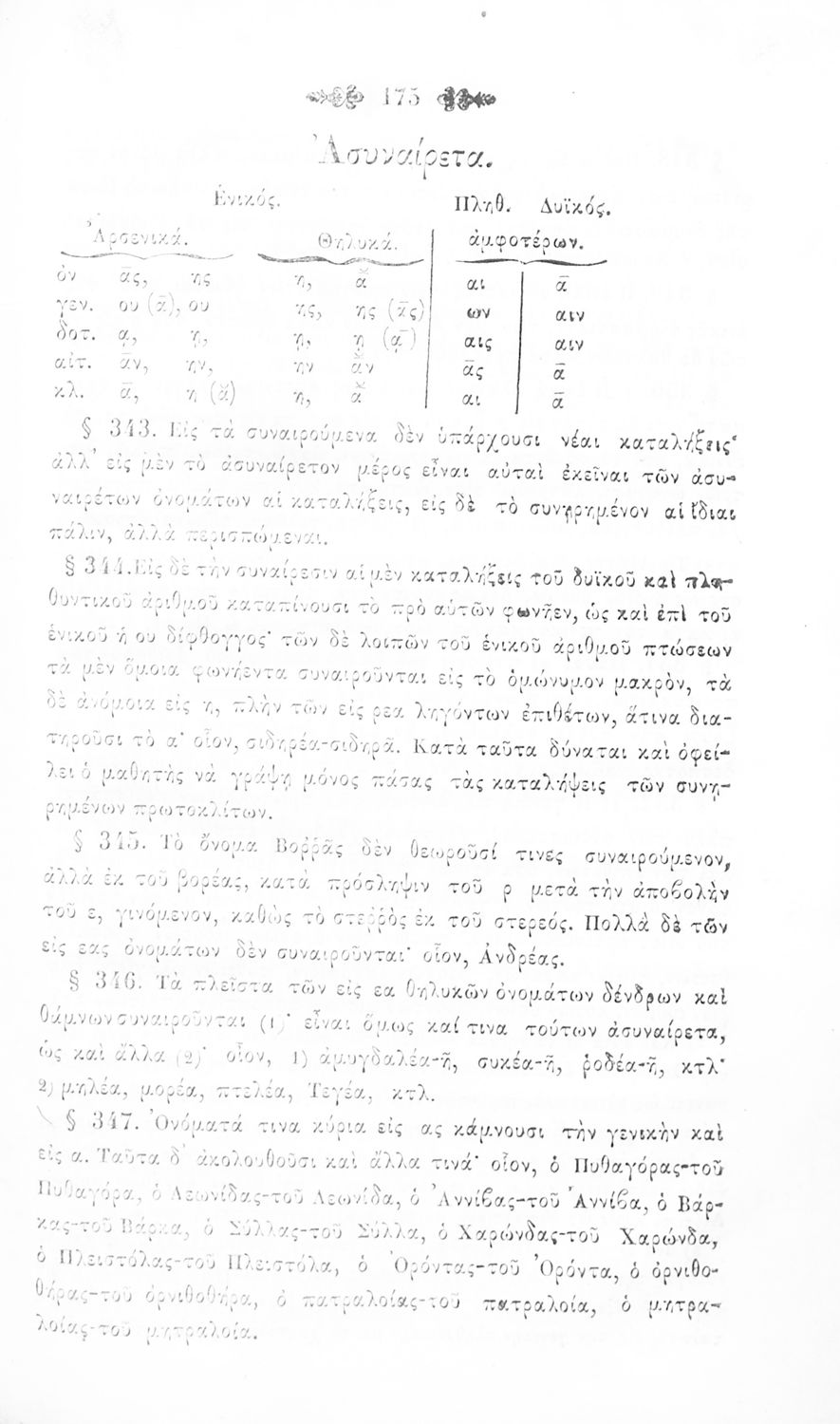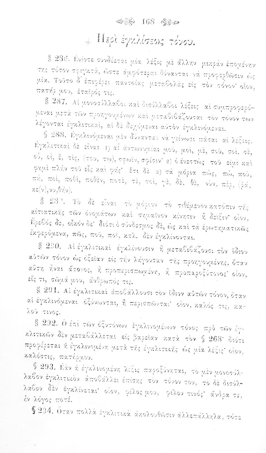 Σχολικό εγχειρίδιο Αρχαίων Ελληνικών για τα Ελληνικά Σχολεία και Παρθεναγωγεία που περιέχει τους κανόνες γραμματικής και είναι χωρισμένο σε φθογγολογικό, τυπολογικό και ετυμολογικό μέρος.