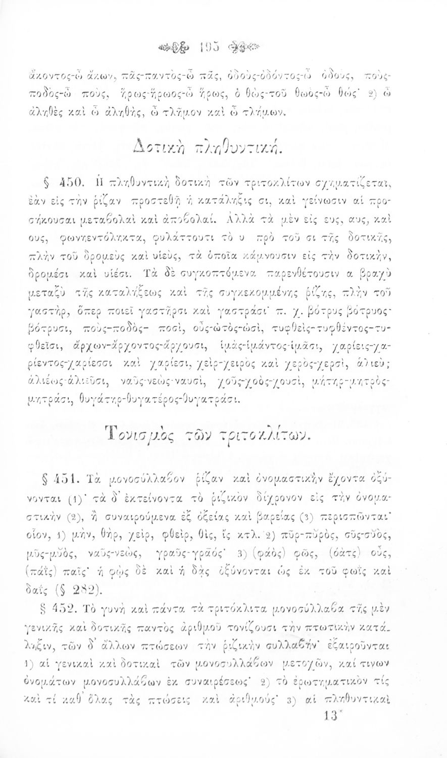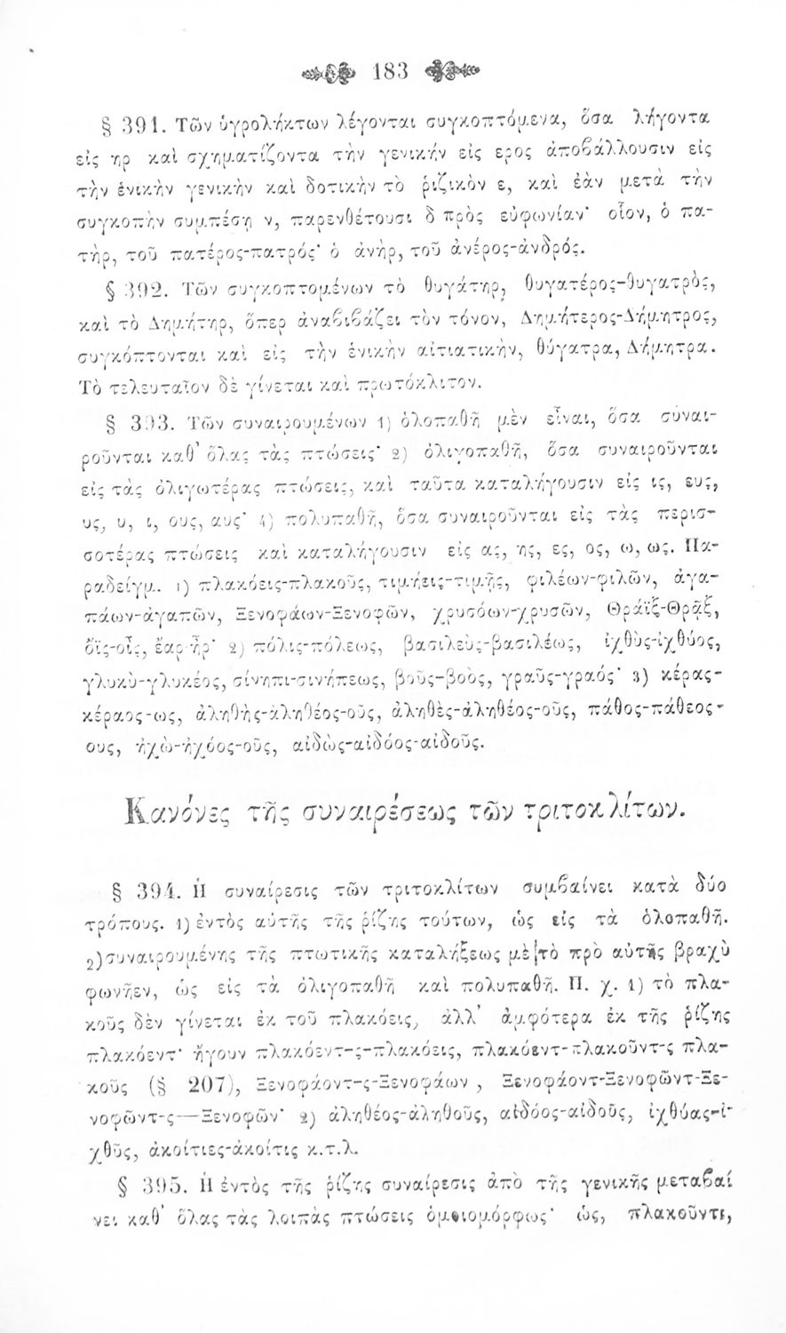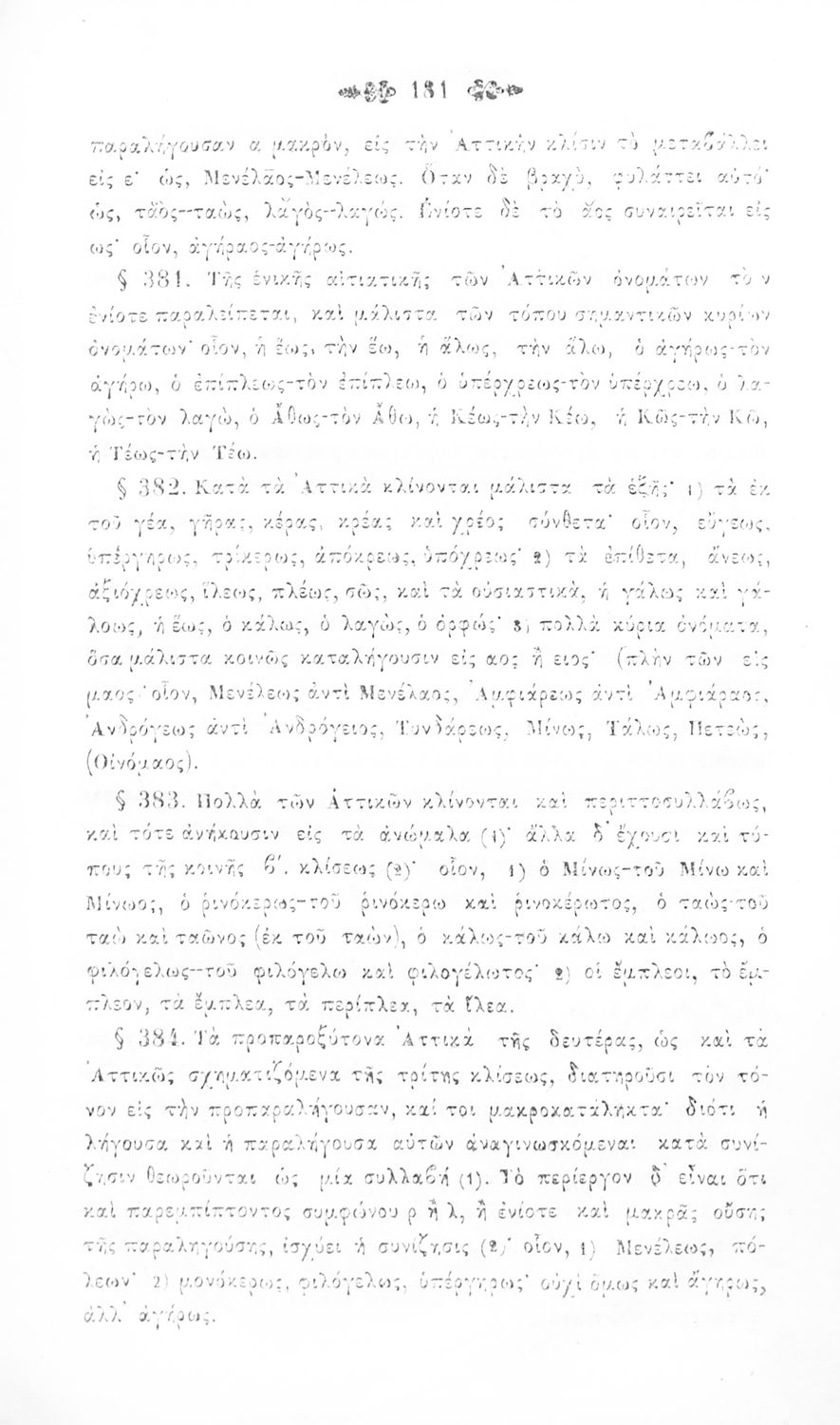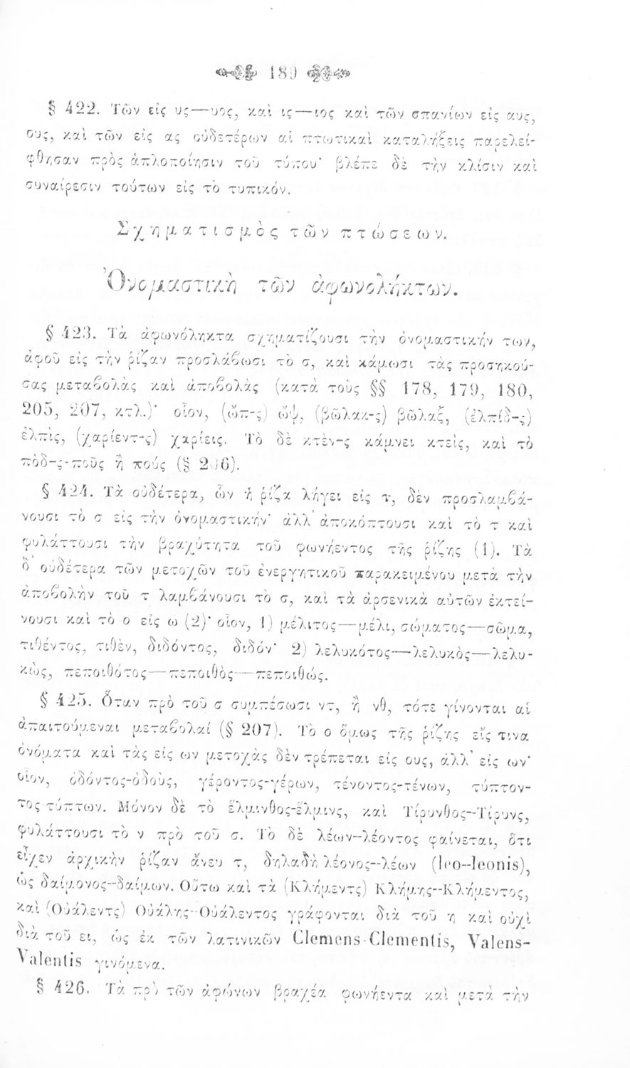 Σχολικό εγχειρίδιο Αρχαίων Ελληνικών για τα Ελληνικά Σχολεία, Παρθεναγωγεία και Γυμνάσια που περιέχει τους κανόνες γραμματικής και είναι χωρισμένο σε φθογγολογικό, τυπολογικό και ετυμολογικό μέρος.
