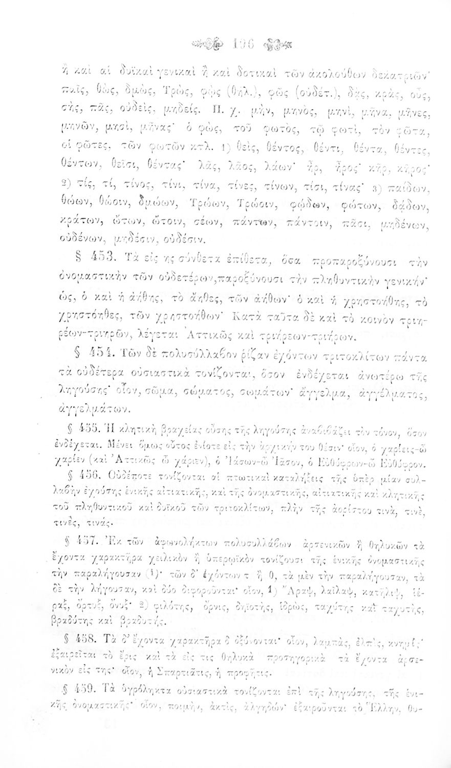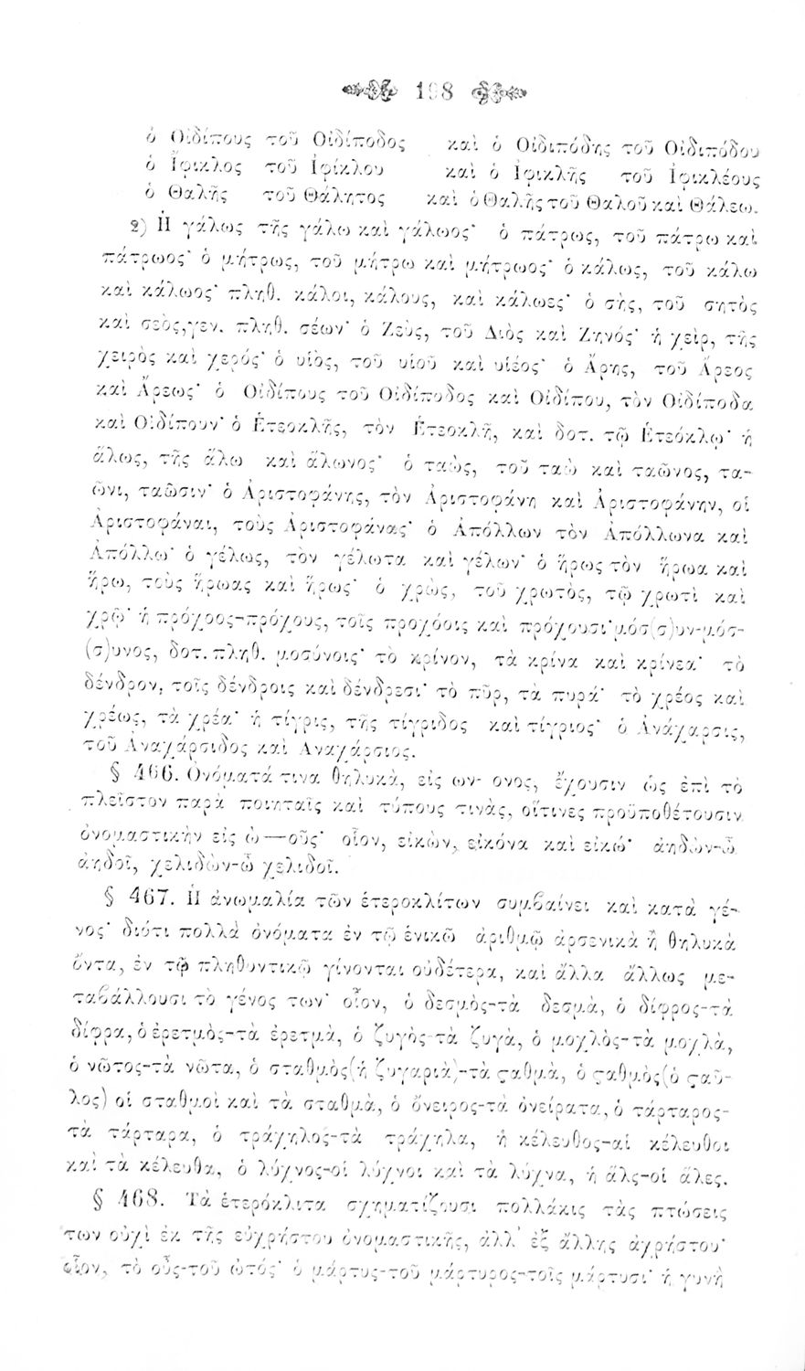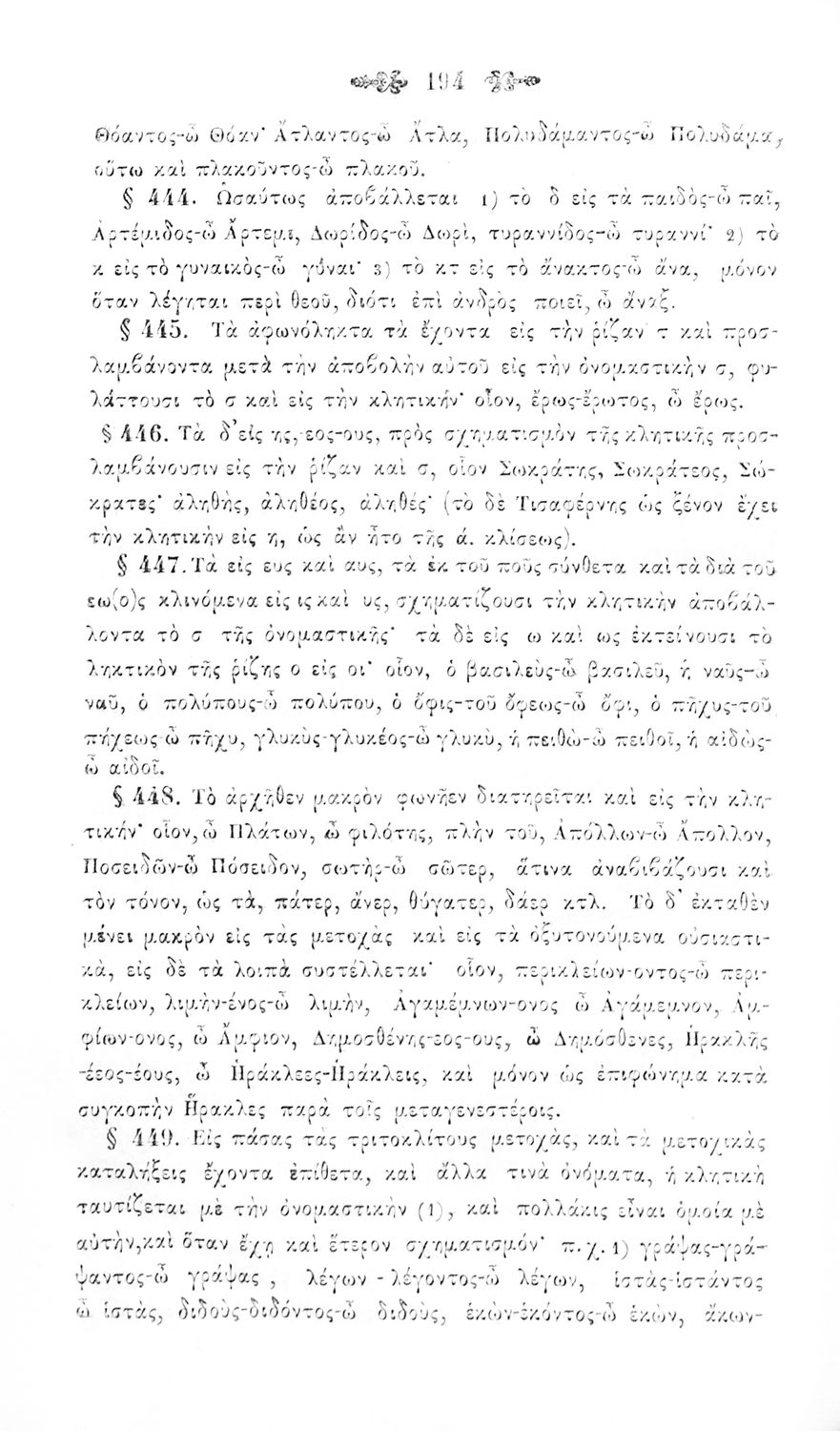 Σχολικό εγχειρίδιο Αρχαίων Ελληνικών για τα Ελληνικά Σχολεία και Παρθεναγωγεία που περιέχει τους κανόνες γραμματικής και είναι χωρισμένο σε φθογγολογικό, τυπολογικό και ετυμολογικό μέρος.
