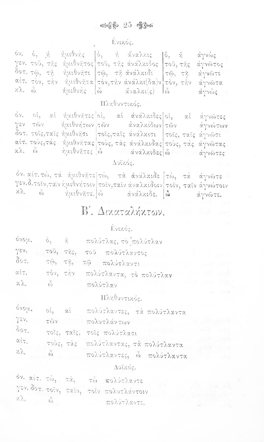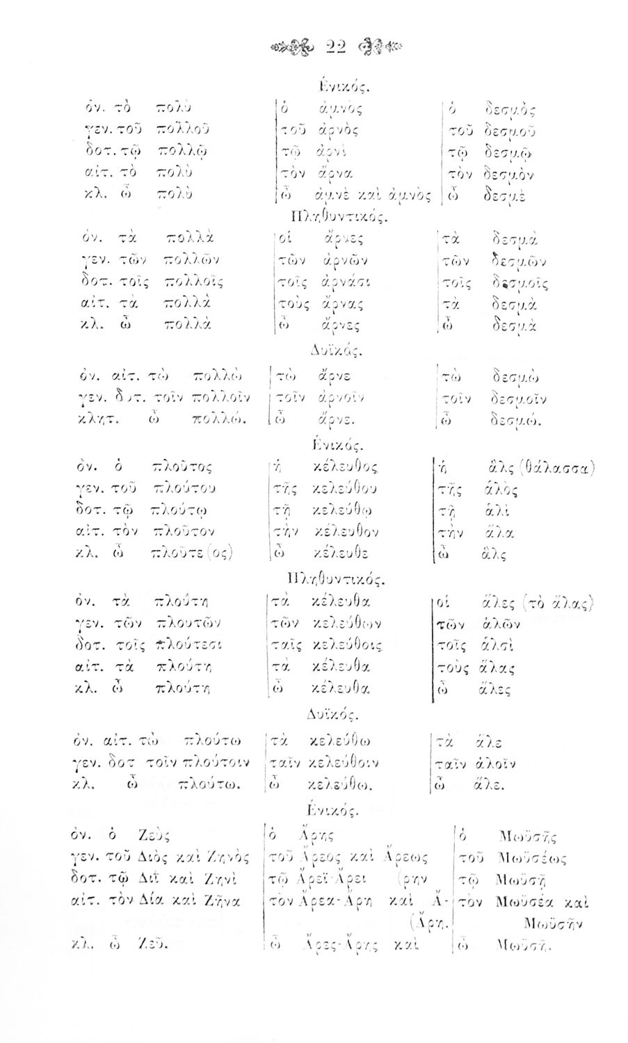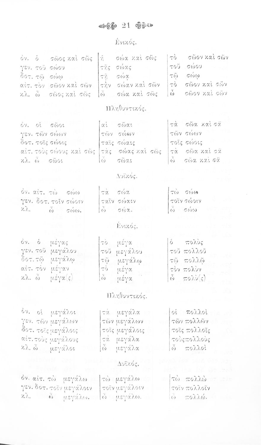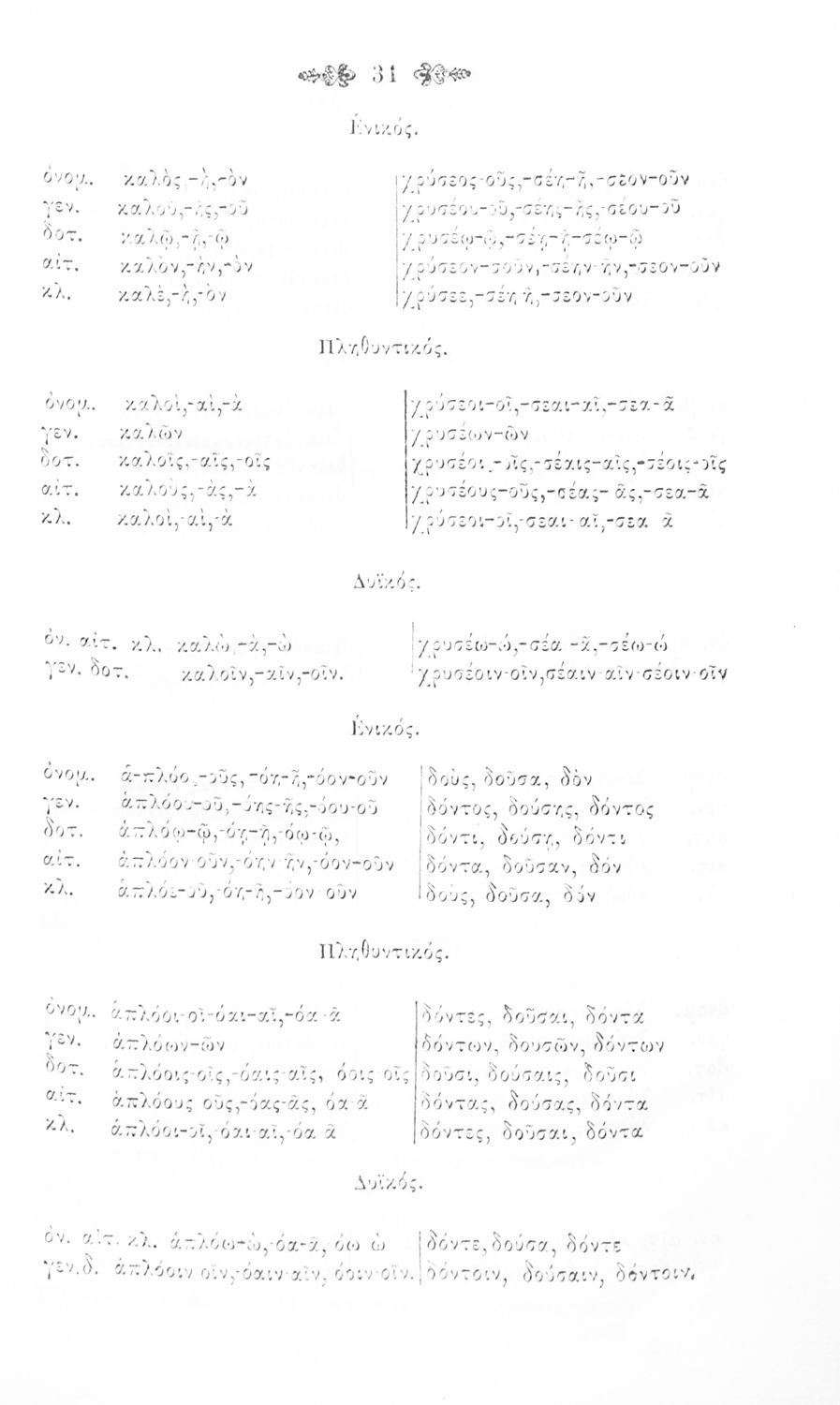 Σχολικό εγχειρίδιο Αρχαίων Ελληνικών για τα Ελληνικά Σχολεία και Παρθεναγωγεία που περιέχει τους κανόνες γραμματικής και είναι χωρισμένο σε φθογγολογικό, τυπολογικό και ετυμολογικό μέρος.