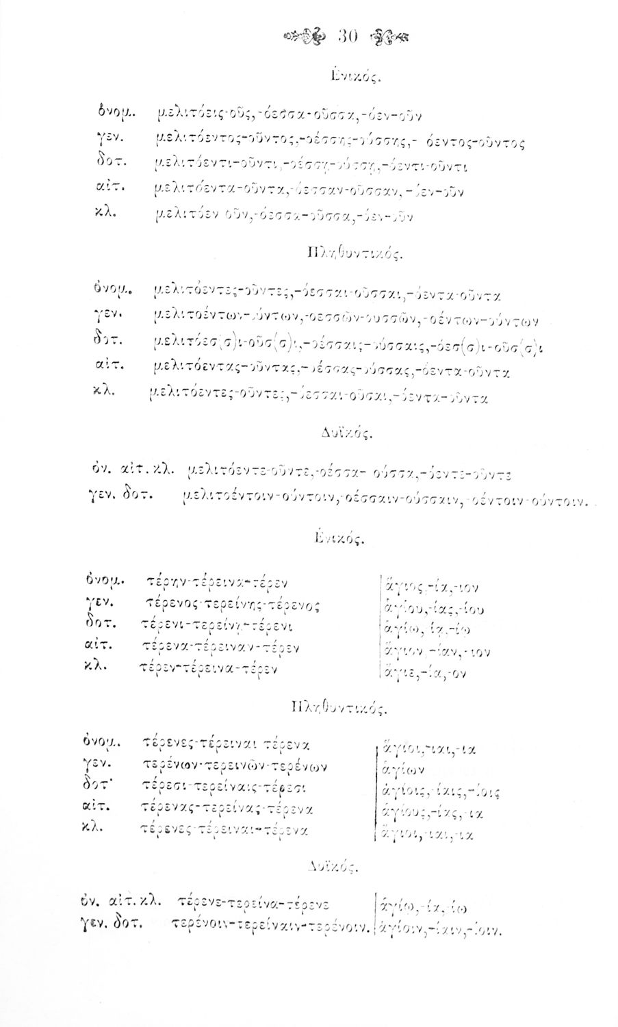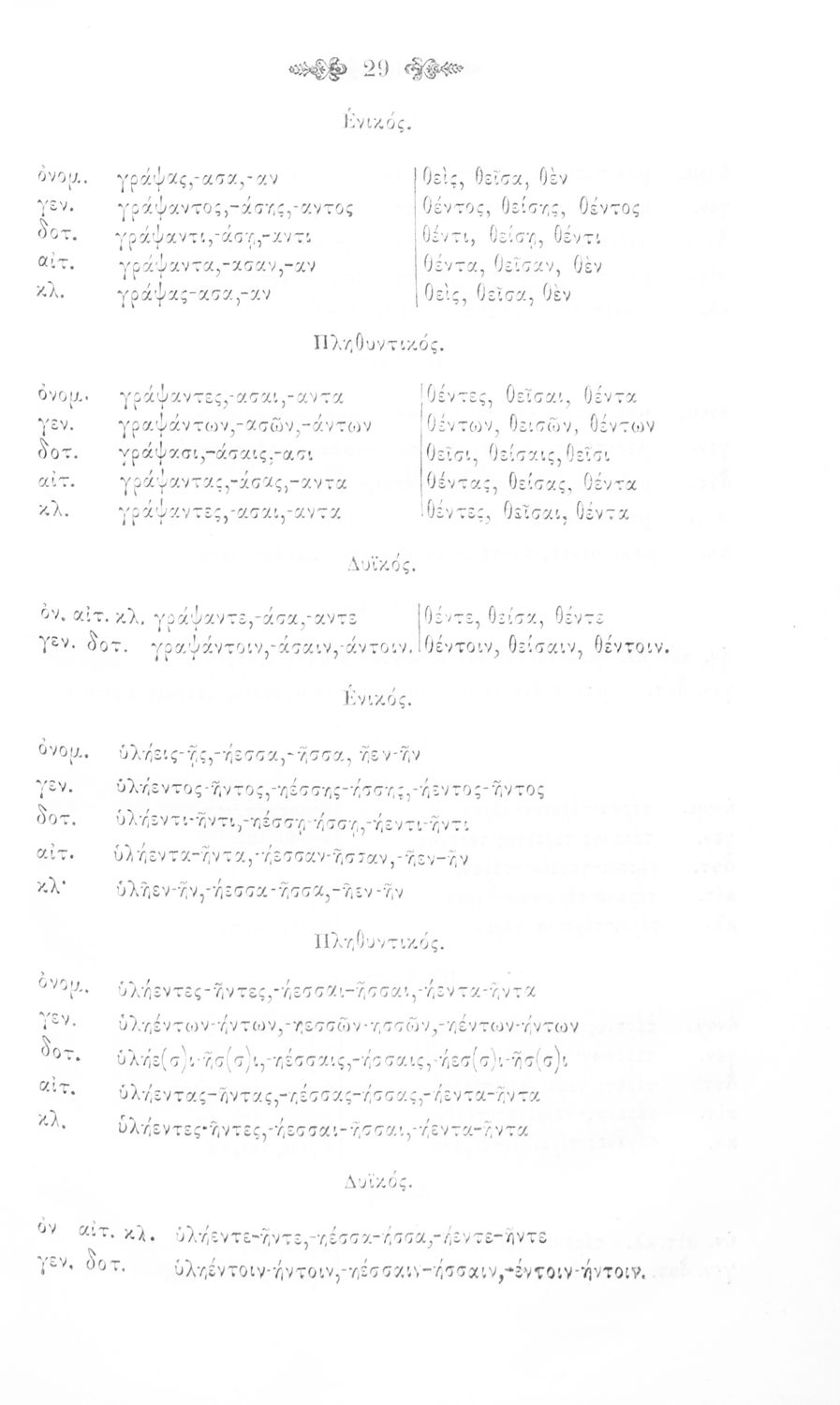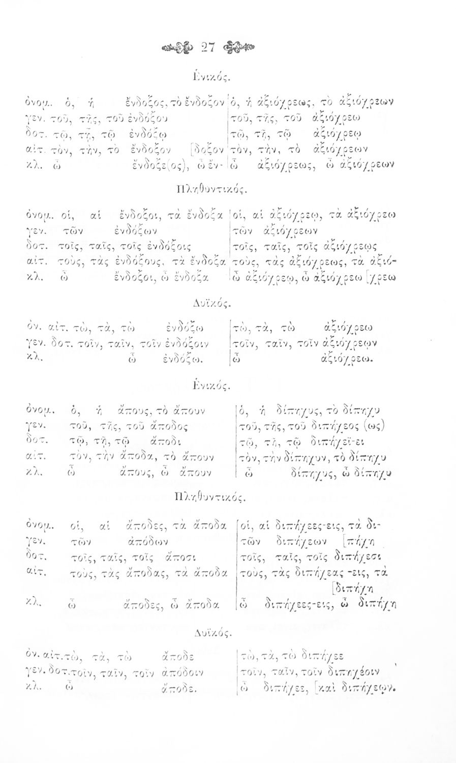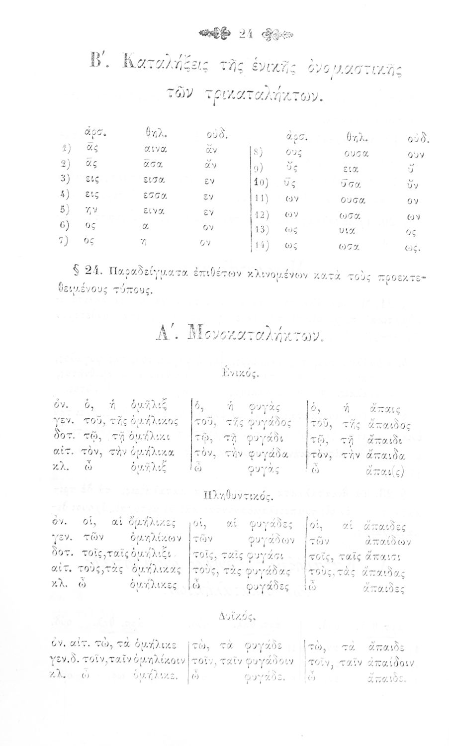 Σχολικό εγχειρίδιο Αρχαίων Ελληνικών για τα Ελληνικά Σχολεία και Παρθεναγωγεία που περιέχει τους κανόνες γραμματικής και είναι χωρισμένο σε φθογγολογικό, τυπολογικό και ετυμολογικό μέρος.