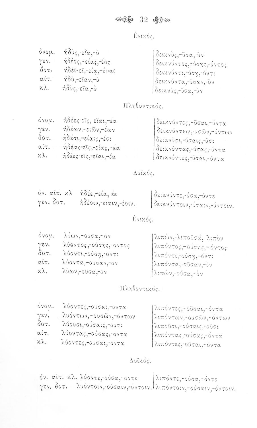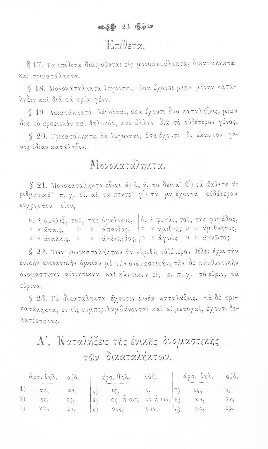 Σχολικό εγχειρίδιο Αρχαίων Ελληνικών για τα Ελληνικά Σχολεία, Παρθεναγωγεία και Γυμνάσια που περιέχει τους κανόνες γραμματικής και είναι χωρισμένο σε φθογγολογικό, τυπολογικό και ετυμολογικό μέρος.