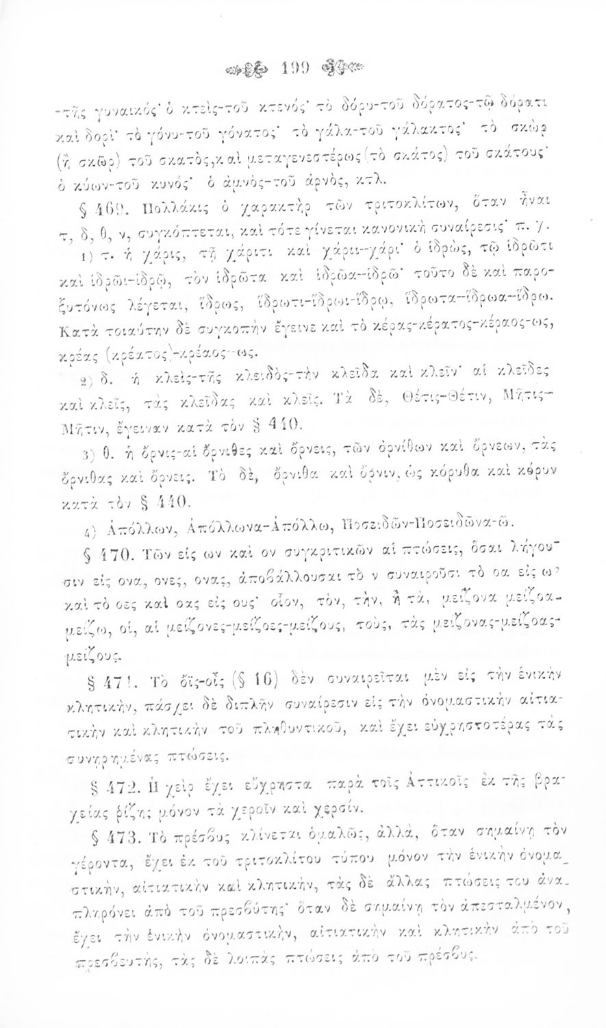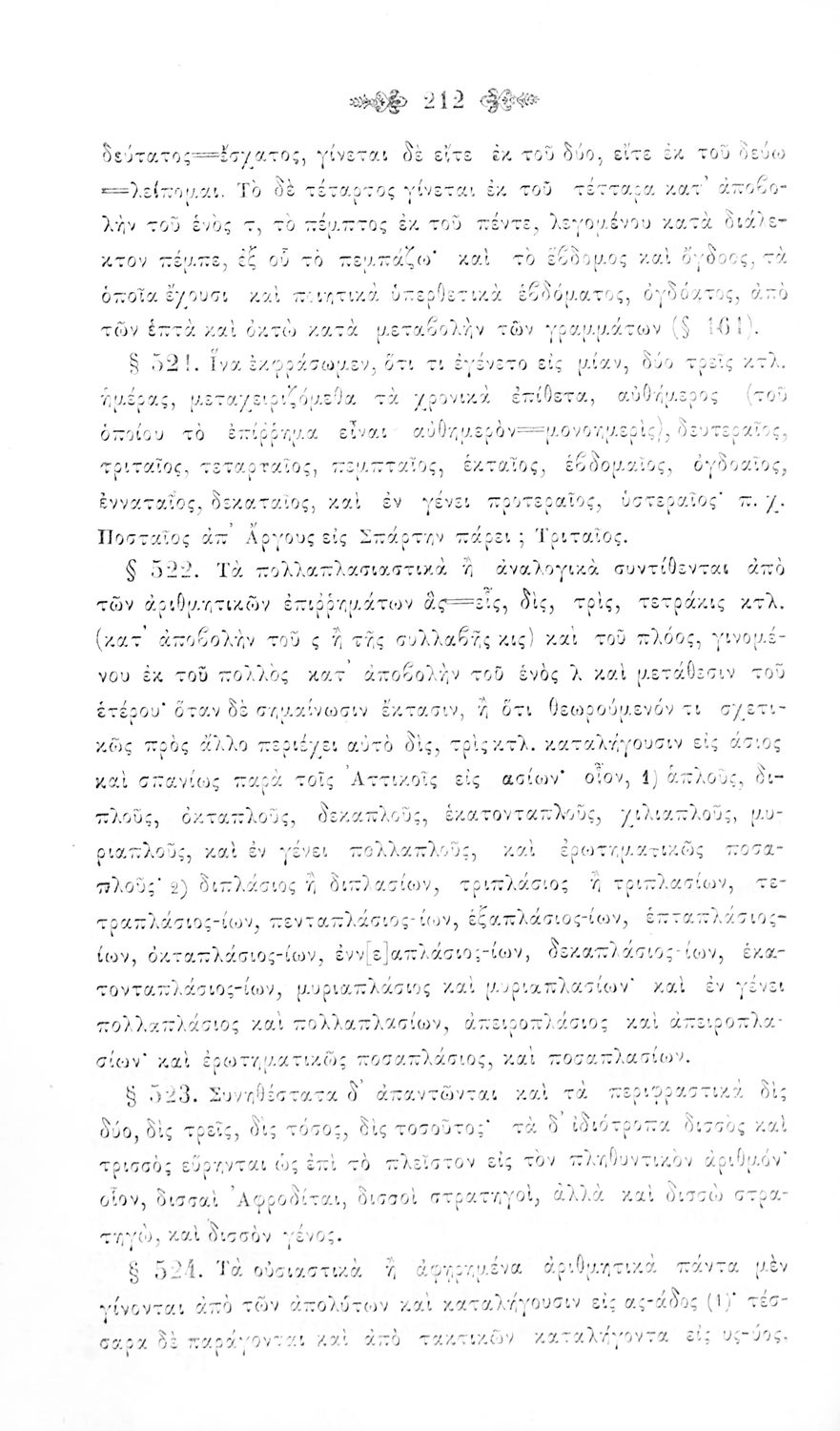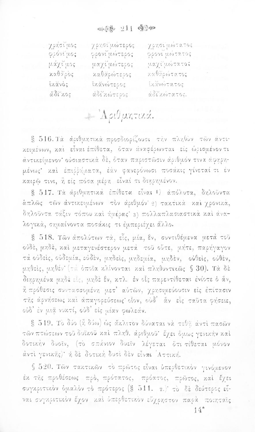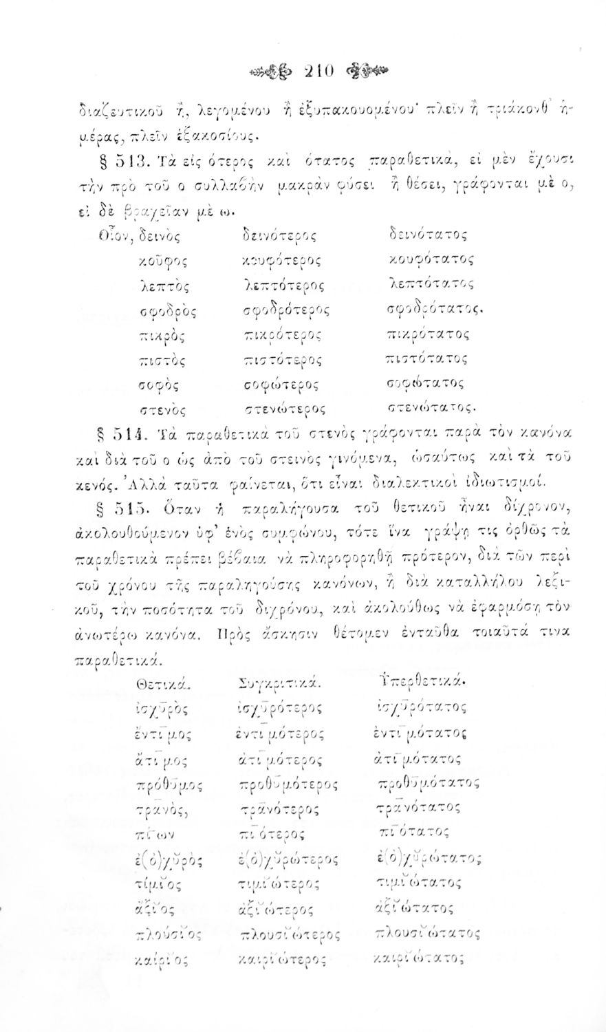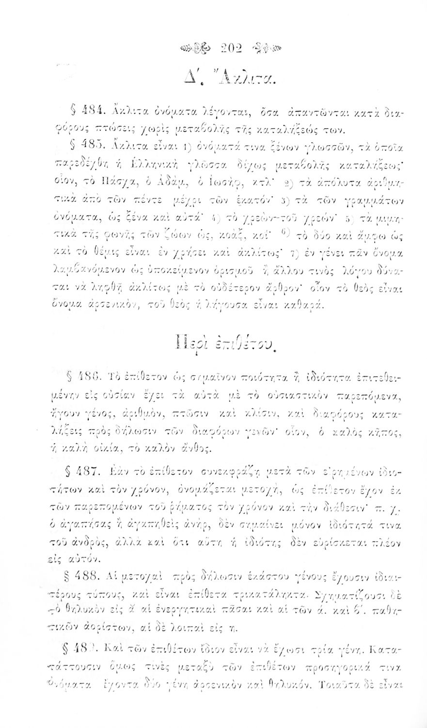 Σχολικό εγχειρίδιο Αρχαίων Ελληνικών για τα Ελληνικά Σχολεία, Παρθεναγωγεία και Γυμνάσια που περιέχει τους κανόνες γραμματικής και είναι χωρισμένο σε φθογγολογικό, τυπολογικό και ετυμολογικό μέρος.
