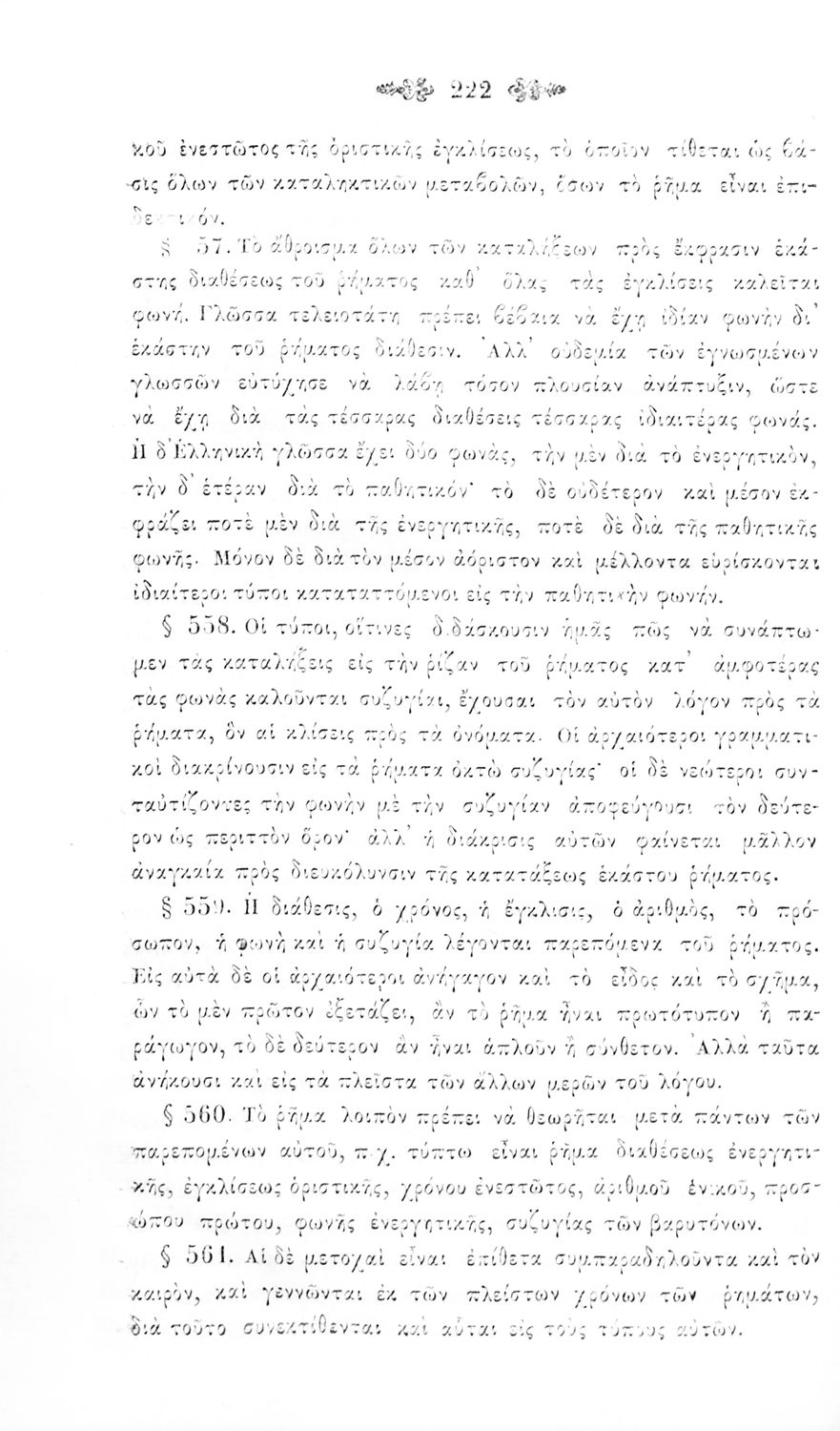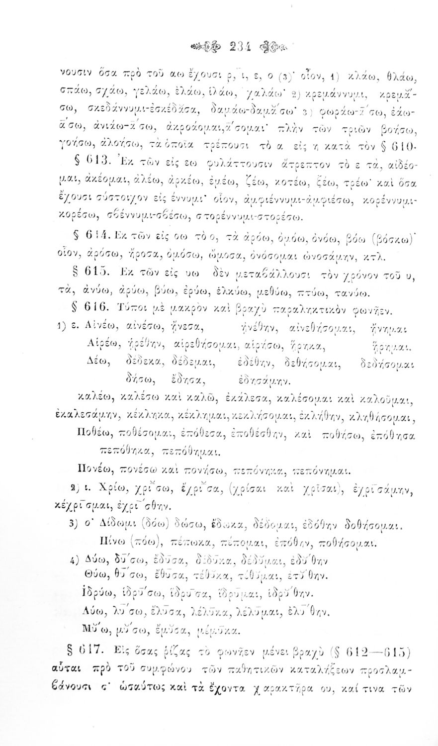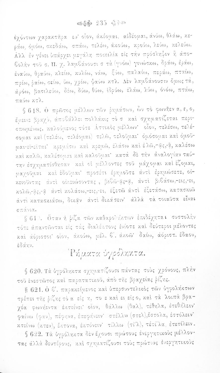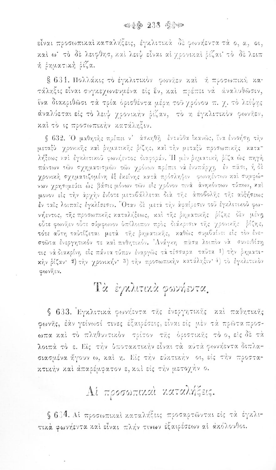 Σχολικό εγχειρίδιο Αρχαίων Ελληνικών για τα Ελληνικά Σχολεία, Παρθεναγωγεία και Γυμνάσια που περιέχει τους κανόνες γραμματικής και είναι χωρισμένο σε φθογγολογικό, τυπολογικό και ετυμολογικό μέρος.