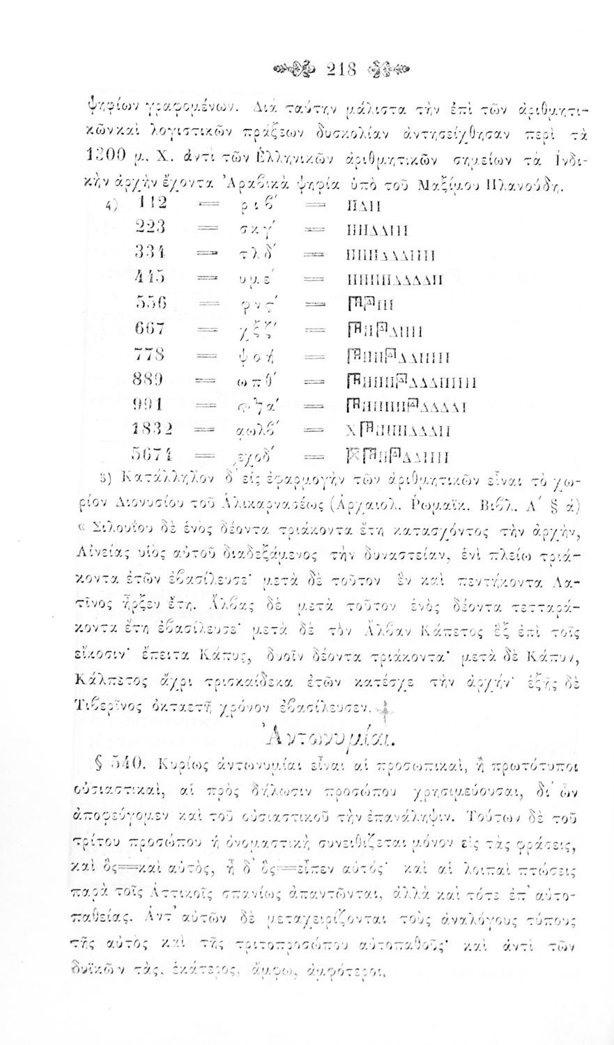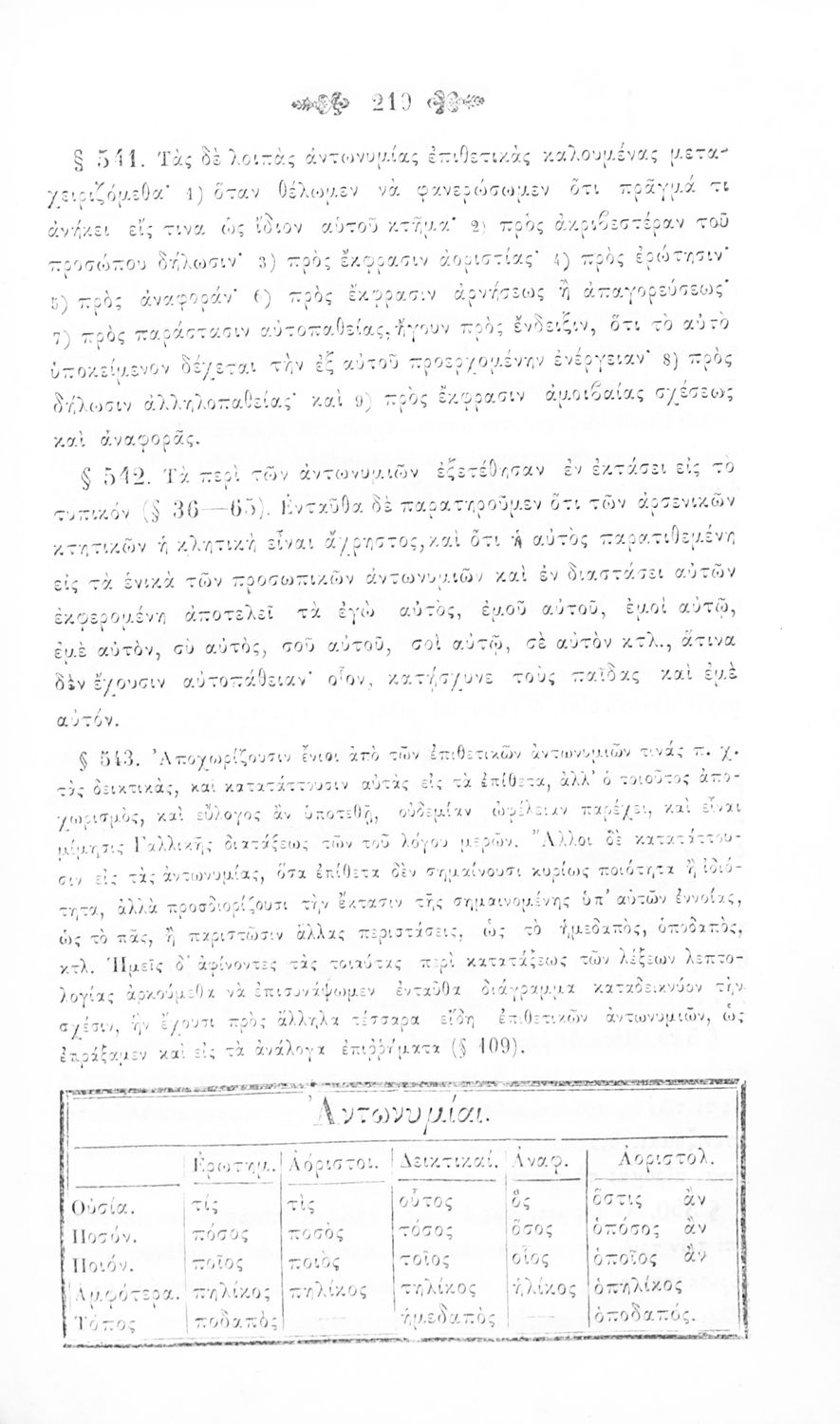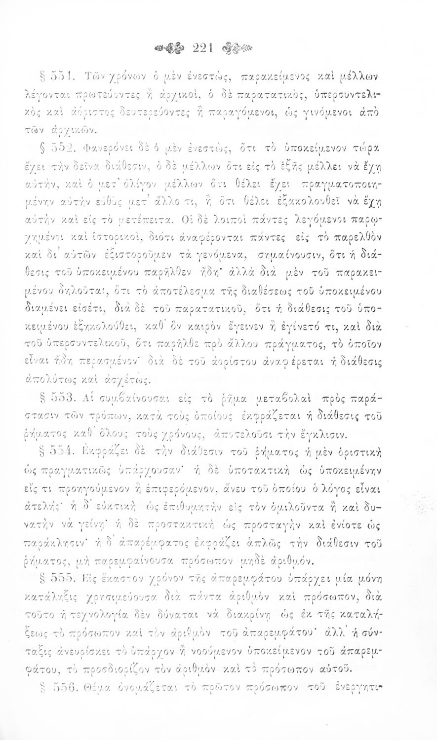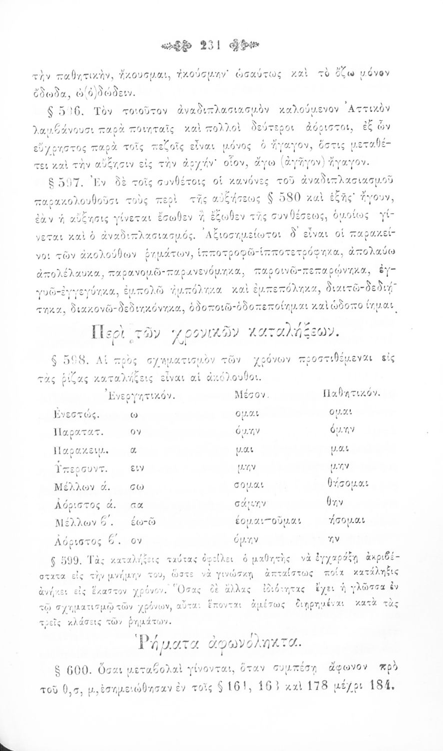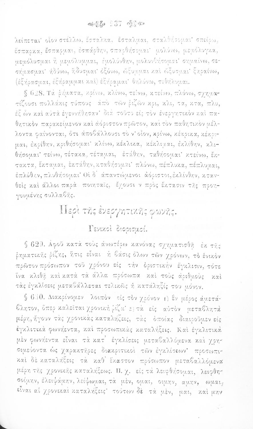 Σχολικό εγχειρίδιο Αρχαίων Ελληνικών για τα Ελληνικά Σχολεία, Παρθεναγωγεία και Γυμνάσια που περιέχει τους κανόνες γραμματικής και είναι χωρισμένο σε φθογγολογικό, τυπολογικό και ετυμολογικό μέρος.
