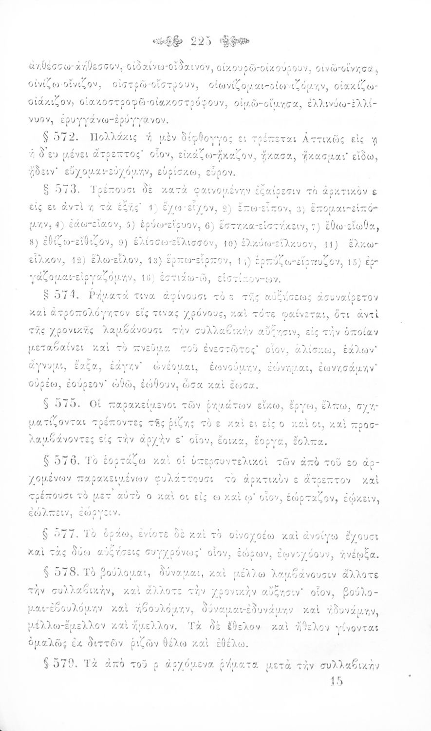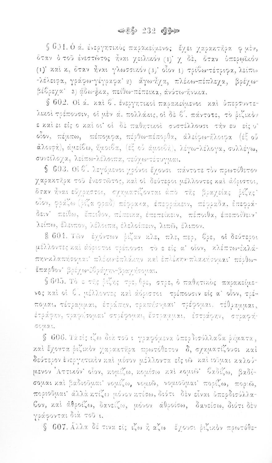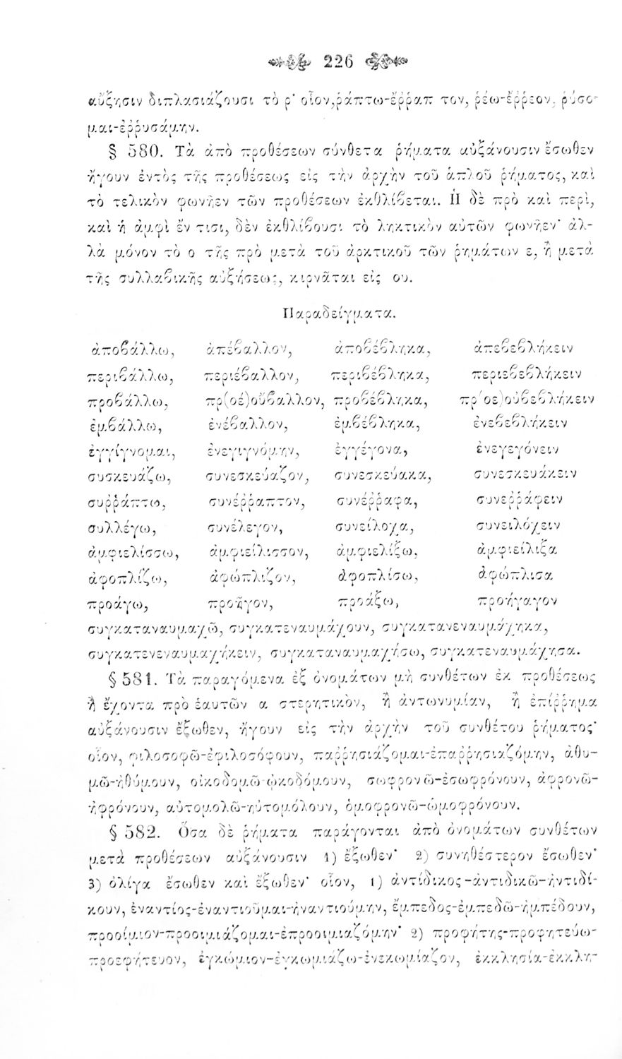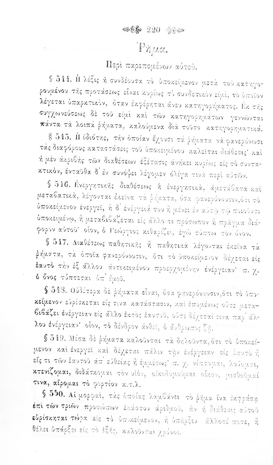 Σχολικό εγχειρίδιο Αρχαίων Ελληνικών για τα Ελληνικά Σχολεία και Παρθεναγωγεία που περιέχει τους κανόνες γραμματικής και είναι χωρισμένο σε φθογγολογικό, τυπολογικό και ετυμολογικό μέρος.