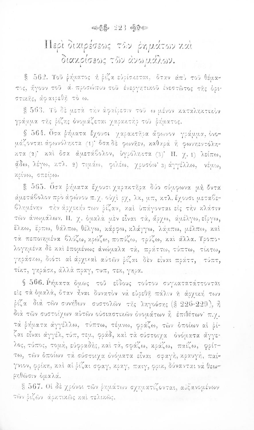 Σχολικό εγχειρίδιο Αρχαίων Ελληνικών Γυμνασίου που περιλαμβάνει τη γραμματική της αρχαίας ελληνικής και είναι χωρισμένο σε φθογγολογικό και τυπολογικό μέρος Περιέχει και κατάλογο ανωμάλων ρημάτων.