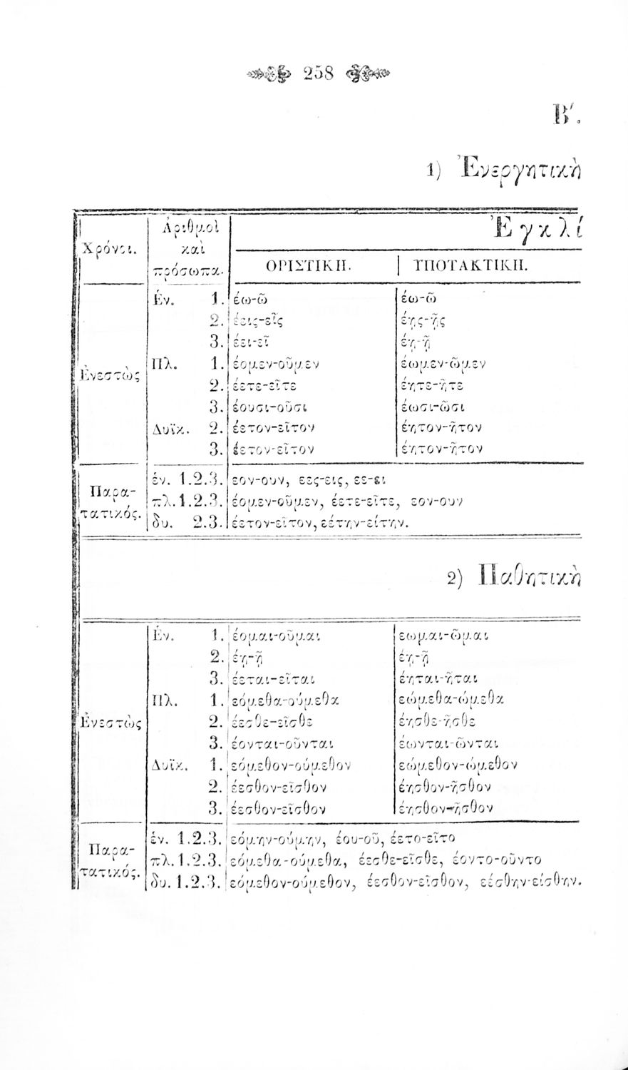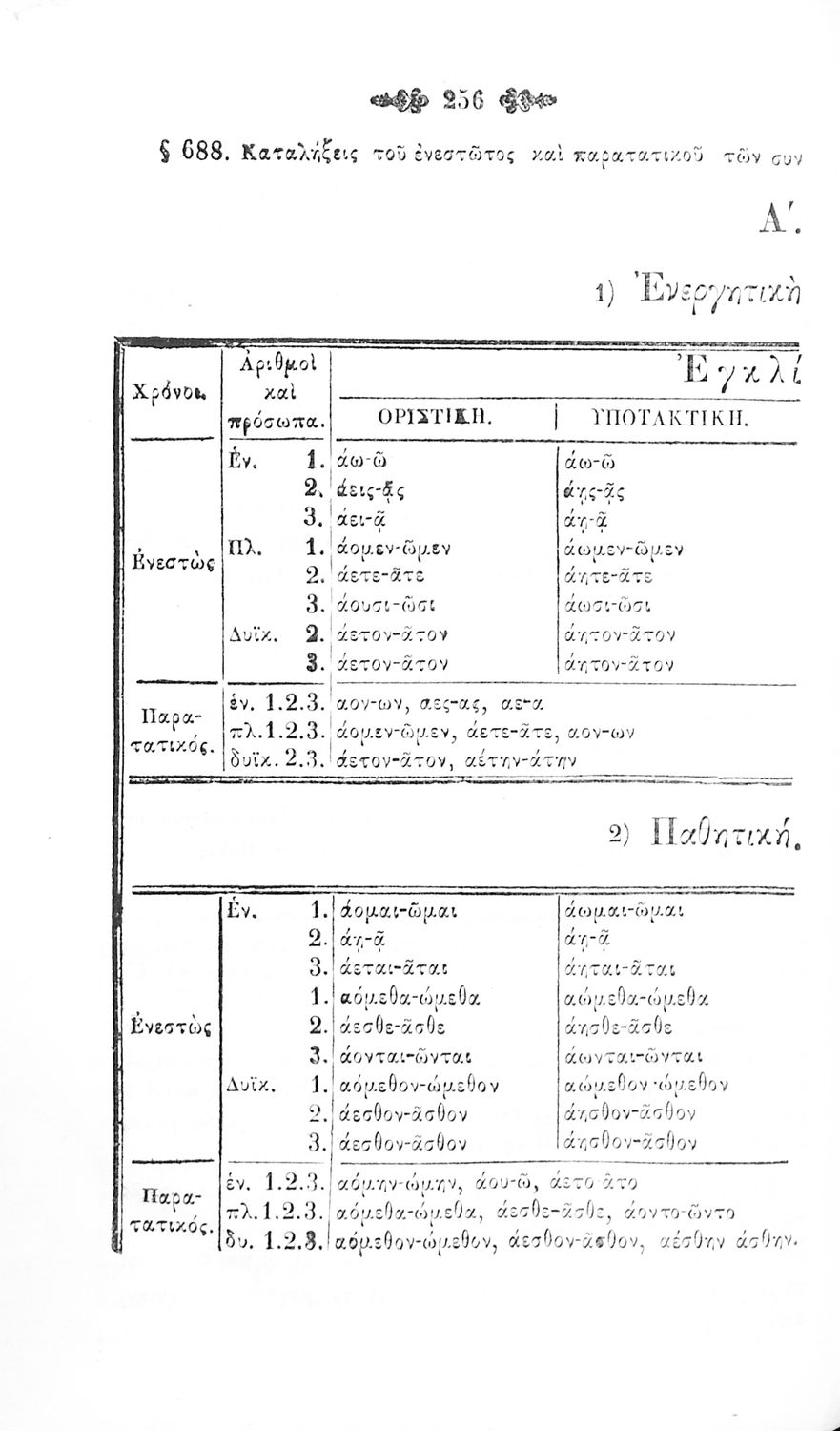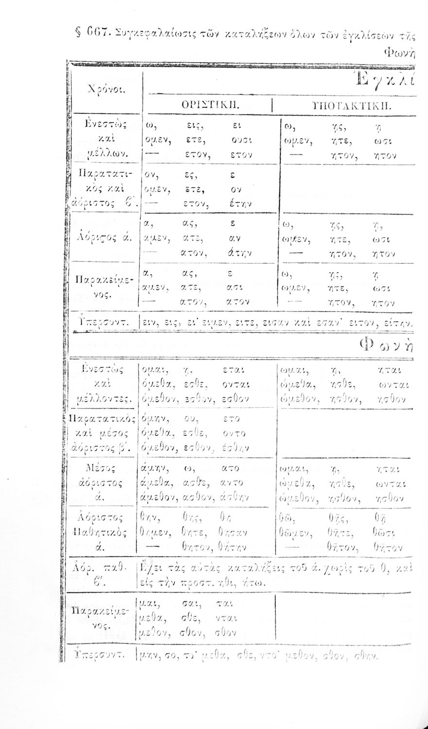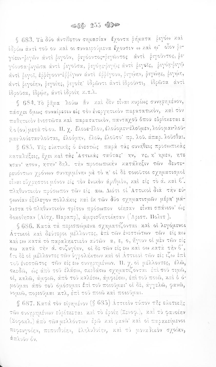 Σχολικό εγχειρίδιο Αρχαίων Ελληνικών για τα Ελληνικά Σχολεία, Παρθεναγωγεία και Γυμνάσια που περιέχει τους κανόνες γραμματικής και είναι χωρισμένο σε φθογγολογικό, τυπολογικό και ετυμολογικό μέρος.