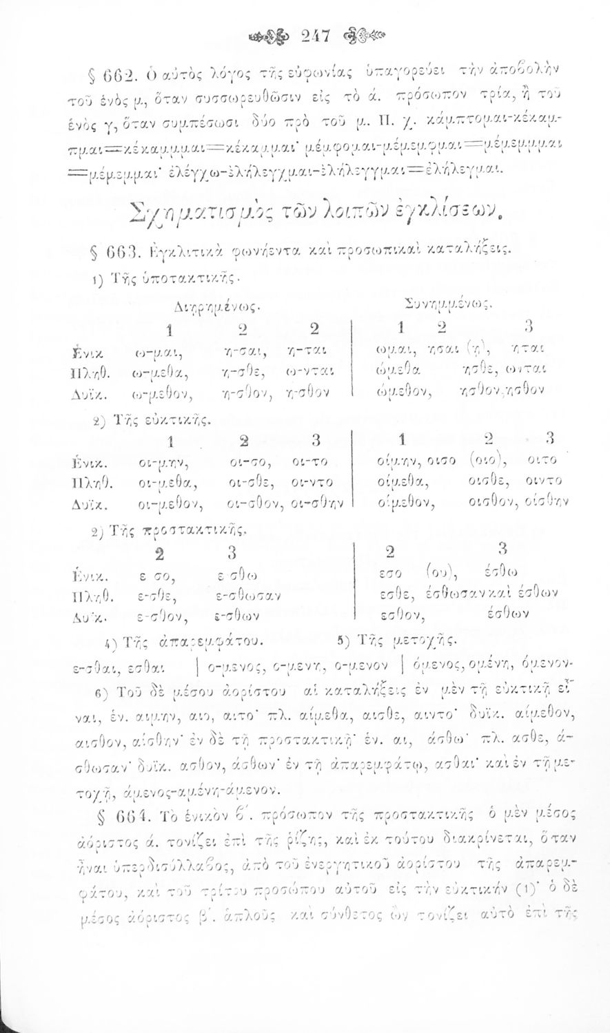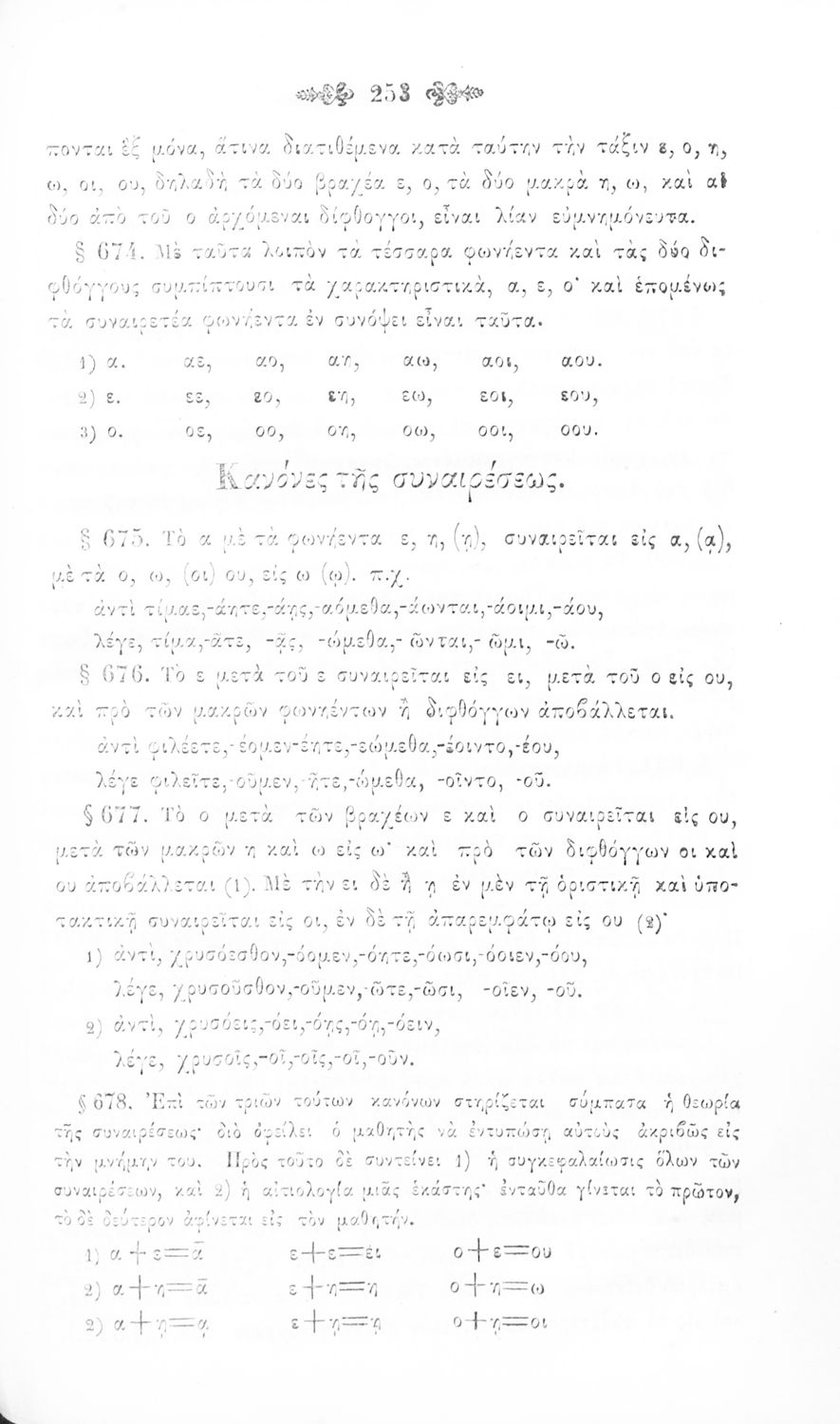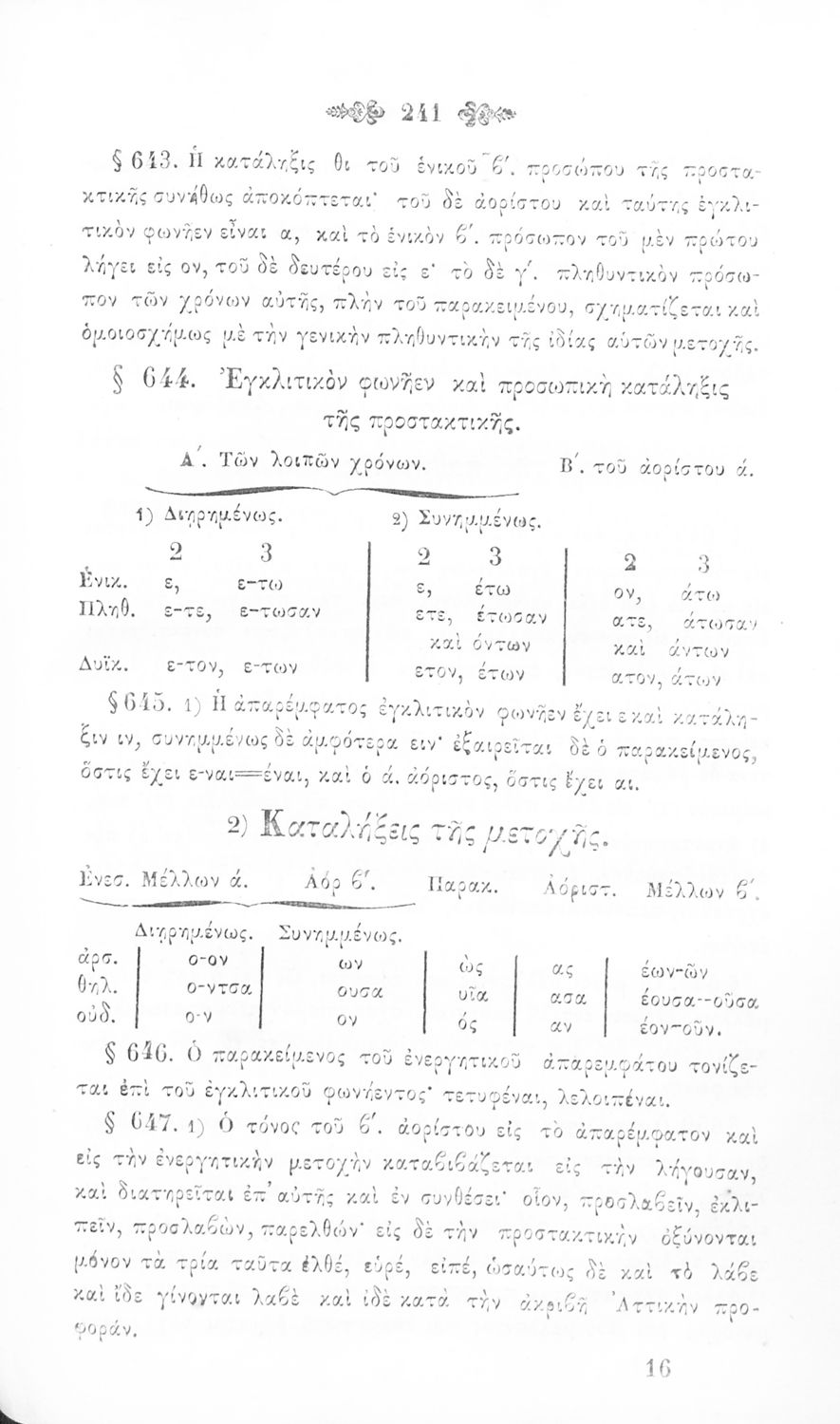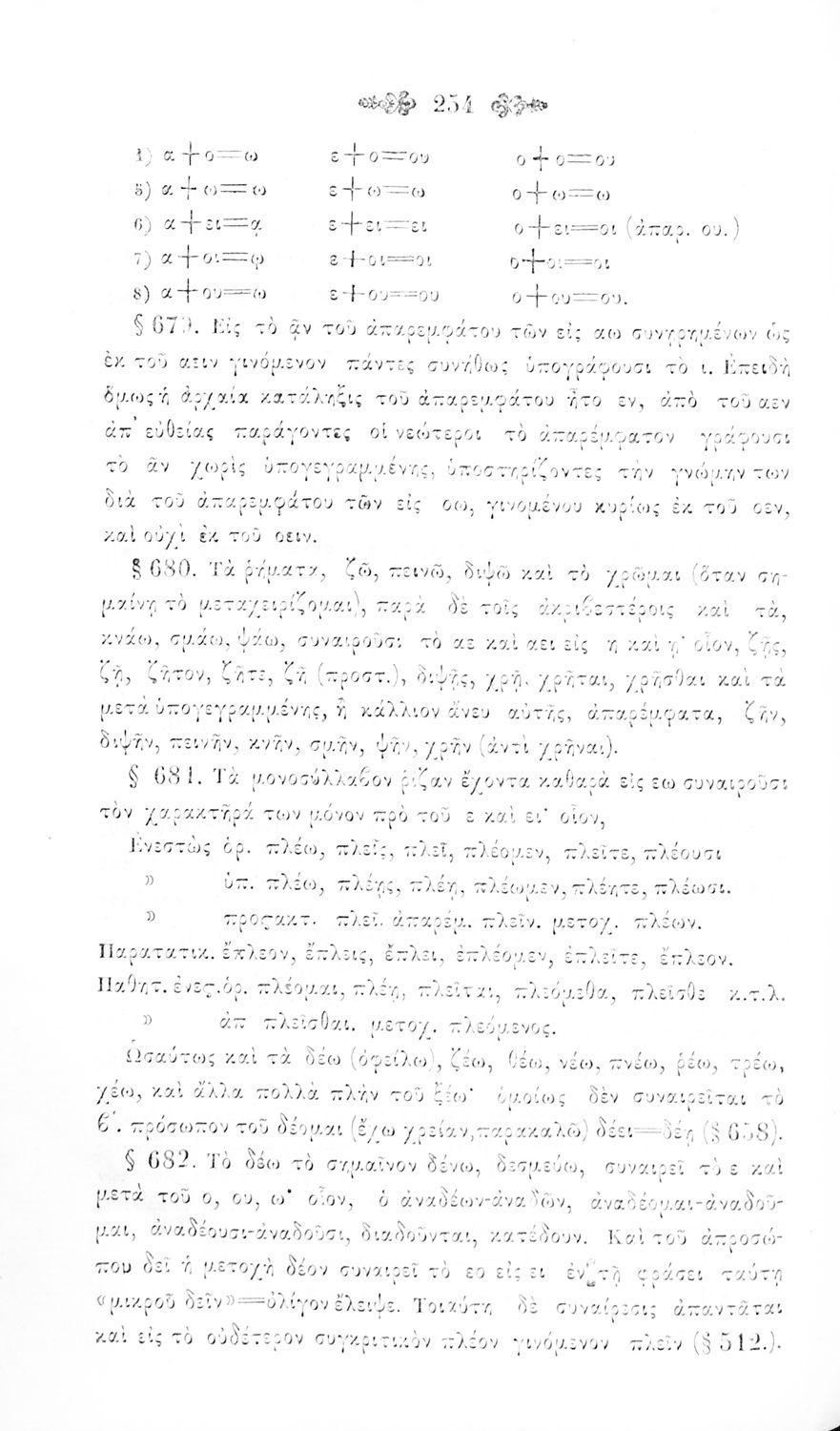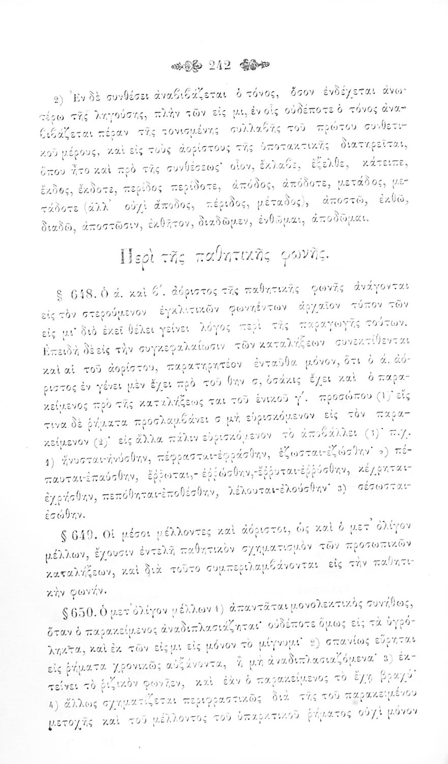 Σχολικό εγχειρίδιο Αρχαίων Ελληνικών για τα Ελληνικά Σχολεία, Παρθεναγωγεία και Γυμνάσια που περιέχει τους κανόνες γραμματικής και είναι χωρισμένο σε φθογγολογικό, τυπολογικό και ετυμολογικό μέρος.