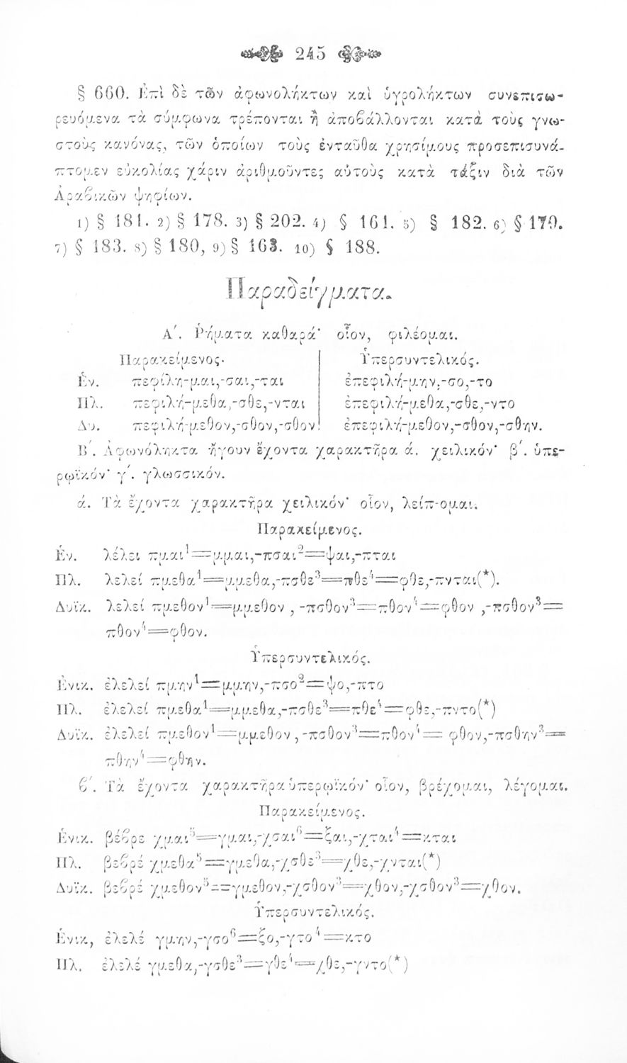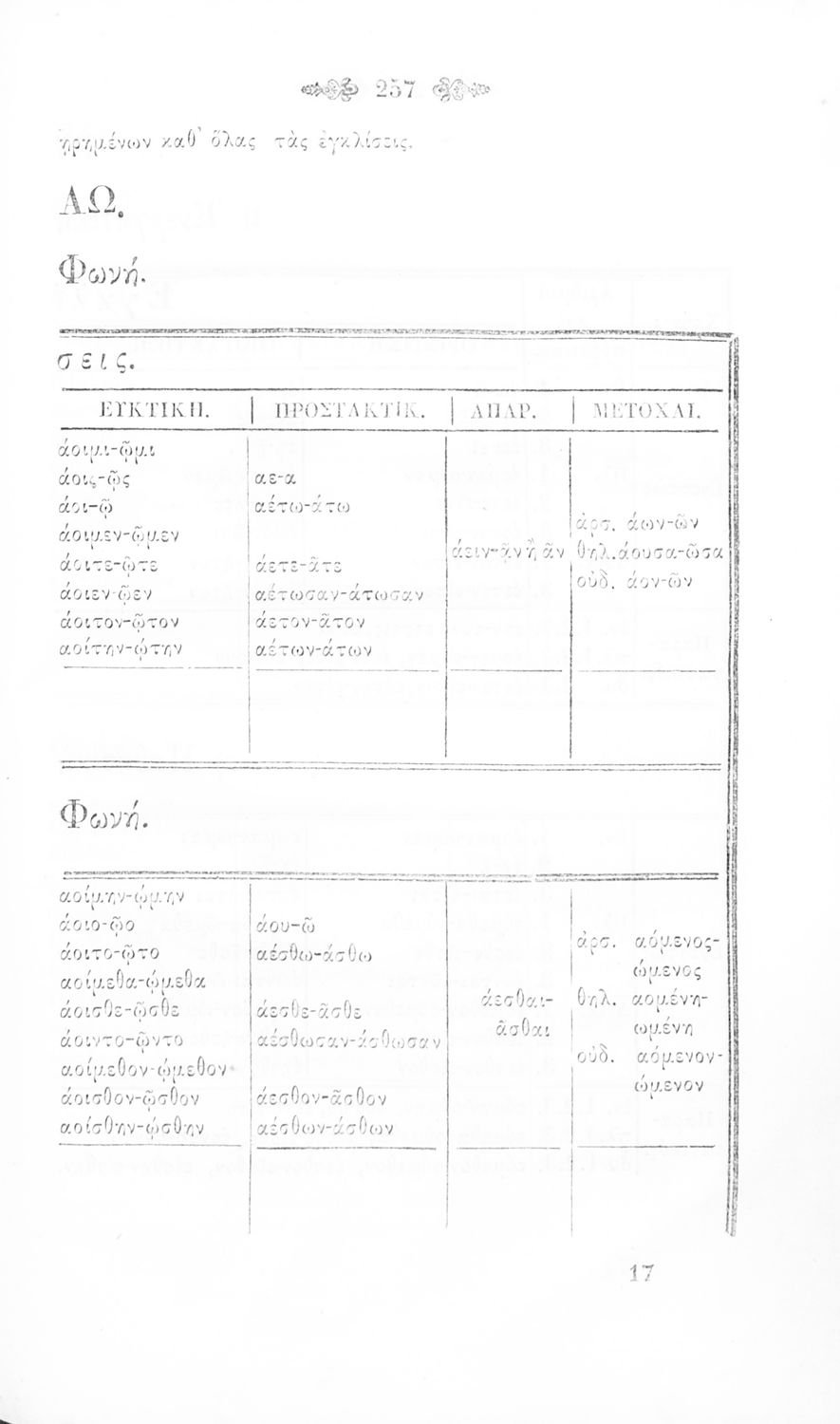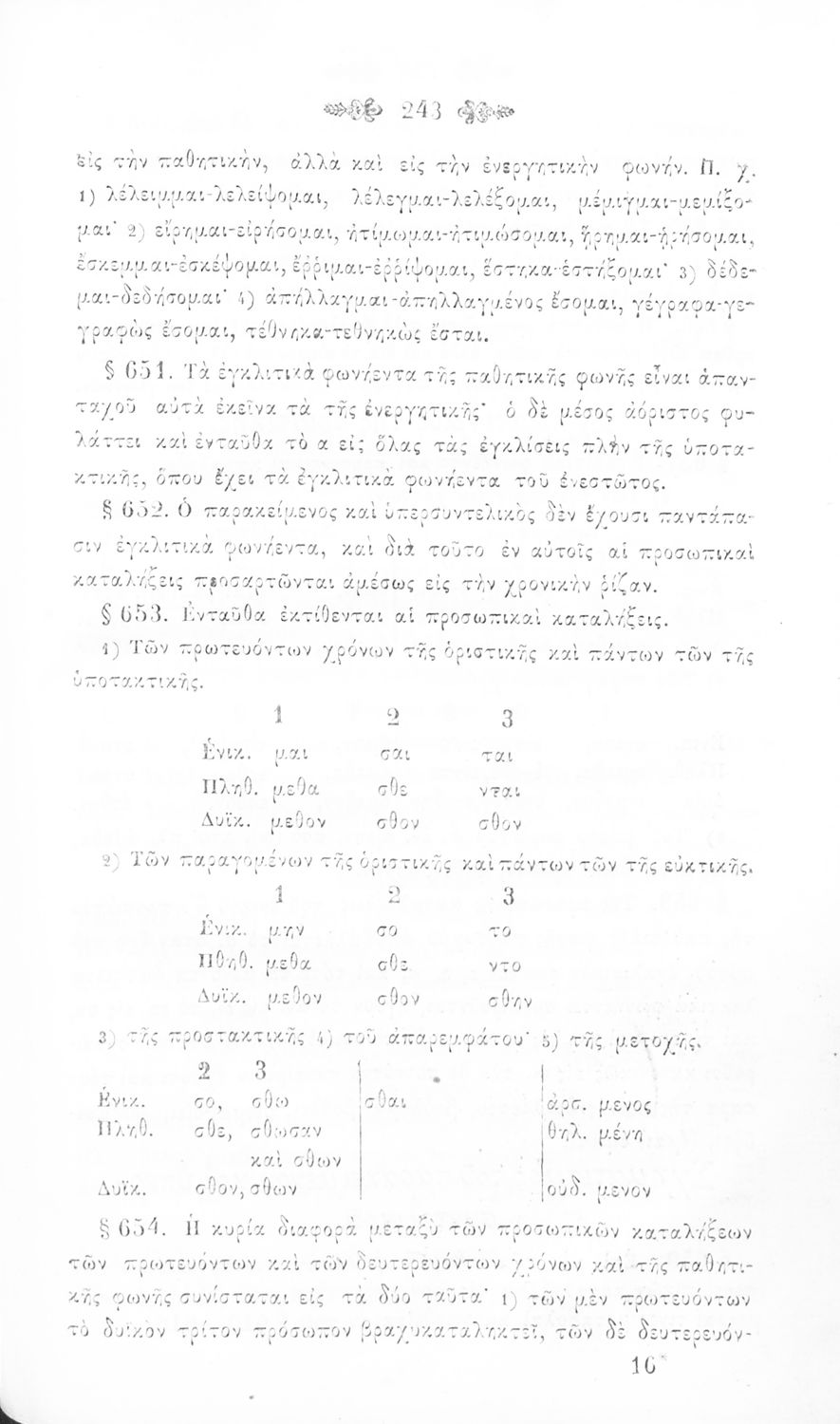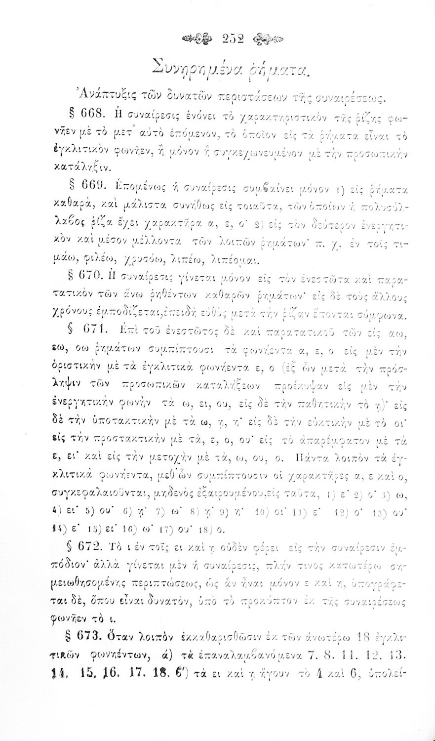Σχολικό εγχειρίδιο Αρχαίων Ελληνικών για τα Ελληνικά Σχολεία, Παρθεναγωγεία και Γυμνάσια που περιέχει τους κανόνες γραμματικής και είναι χωρισμένο σε φθογγολογικό, τυπολογικό και ετυμολογικό μέρος.