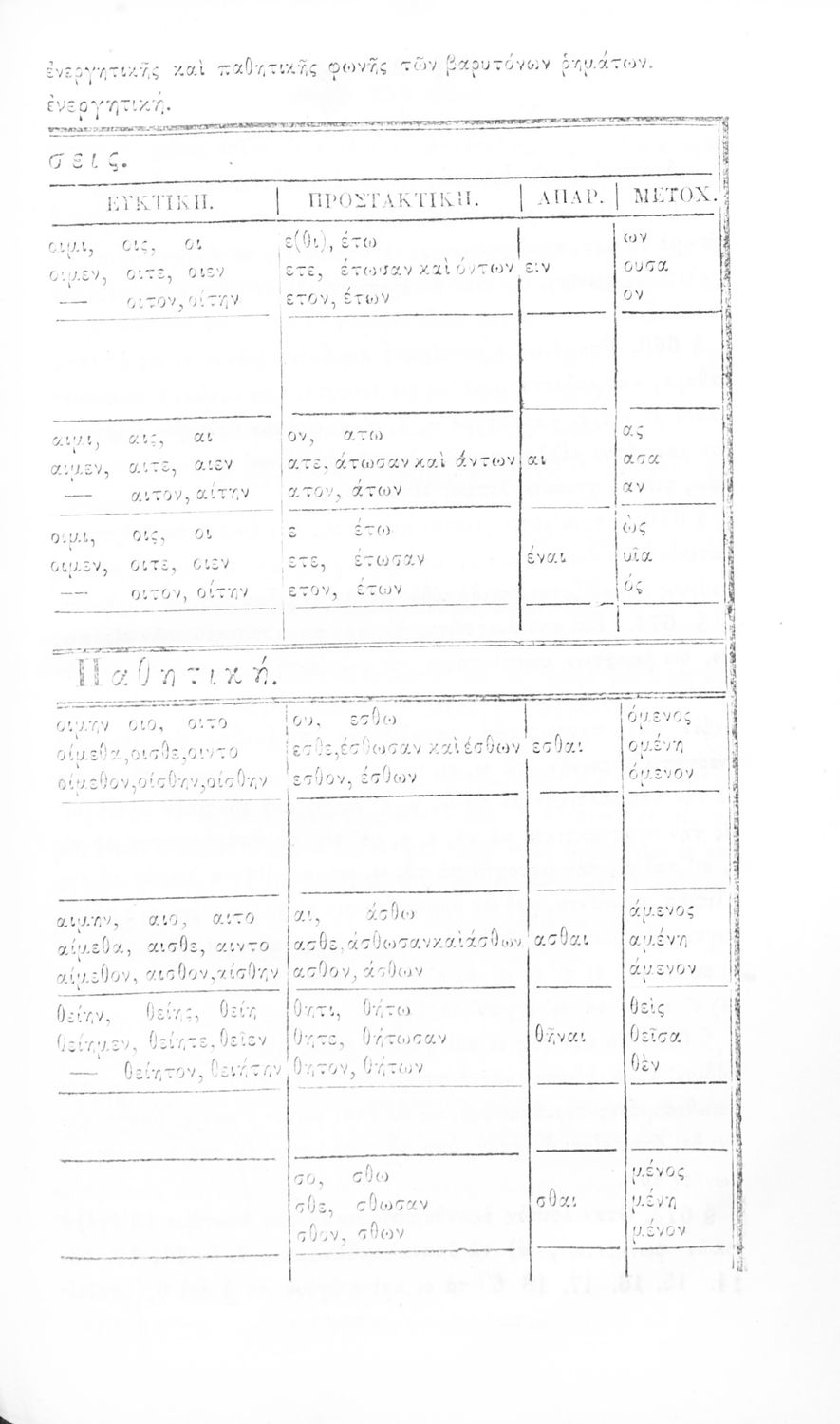 Σχολικό εγχειρίδιο Αρχαίων Ελληνικών για τα Ελληνικά Σχολεία και Παρθεναγωγεία που περιέχει τους κανόνες γραμματικής και είναι χωρισμένο σε φθογγολογικό, τυπολογικό και ετυμολογικό μέρος.