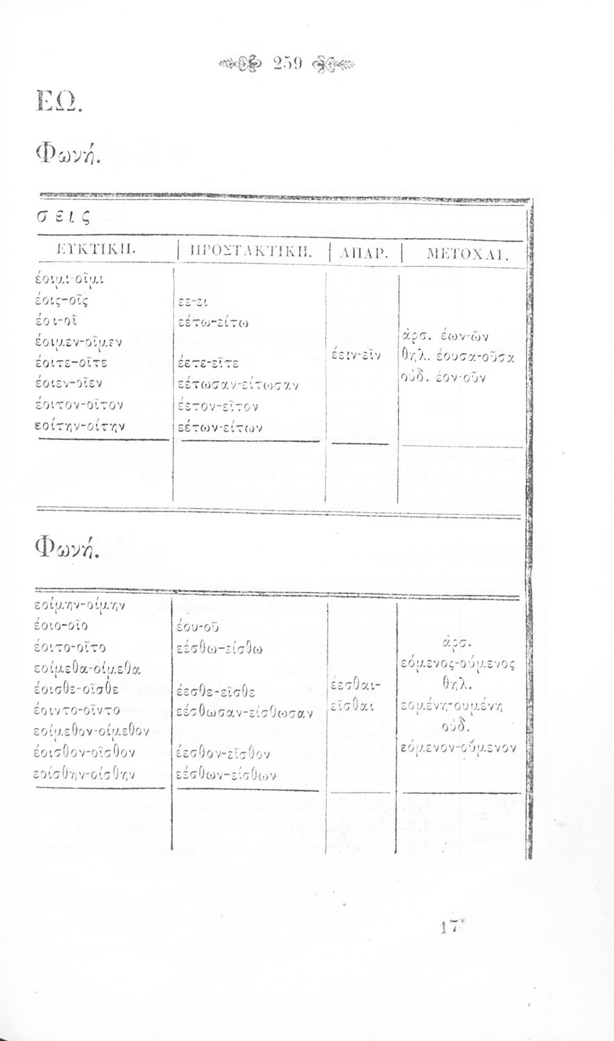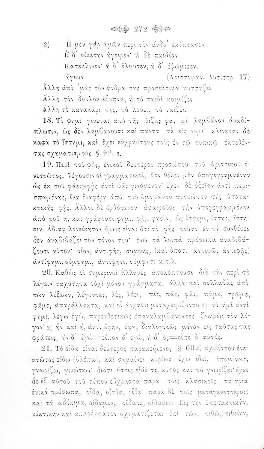 Σχολικό εγχειρίδιο Αρχαίων Ελληνικών που περιλαμβάνει τη γραμματική της αρχαίας ελληνικής και είναι χωρισμένο σε φθογγολογικό και τυπολογικό μέρος Περιέχει και κατάλογο ανωμάλων ρημάτων, ασκήσεις και σημειώσεις.