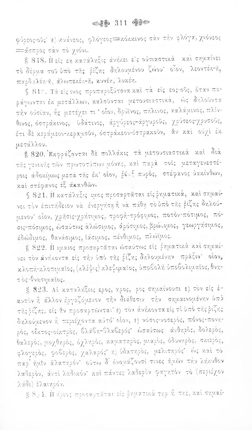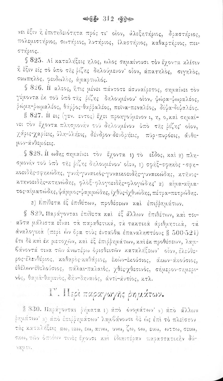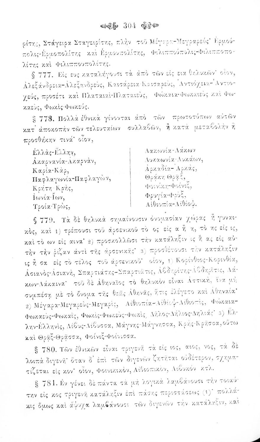 Σχολικό εγχειρίδιο Αρχαίων Ελληνικών για τα Ελληνικά Σχολεία και Παρθεναγωγεία που περιέχει τους κανόνες γραμματικής και είναι χωρισμένο σε φθογγολογικό, τυπολογικό και ετυμολογικό μέρος.