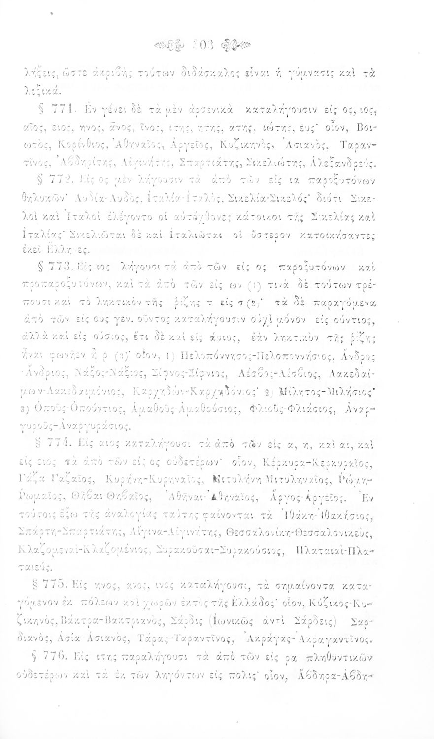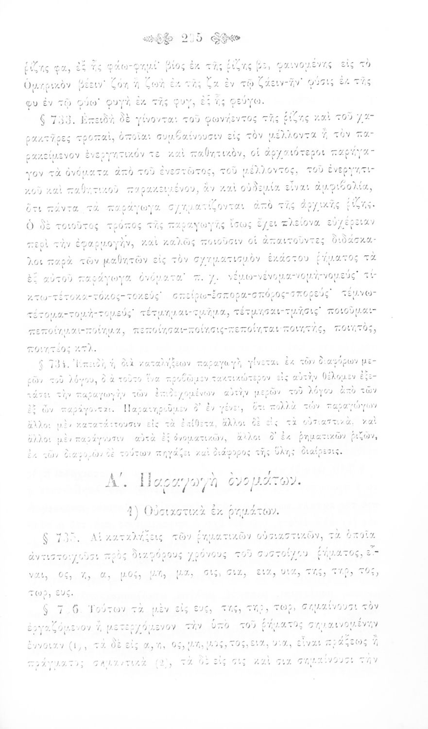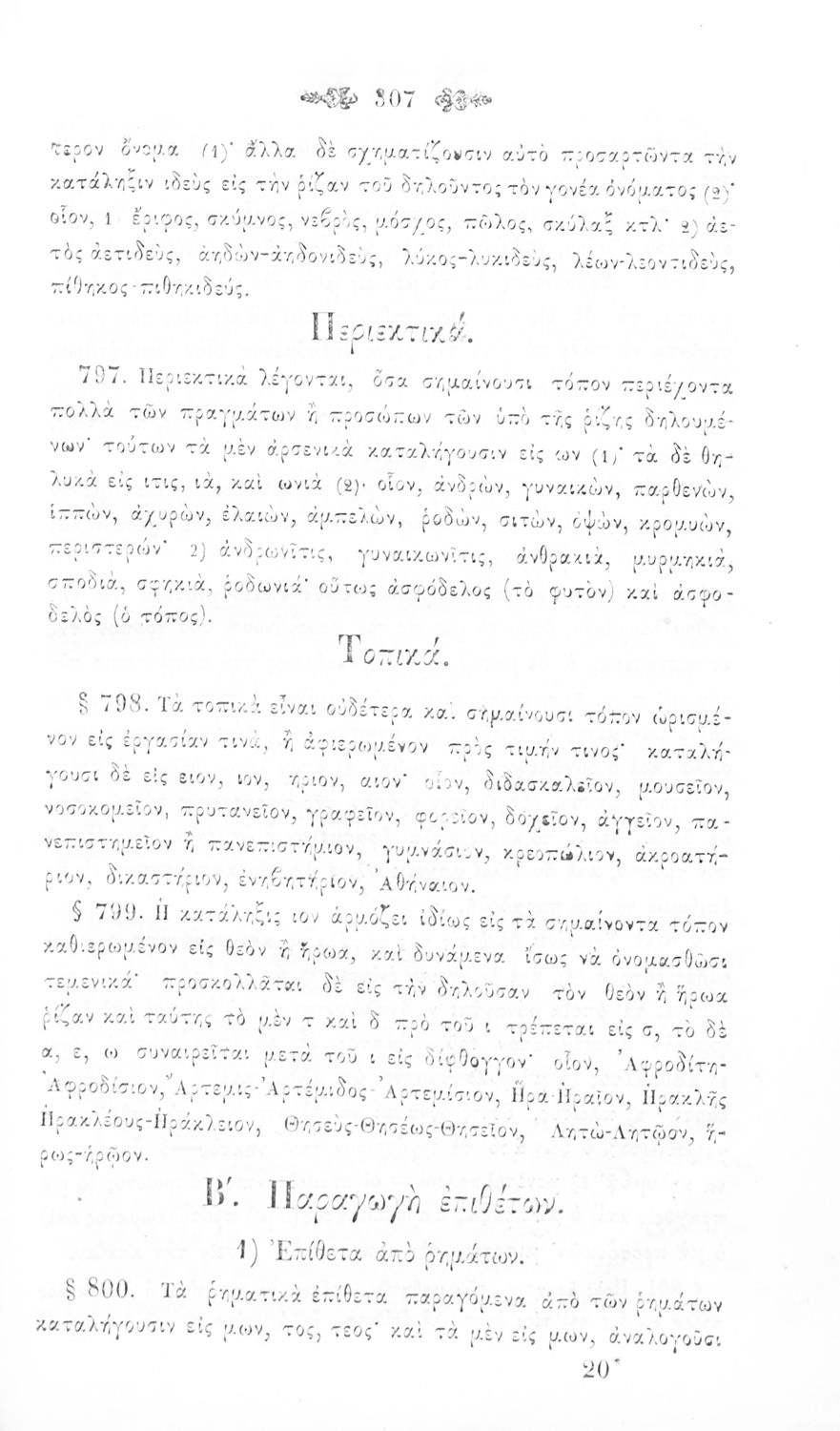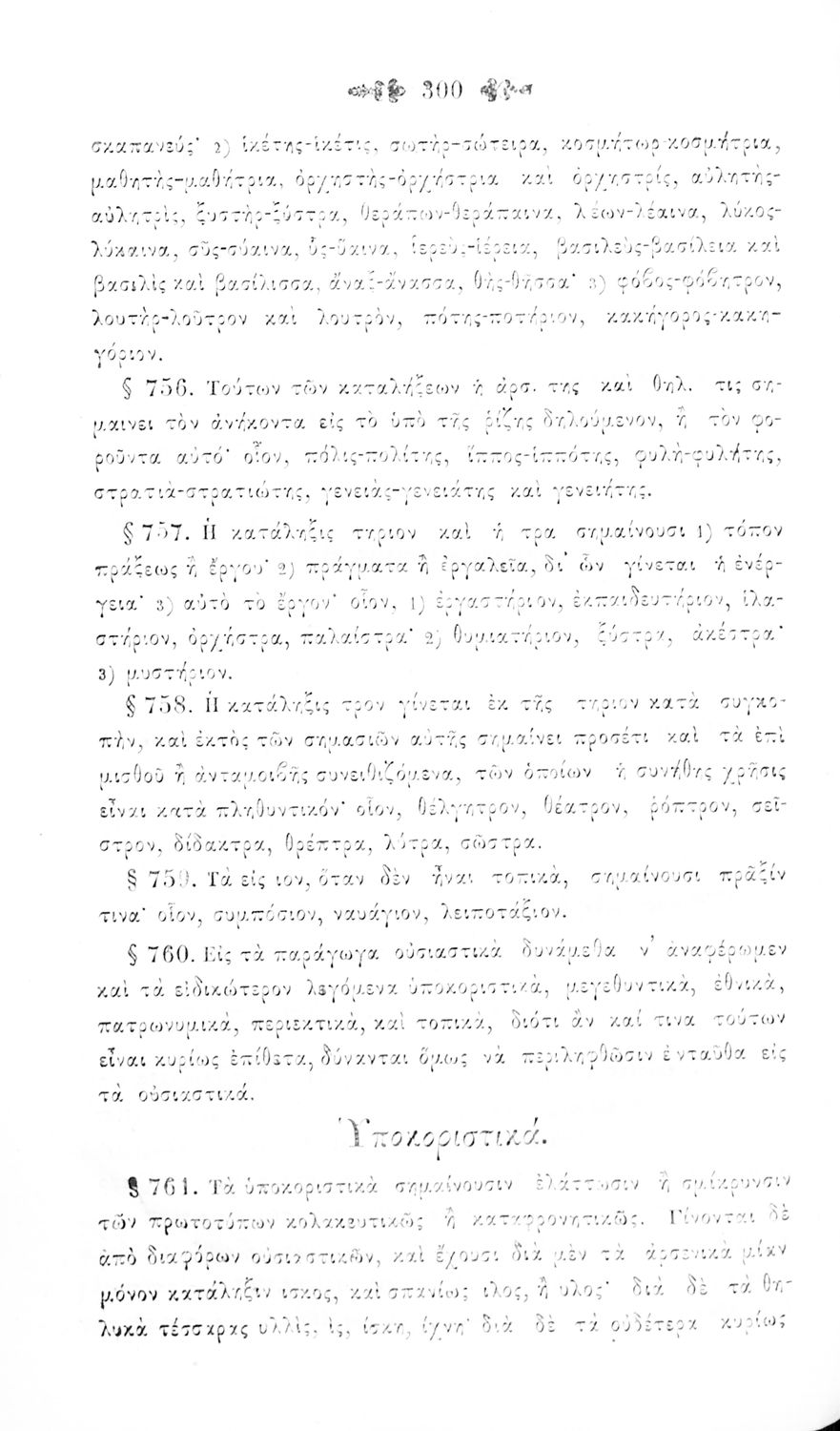 Σχολικό εγχειρίδιο Αρχαίων Ελληνικών για τα Ελληνικά Σχολεία και Παρθεναγωγεία που περιέχει τους κανόνες γραμματικής και είναι χωρισμένο σε φθογγολογικό, τυπολογικό και ετυμολογικό μέρος.