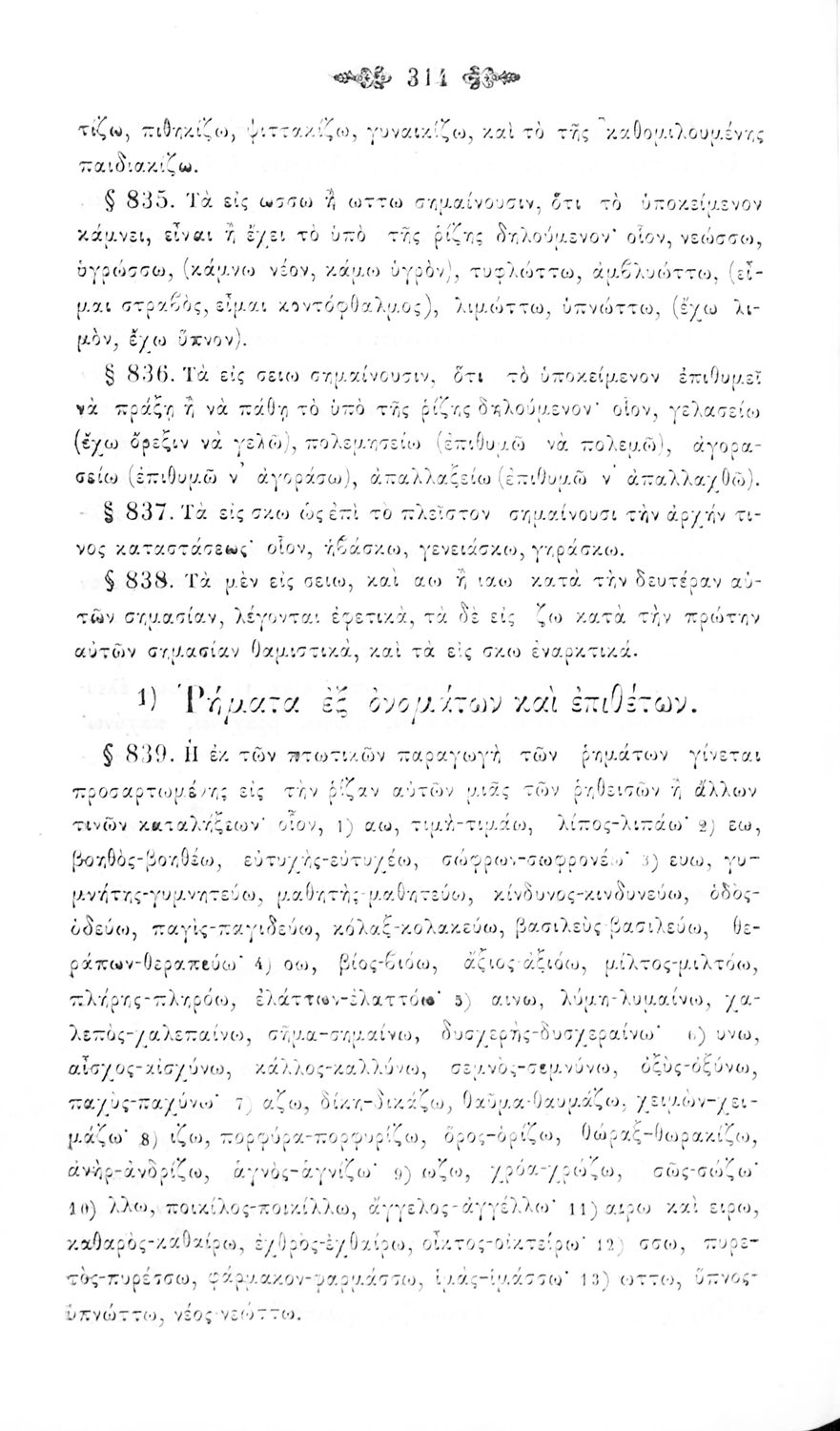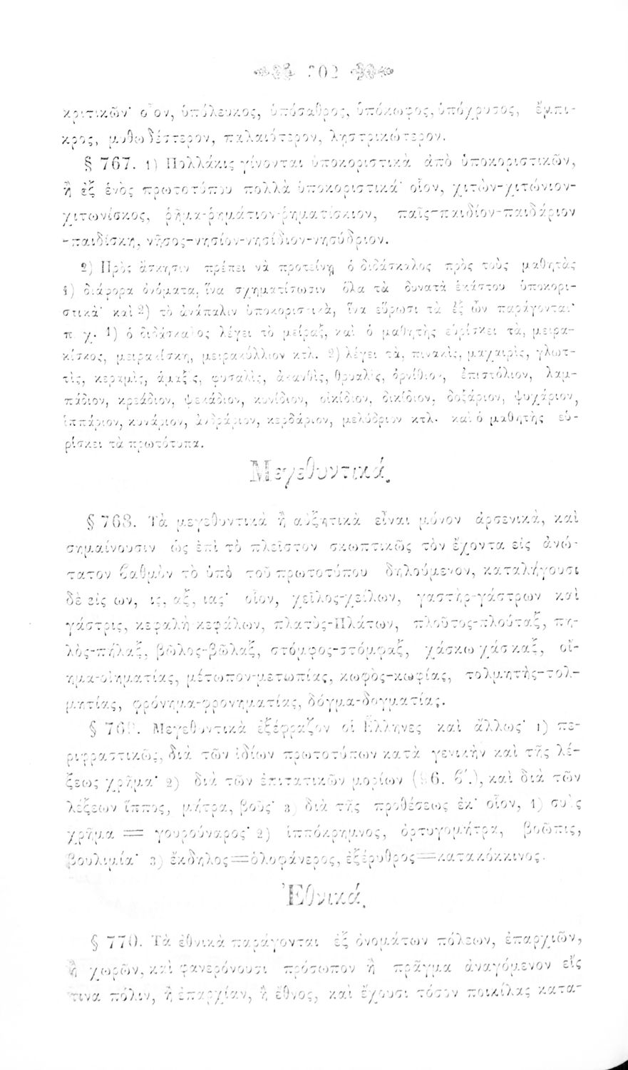 Σχολικό εγχειρίδιο Αρχαίων Ελληνικών για τα Ελληνικά Σχολεία, Παρθεναγωγεία και Γυμνάσια που περιέχει τους κανόνες γραμματικής και είναι χωρισμένο σε φθογγολογικό, τυπολογικό και ετυμολογικό μέρος.