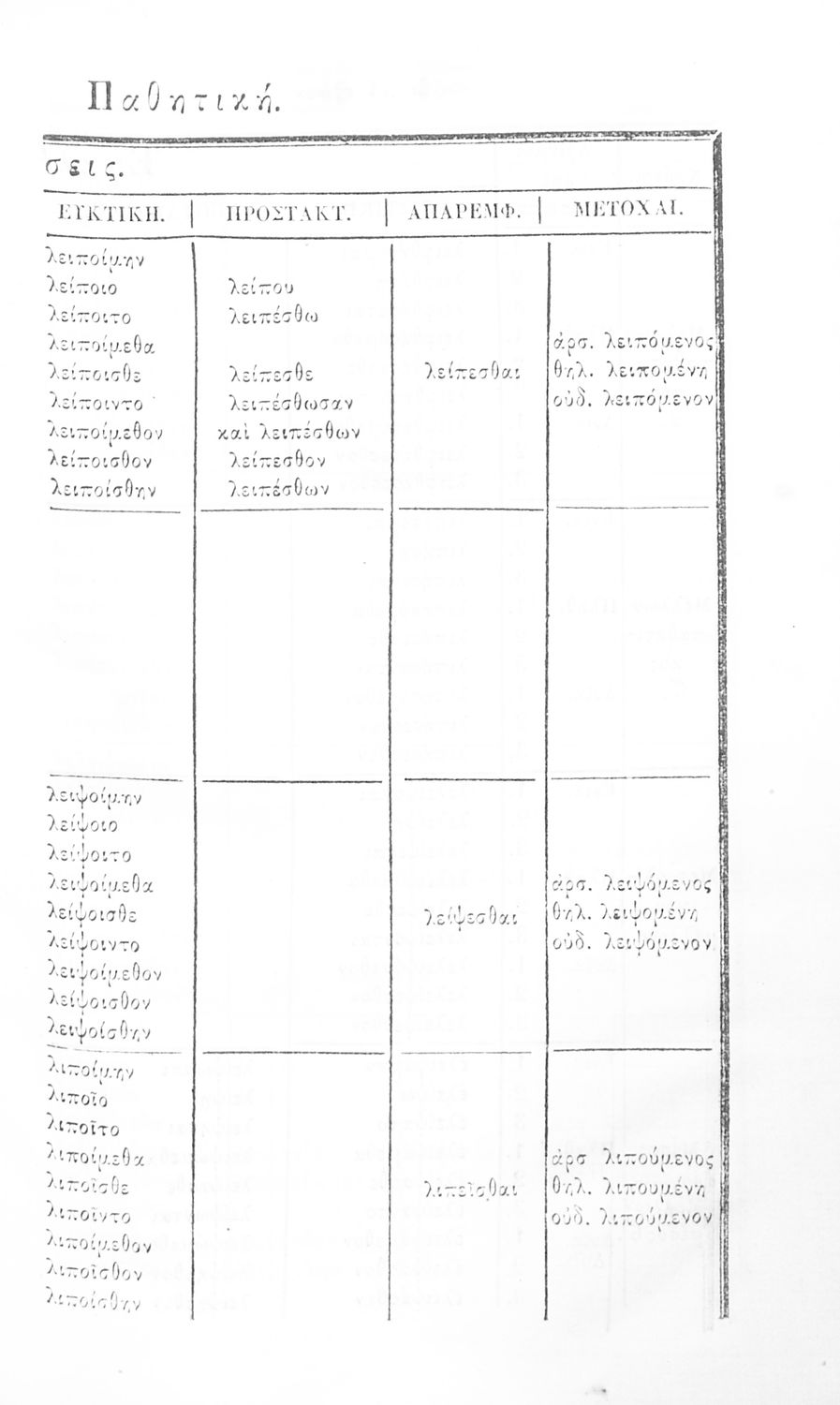 LDR 01074 2200193 4500 035 ## _a02-03110 040 ## _aΕλληνικό Λογοτεχνικό και Ιστορικό Αρχείο 041 ## _ael 100 ## _aΗλίας Σ. Σταθόπουλος 110 ## _a1858.15a 245 0# _aΓραμματική της αρχαίας ελληνικής γλώσσης 250 ## _a3η Έκδοση 260 ## _aΑθήνα _bΙω. Αγγελόπουλος _c1858 300 ## _a332 520 ## _aΣχολικό εγχειρίδιο Αρχαίων Ελληνικών που περιλαμβάνει τη γραμματική της αρχαίας ελληνικής και είναι χωρισμένο σε φθογγολογικό και τυπολογικό μέρος Περιέχει και κατάλογο ανωμάλων ρημάτων, ασκήσεις και σημειώσεις. 522 ## _aΕλλάδα 546 ## _aΚαθαρεύουσα 563 ## _aΣκληρό Εξώφυλλο 650 #4 _aΕπίθετα _aΕπιρρήματα _aΟυσιαστικά _aΡήματα